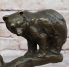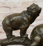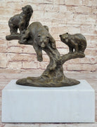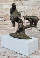 Green Patina Bear Family on a tree stump Bronze Sculpture Statue Figurine