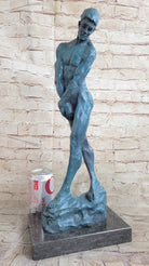 Green Patina Rodin Adam Nude Male Bronze Sculpture Classic Artwork Figurine