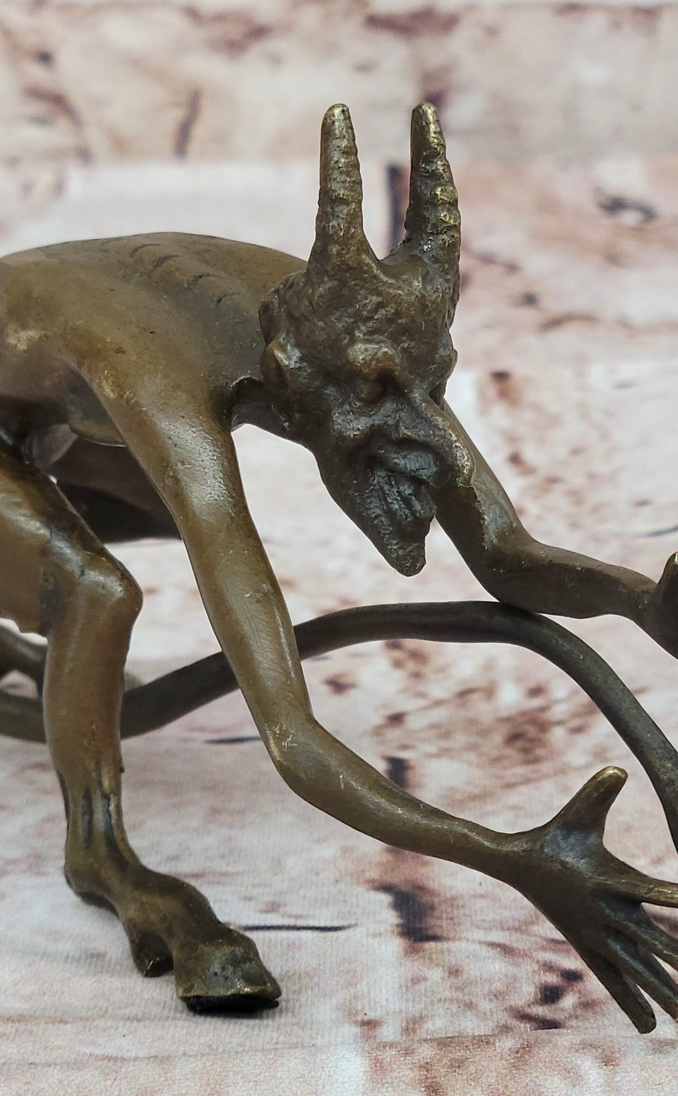 Grotesque Bronze Demon Satyr Figurine – Mythical Horned Creature Sculpture