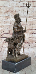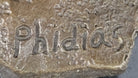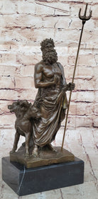 Masterfully crafted through the intricate lost wax method, this evocative sculpture pays homage to the intricate nuances of Greek mythology, capturing the essence of Hades' authoritative stance and resolute command over the realm of the afterlife. Resting gracefully on a square black marble base, the sculpture exudes a timeless allure, underscoring the enduring power and mystique encapsulated within the narrative of ancient Greek lore. Bearing the distinctive signature of Phidias, the renowned sculptor of Classical Greece, this remarkable piece serves as a testament to the enduring legacy of Greek mythology, immortalizing the enigmatic figure of Hades and his indomitable reign over the underworld.Bronze Dimensions with Marble Base: Height 12" X Width 6"
