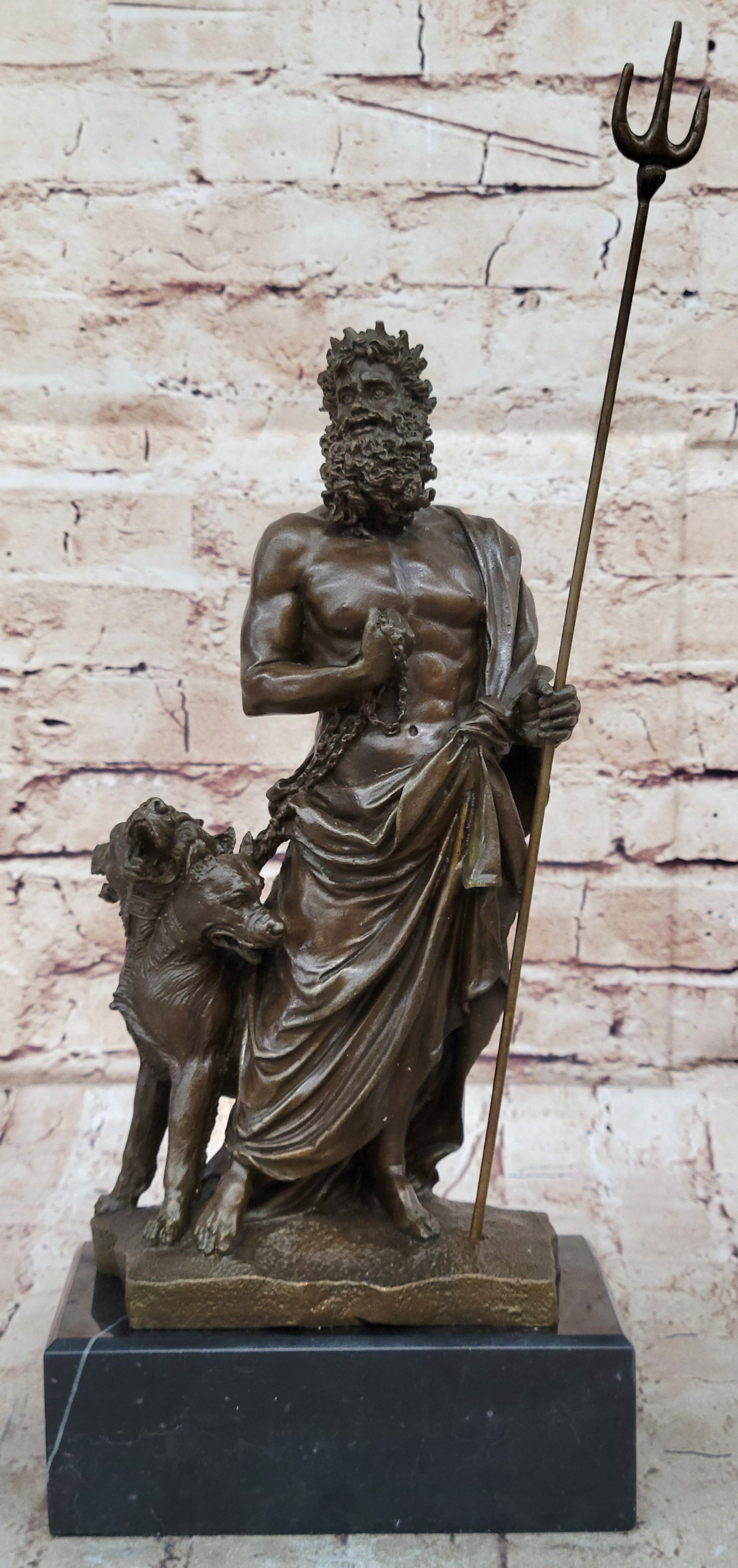 Hades Pluto & Cerberus 3 Headed Dog Bronze Metal Statue Sculpture Greek Mythology