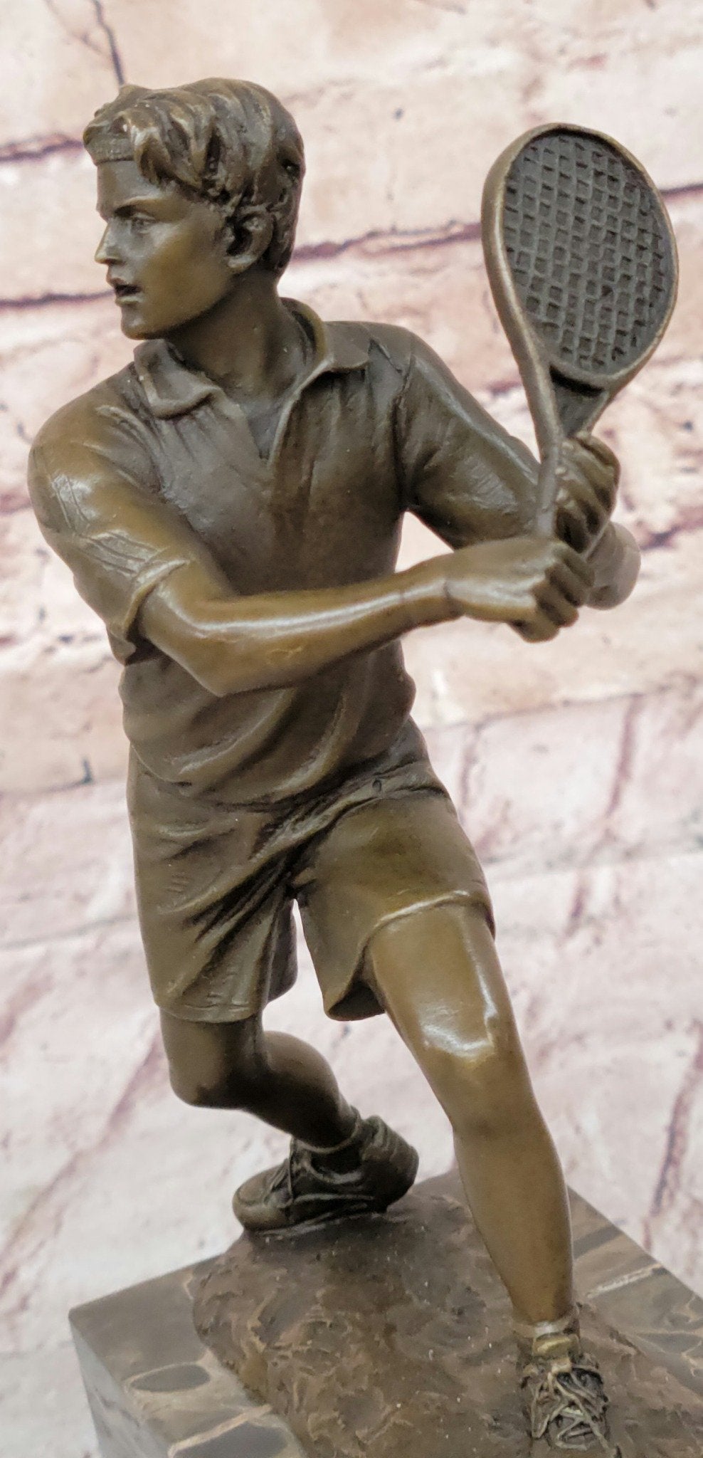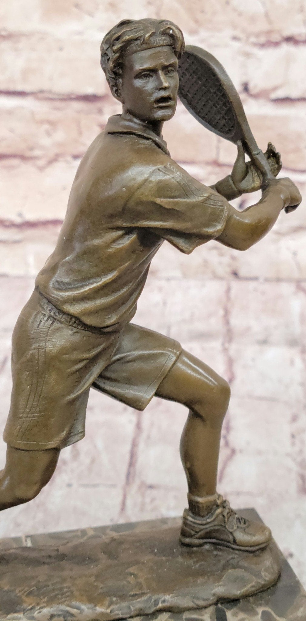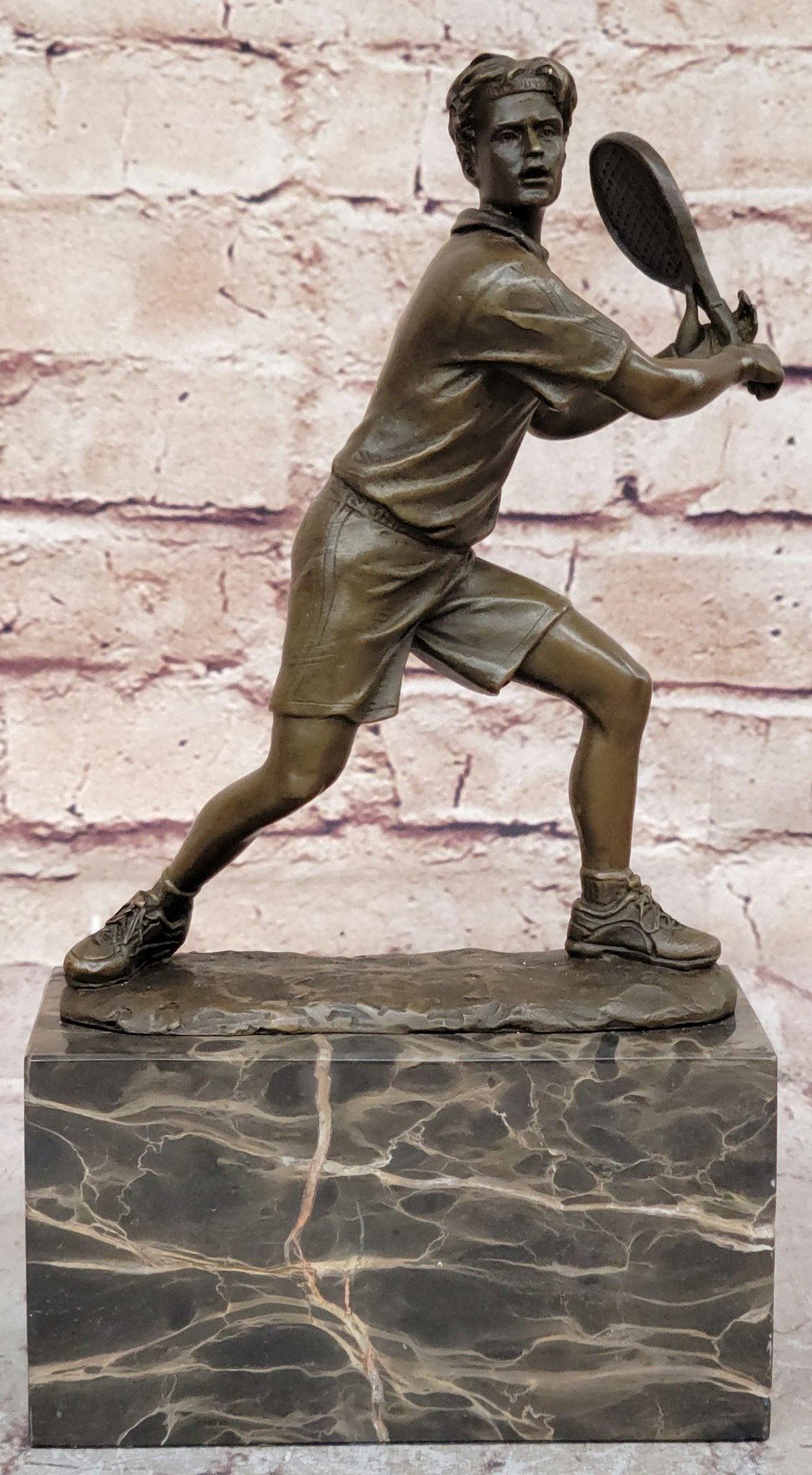 Hand Crafted Tennis Ball Player Bronze Sculpture Origin Figurine Art Deco Figure