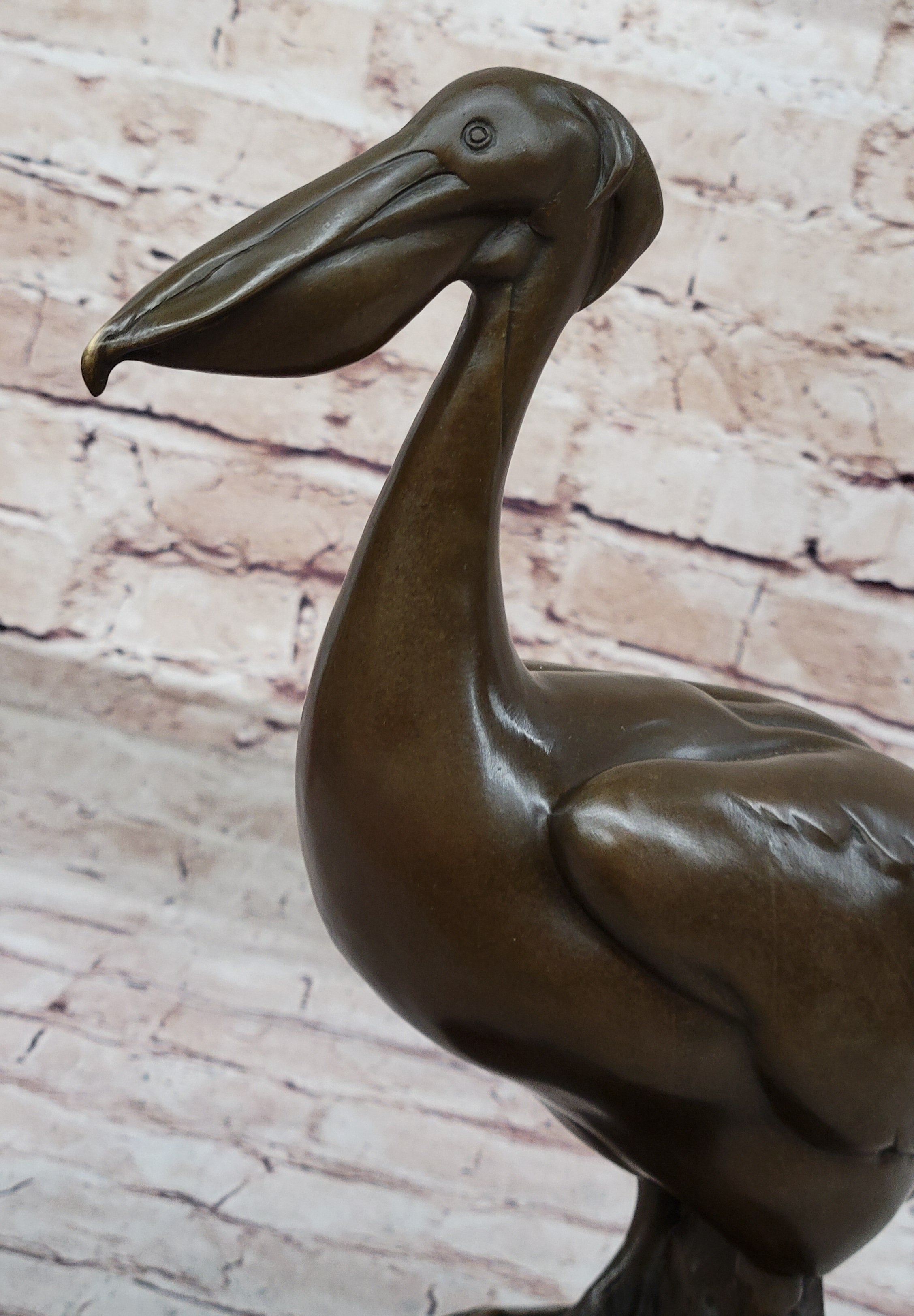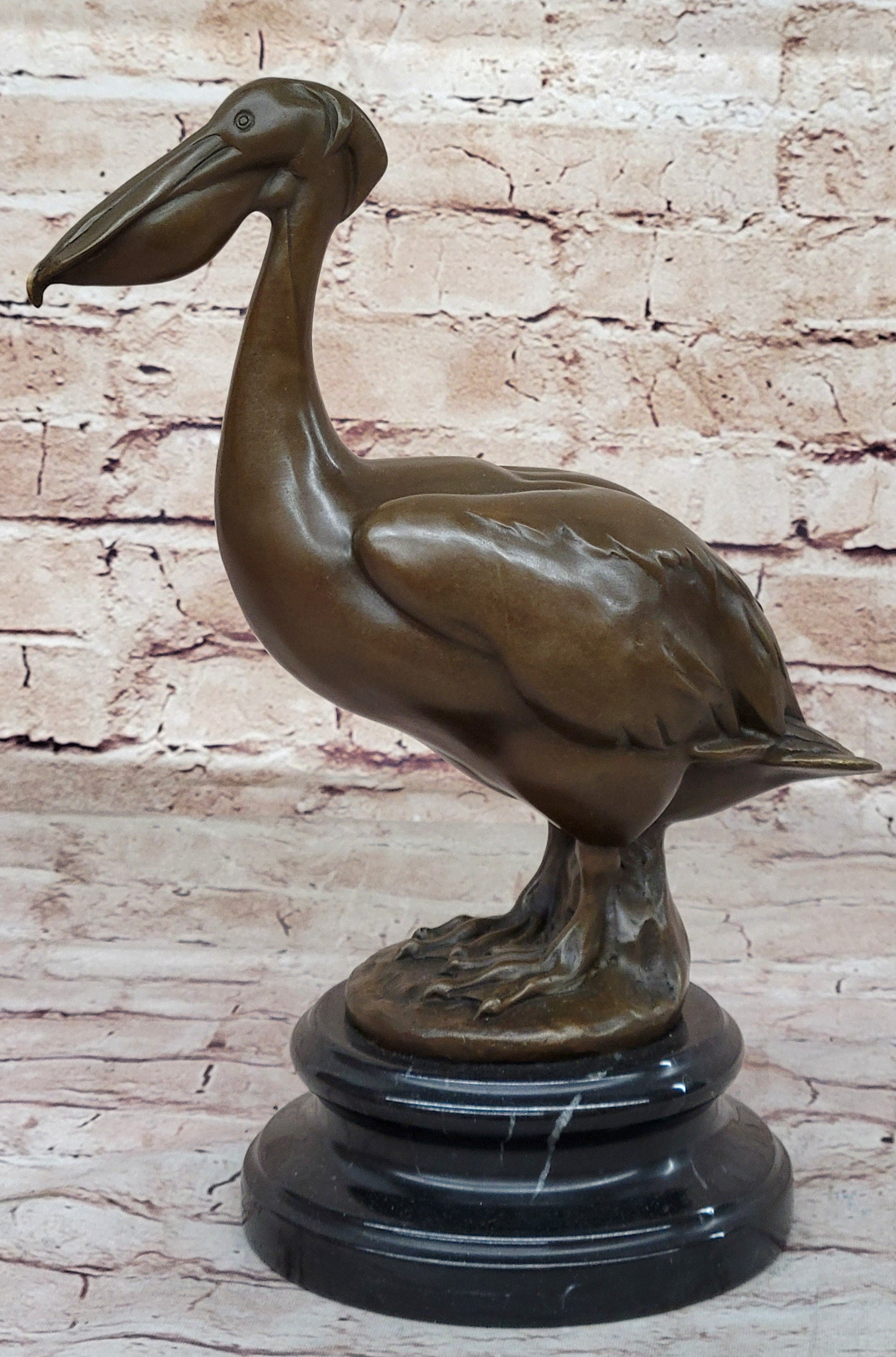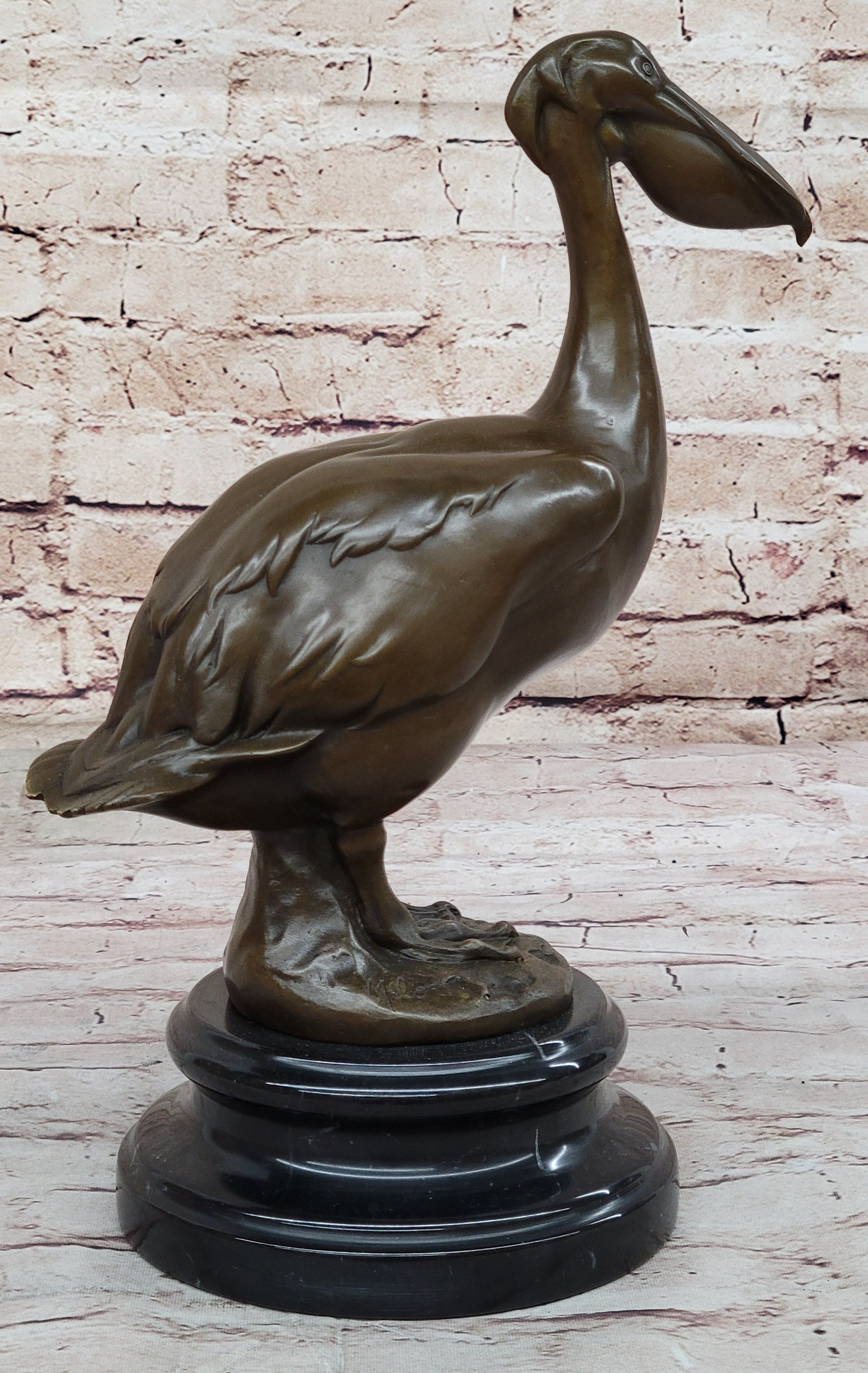 Whether displayed as a standalone piece or as part of a collection, this stork bird sculpture is sure to captivate admirers with its lifelike appearance and timeless beauty. With its blend of artistry and craftsmanship, it stands as a tribute to the natural world and the enduring allure of bronze sculpture.Bronze Dimensions with Marble Base: Height 12.5" X Width 10"