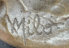Crafted with skill and artistry, this remarkable bronze sculpture by Milo captures the graceful elegance of a stork bird in exquisite detail. Handmade using the time-honored lost wax method, each feather and contour of the bird's form is meticulously sculpted to perfection, showcasing the artist's dedication to his craft.