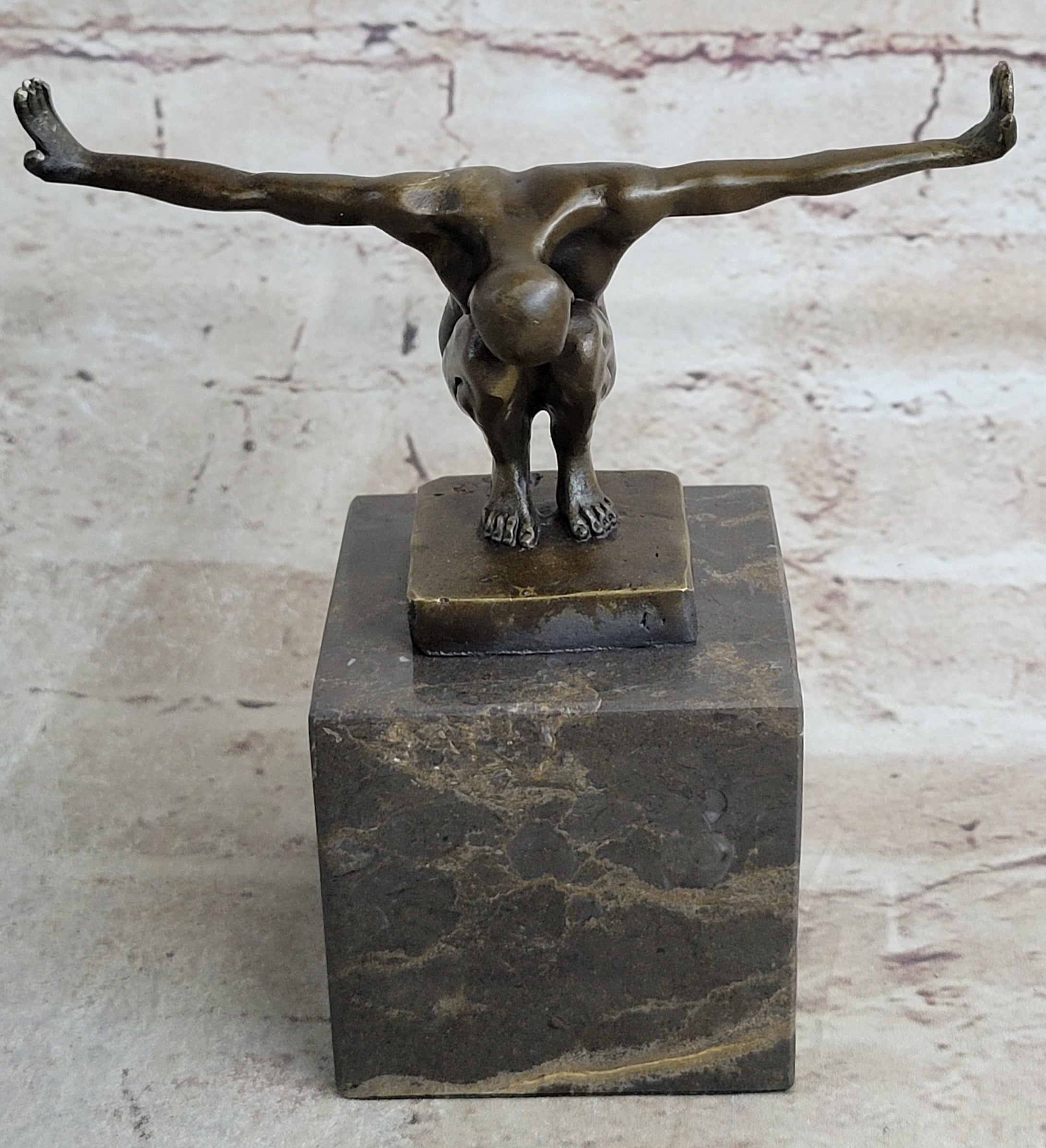 The athlete's outstretched arms and raised fingers exude a sense of focused determination and serenity, reflecting his readiness to excel in his chosen sport. Made with the highest quality bronze, this sculpture embodies both strength and elegance, ensuring its longevity and artistic value. Whether displayed in a personal collection or as a centerpiece in any space, "The Athlete" is bound to captivate viewers with its beauty and artistic expression.