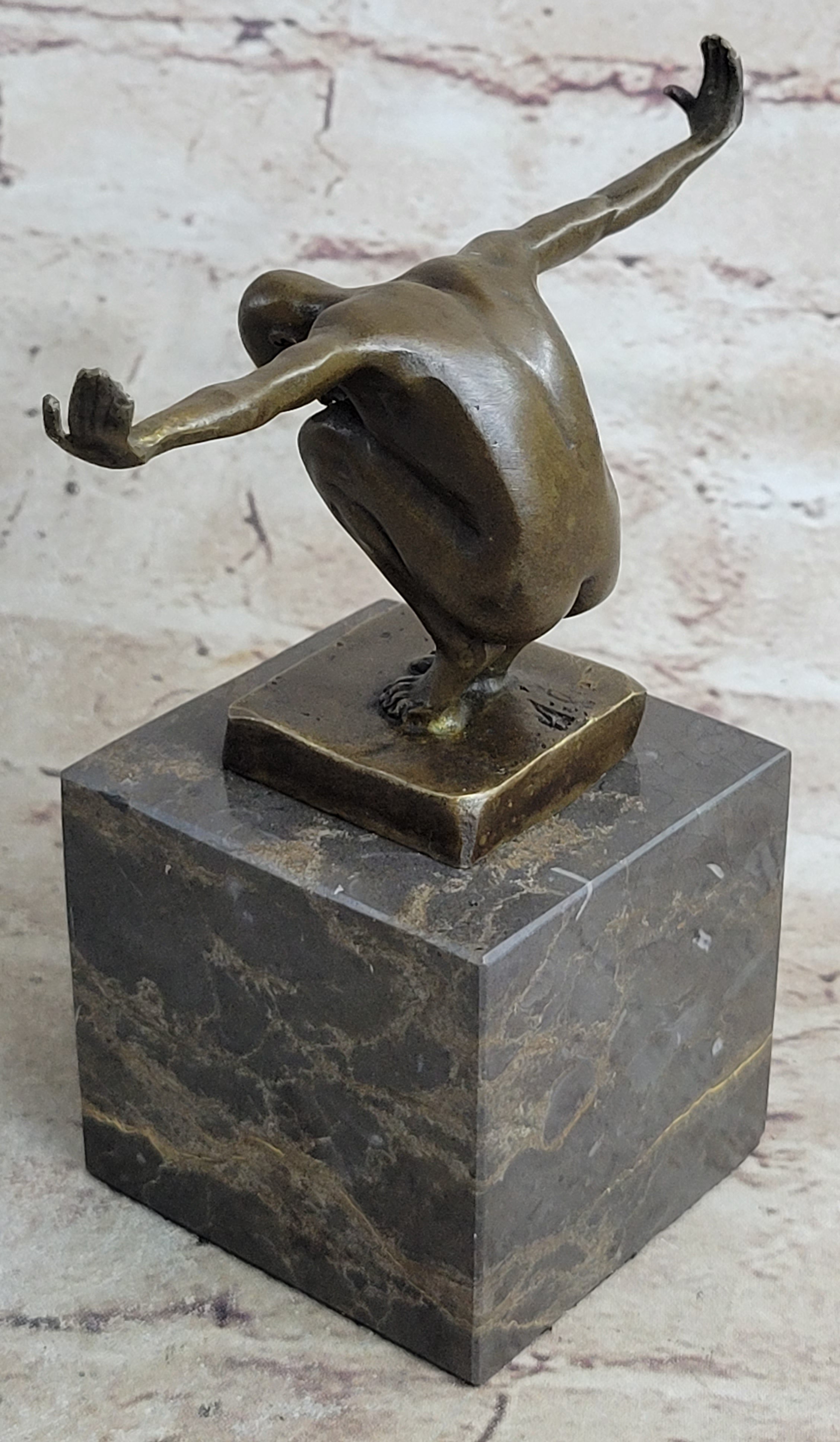 Embrace the spirit of athleticism and grace with this exceptional bronze sculpture. Its timeless appeal and undeniable artistry make it an ideal addition to any art lover's collection. Let the power and poise of "The Athlete" inspire and elevate your surroundings, creating a focal point that sparks admiration and conversation.Bronze Dimensions with Marble Base: Height 6" X Width 5.5"