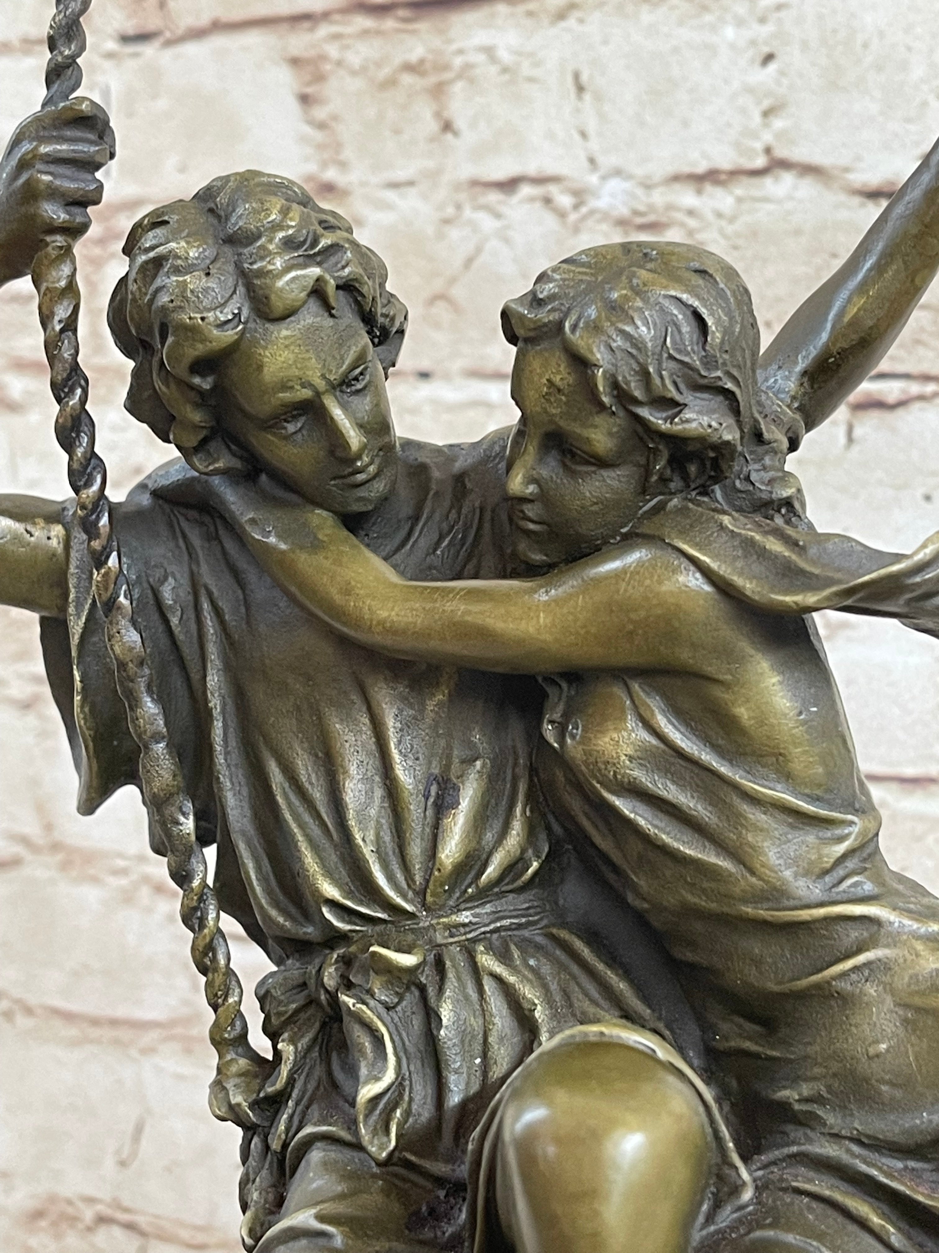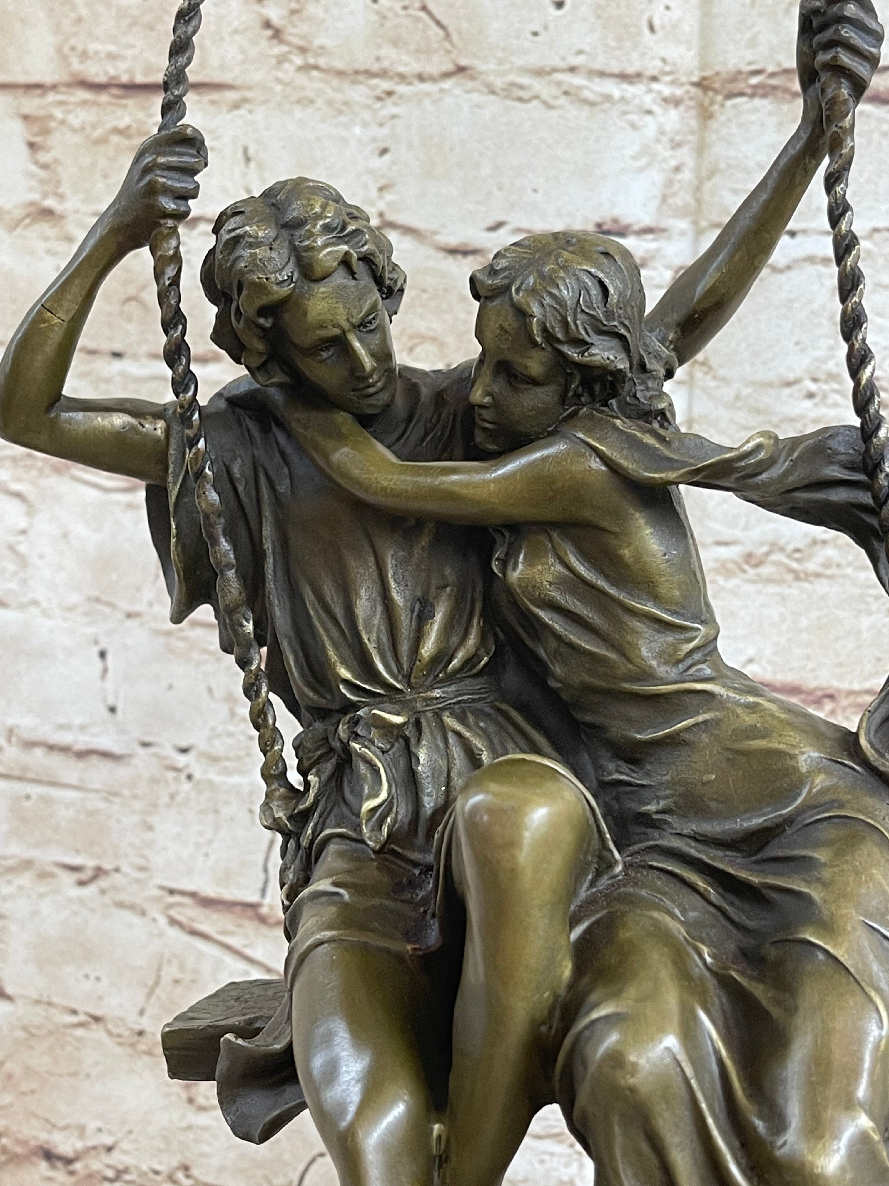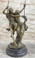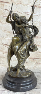 Hand Made Perfect Valentine Gift Couple in Love on Swing set Bronze Figurine LRG