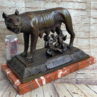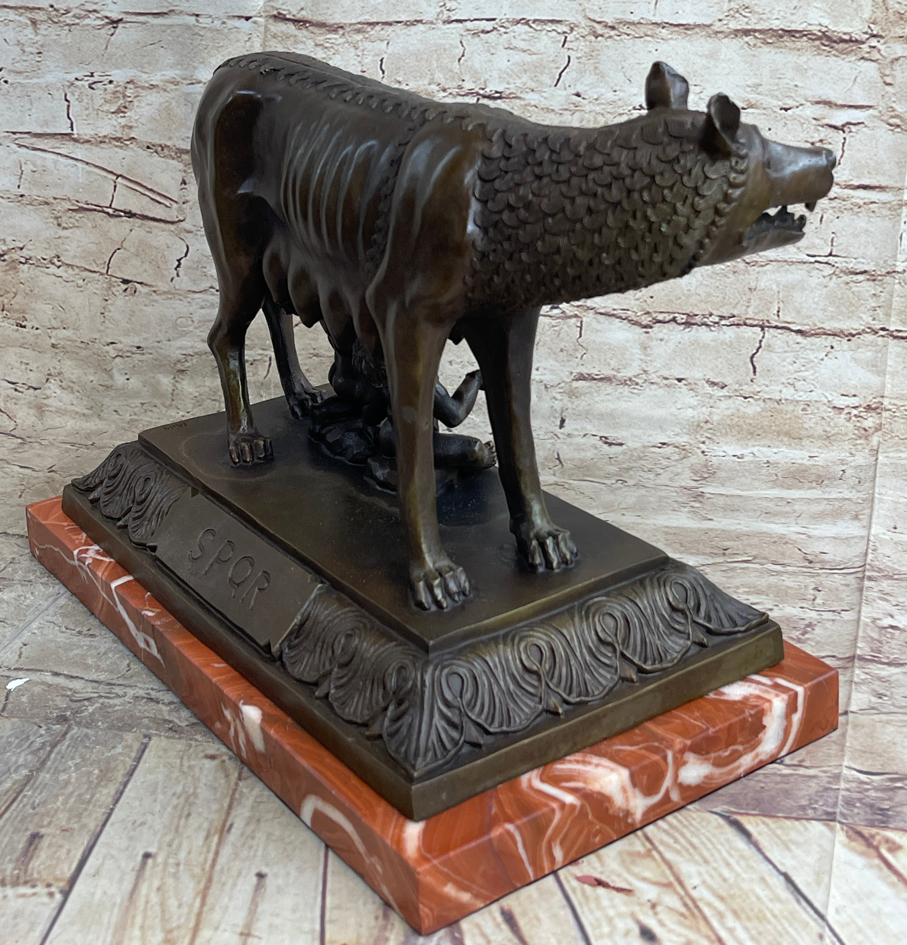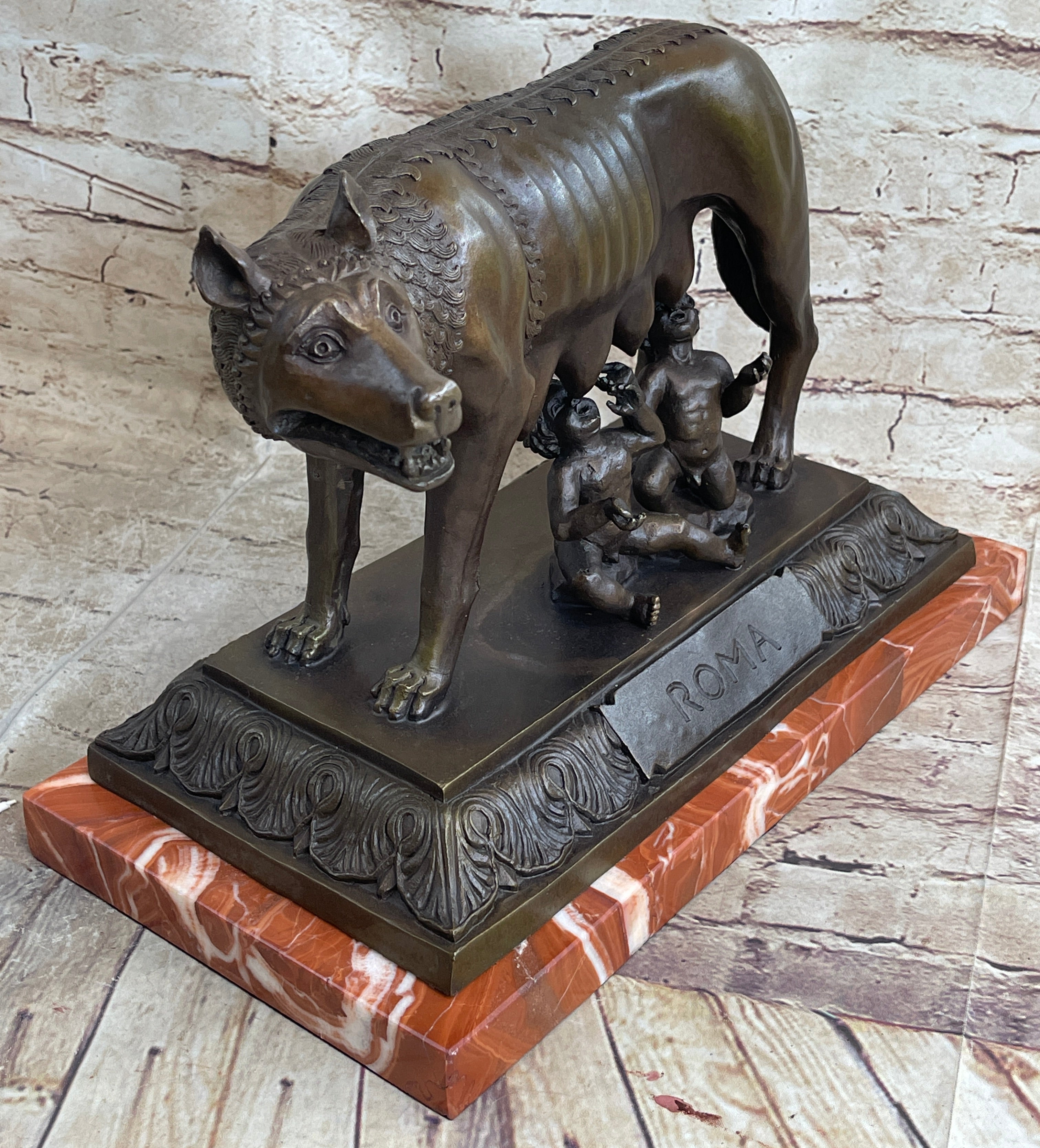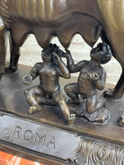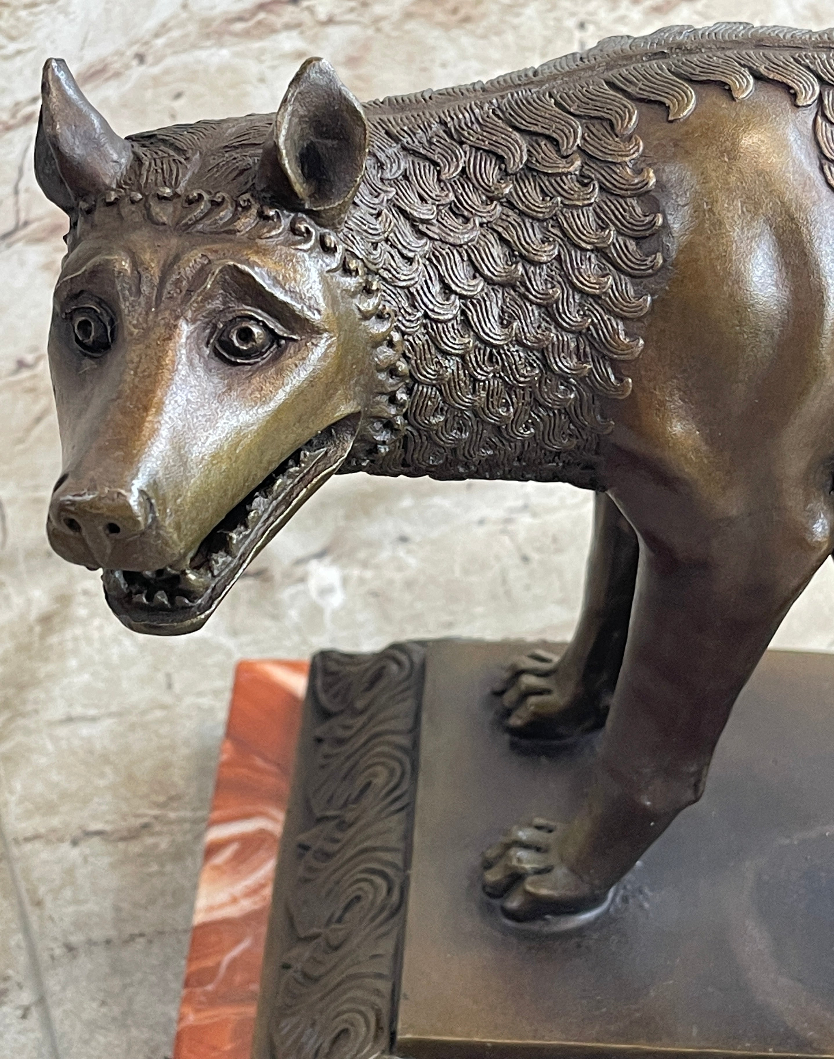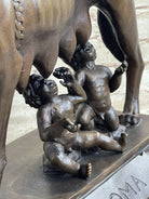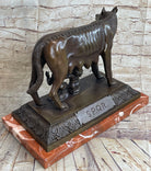 The Capitoline Wolf Romulus & Remus Bronze Metal Statue Sculpture on Rose Marble Base 12" x 15"