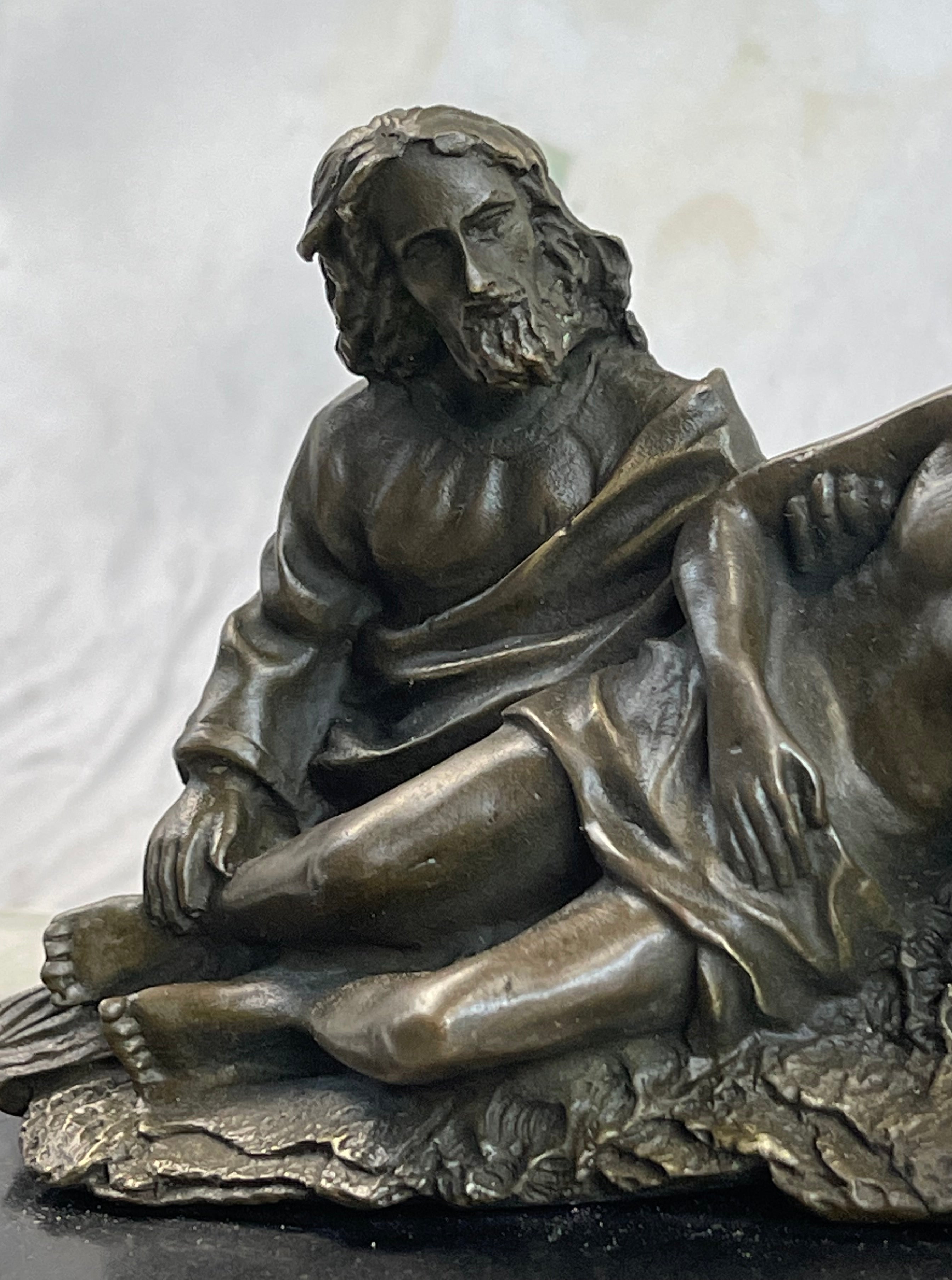 The artist Valli has succeeded in conveying the profound sense of sorrow and compassion that permeates this moment. "The Lamentation" is not just a sculpture; it's a spiritual reflection and a tribute to a significant aspect of Christian faith. Whether displayed in a sacred space or admired for its artistry, this sculpture serves as a powerful reminder of the enduring themes of sacrifice and redemption.Bronze Dimensions with Marble Base: Height 6" X Width 8"