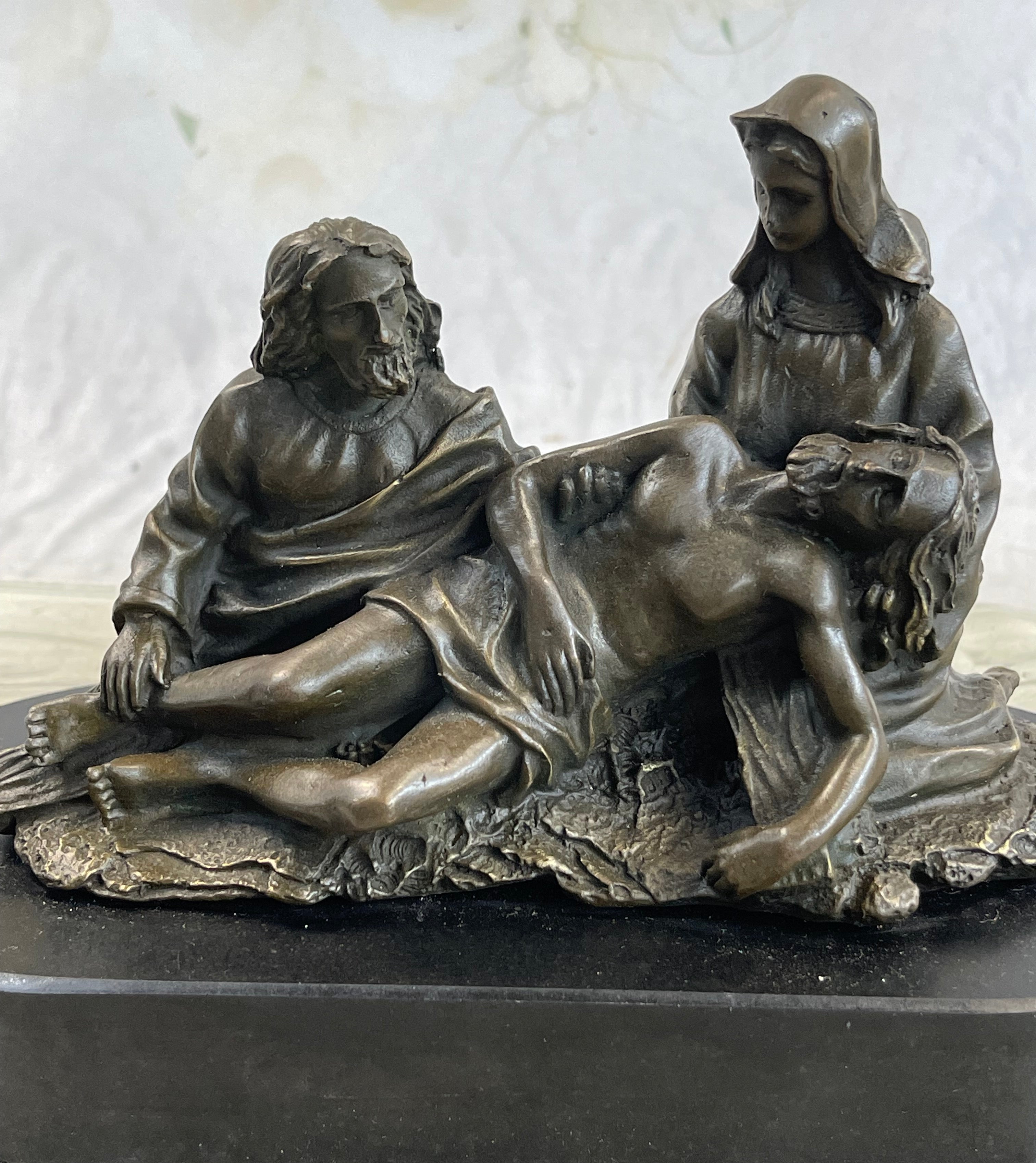 La Pieta Jesus Christ Paul & Mary Bronze Statue Sculpture Figure Christianity 6" x 8"
