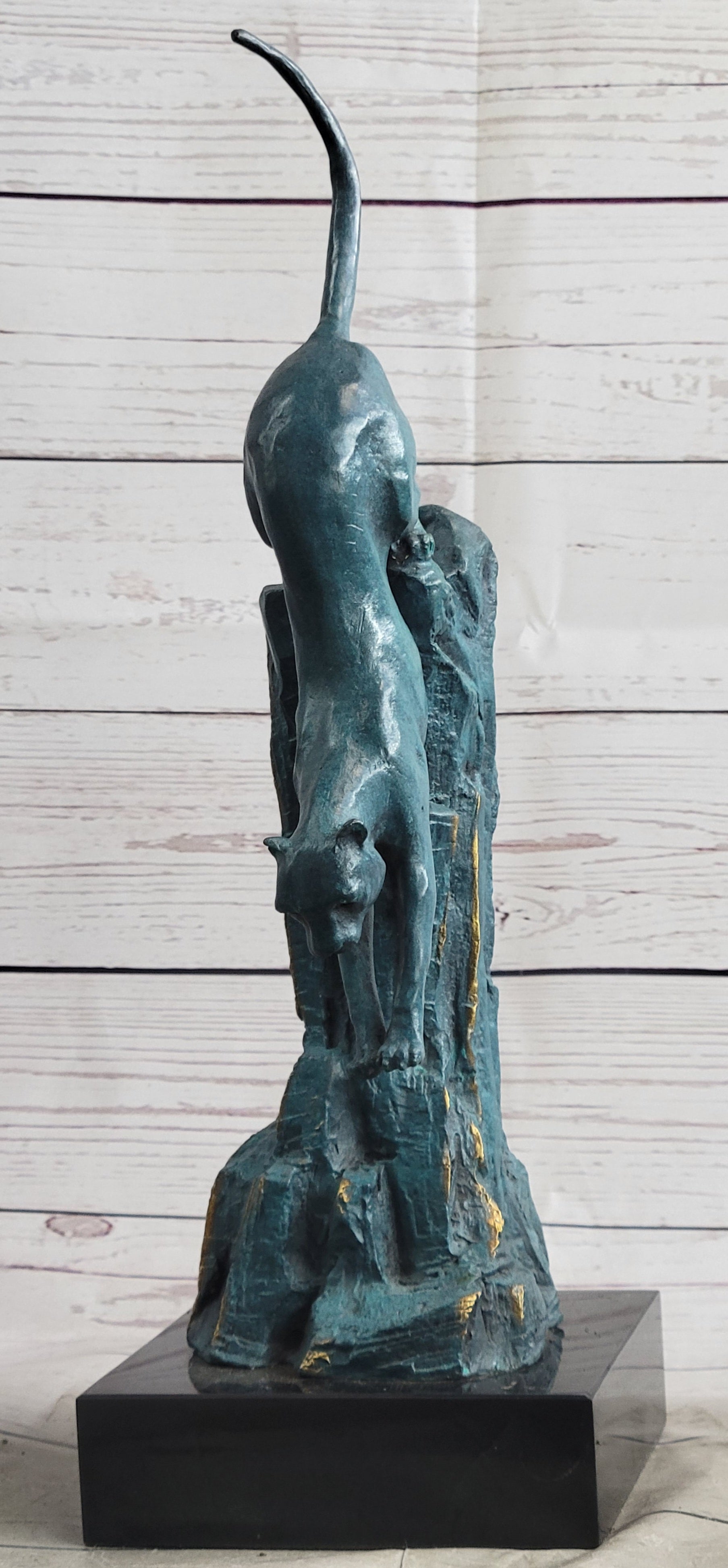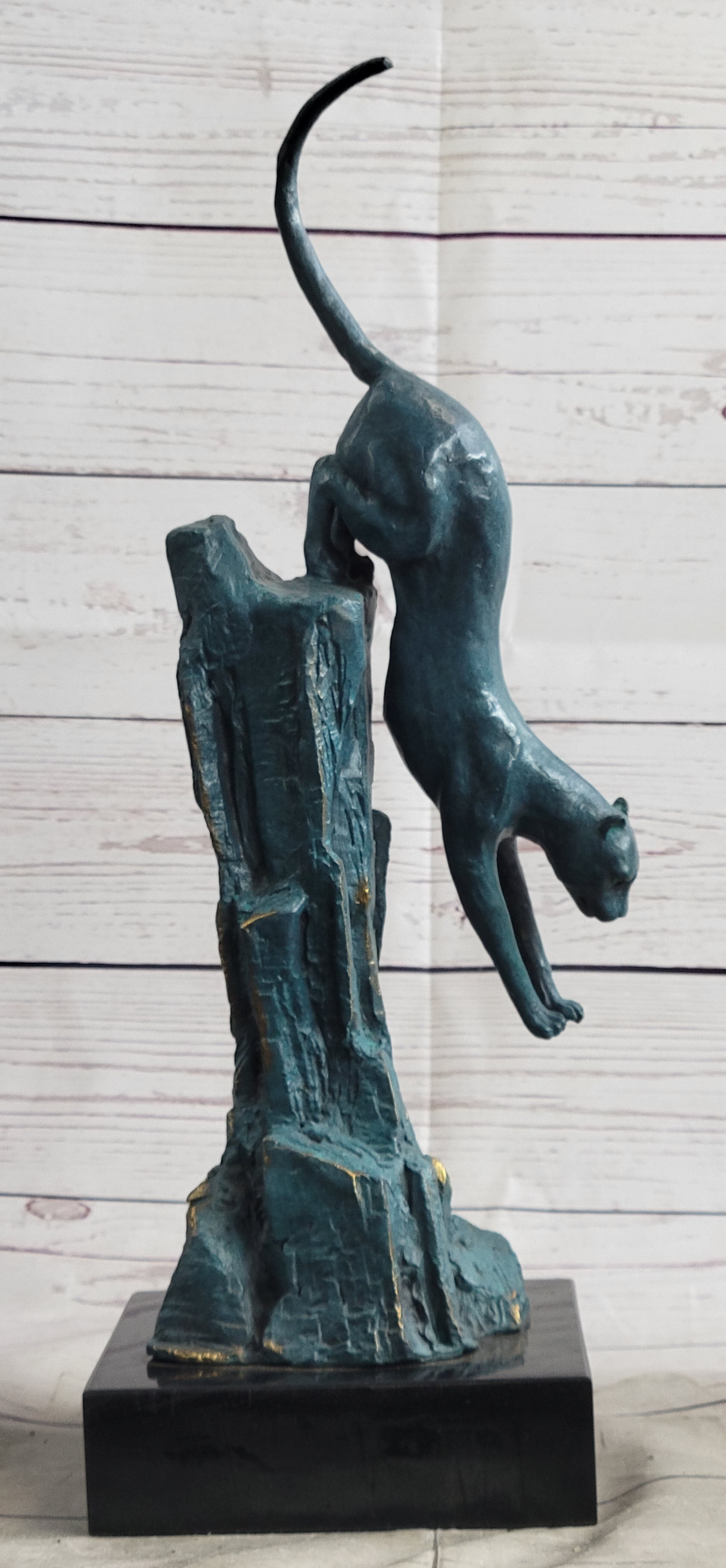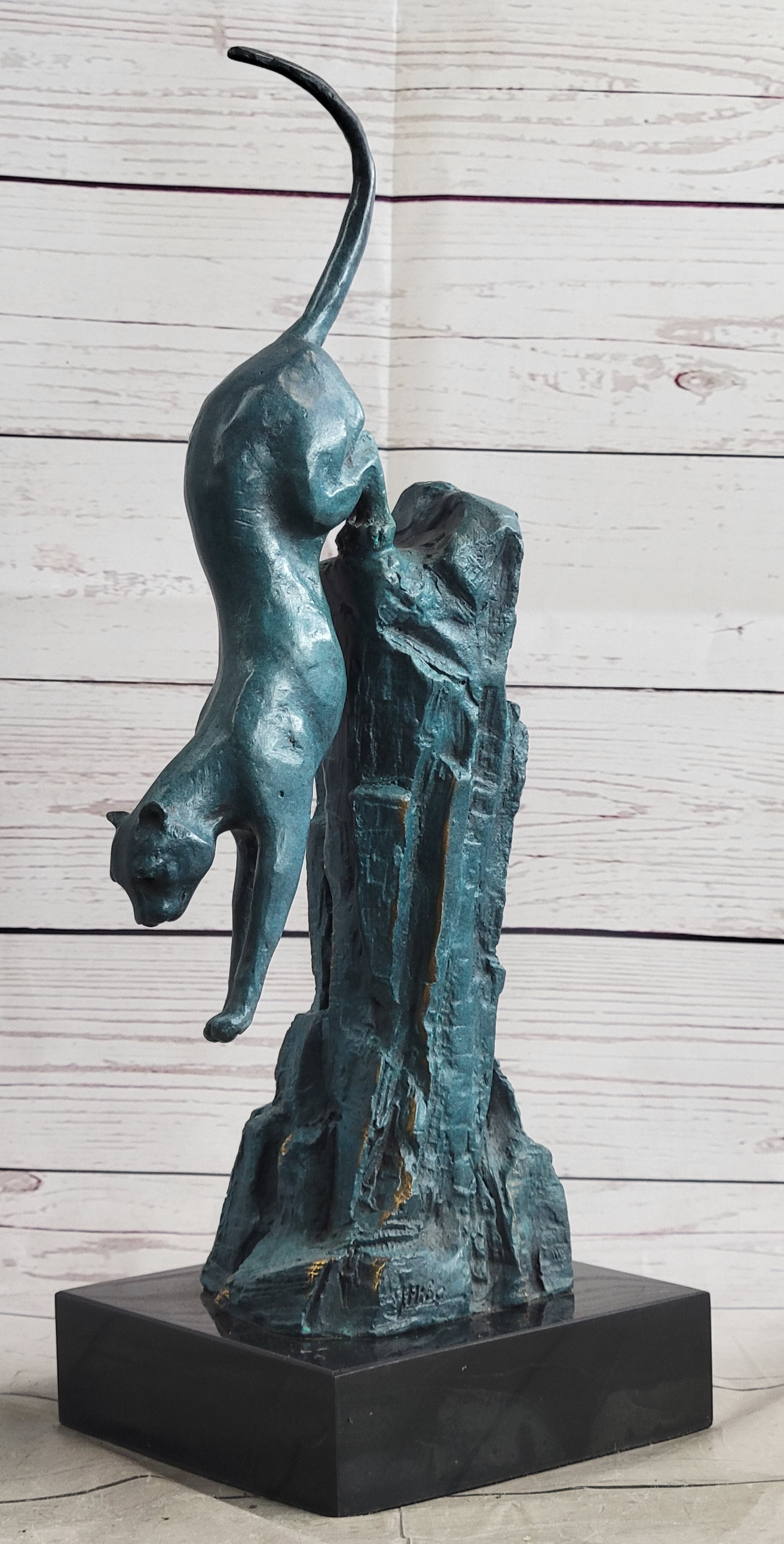 Indulge in the artistry of Milo's craftsmanship and bring the untamed beauty of the cougar into your life. With its genuine solid bronze construction, meticulous detailing, and the artist's signature, this sculpture showcases the highest standards of quality and authenticity. Whether you are an avid wildlife enthusiast, a collector of fine art, or simply appreciate the raw power of nature, this "Cougar Jumping from a Cliff" sculpture is sure to leave a lasting impression and become a cherished addition to your bronze art collection.Bronze Dimensions with Marble Base: Height 16" X Width 11"