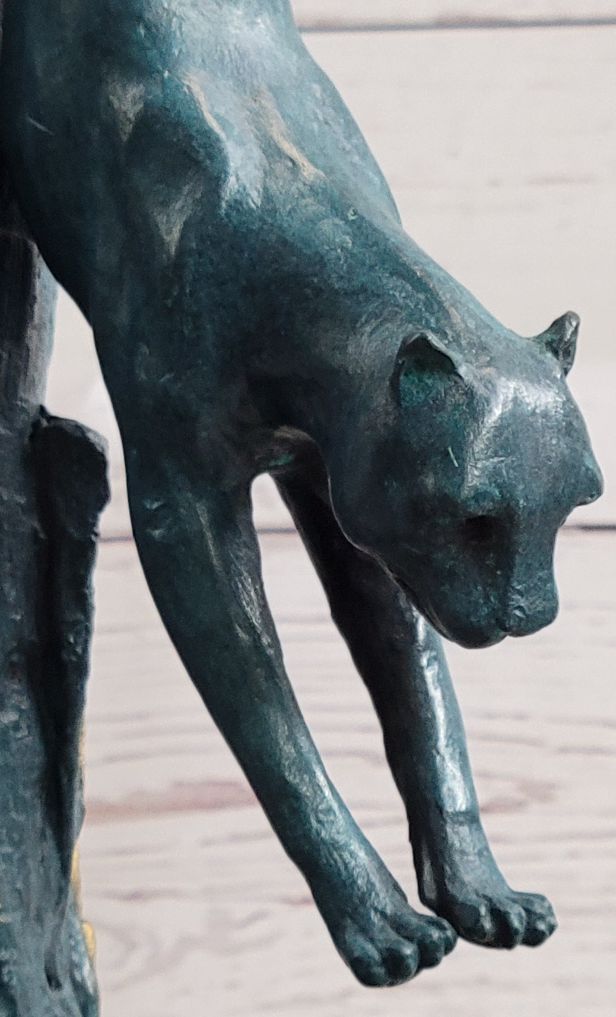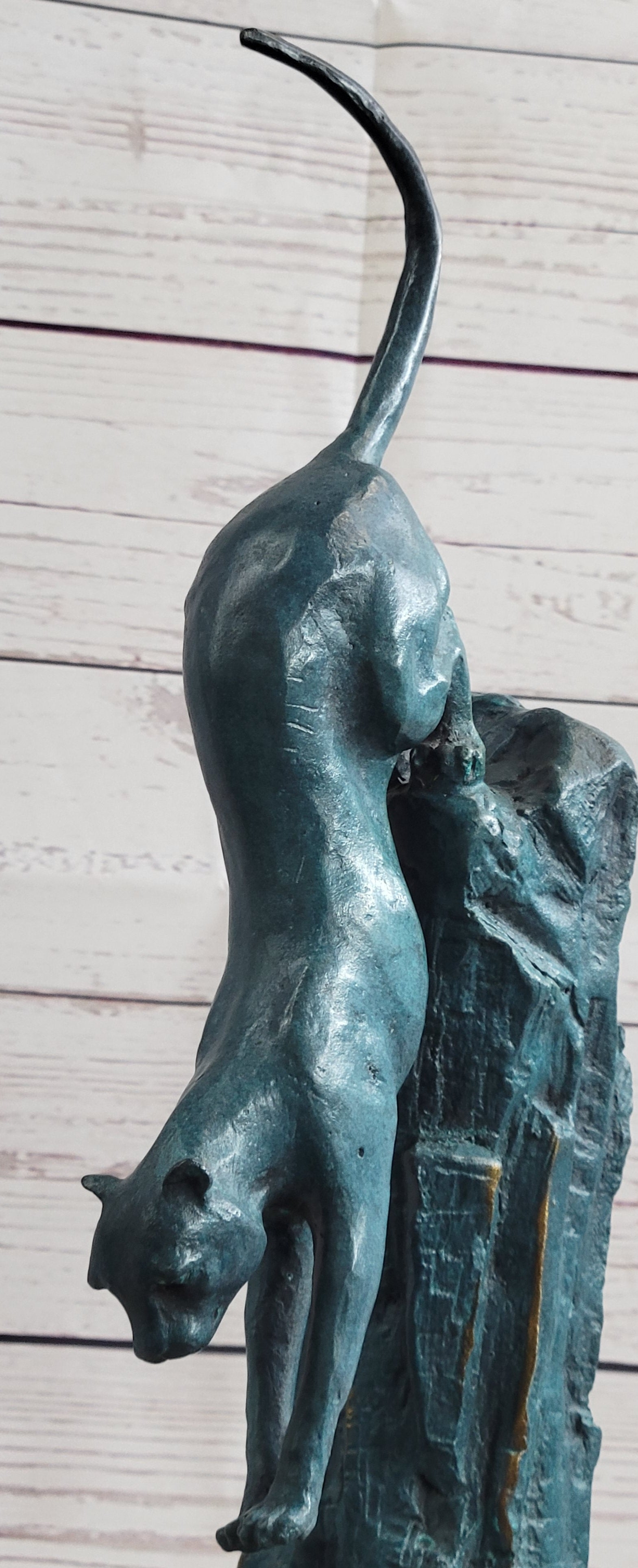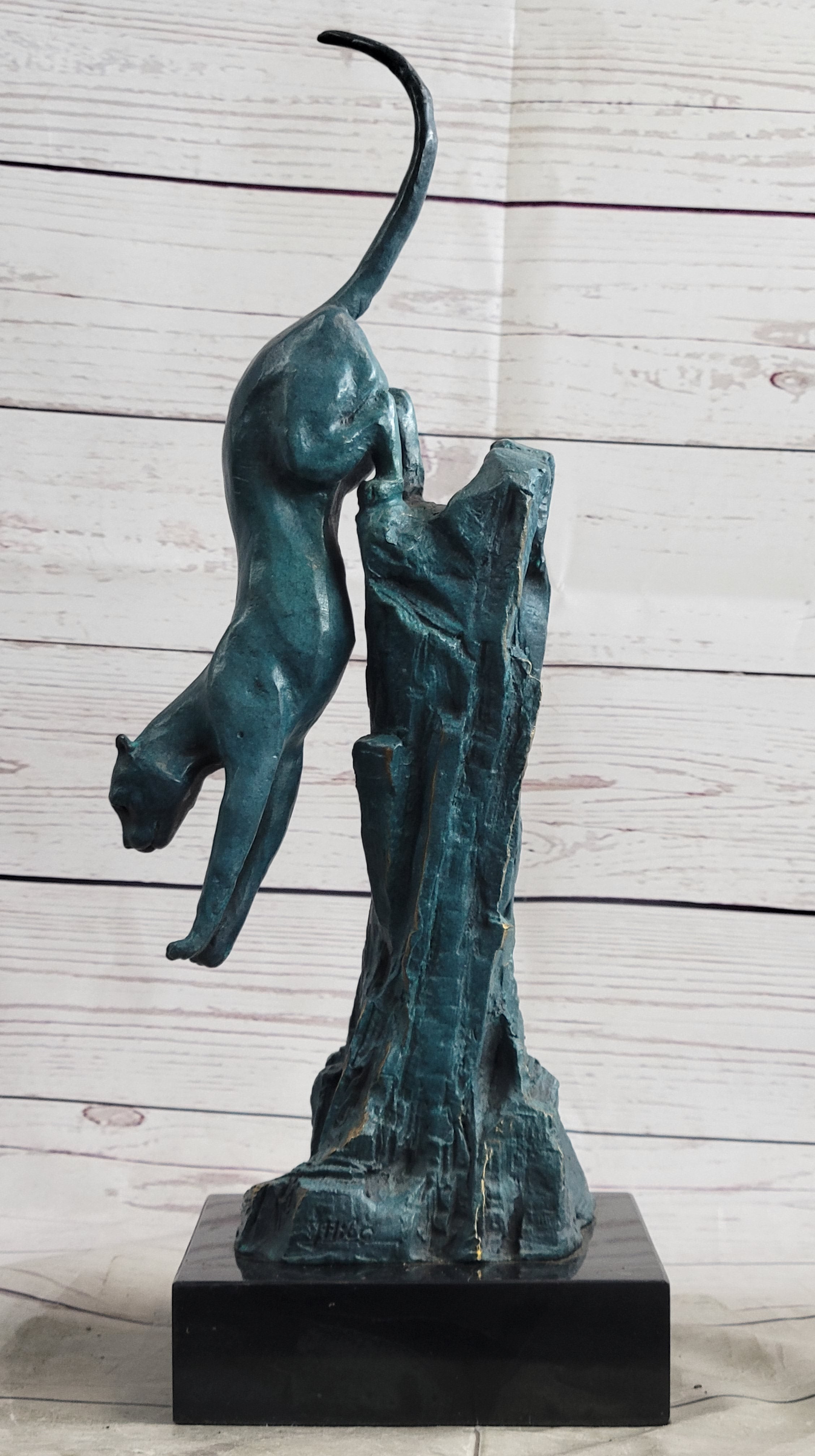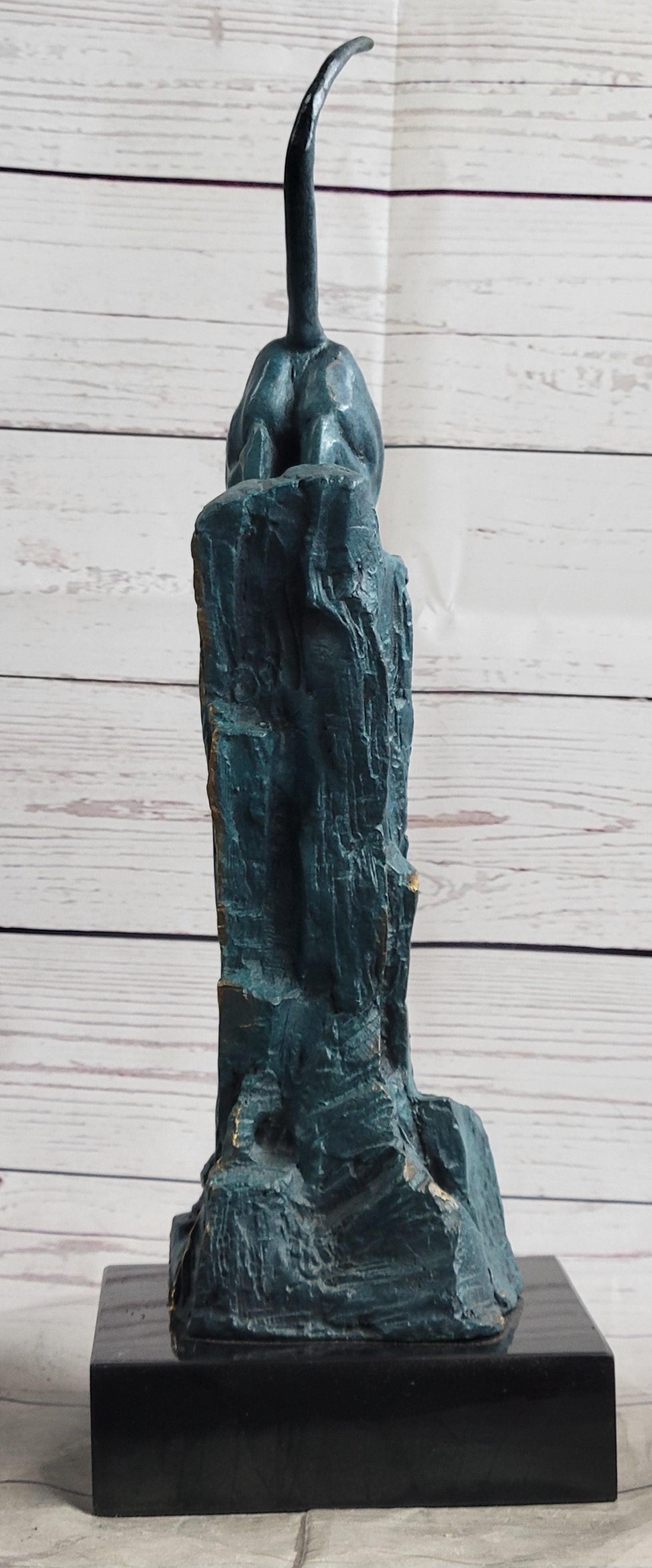 Indulge in the artistry of Milo's craftsmanship and bring the untamed beauty of the cougar into your life. With its genuine solid bronze construction, meticulous detailing, and the artist's signature, this sculpture showcases the highest standards of quality and authenticity. Whether you are an avid wildlife enthusiast, a collector of fine art, or simply appreciate the raw power of nature, this "Cougar Jumping from a Cliff" sculpture is sure to leave a lasting impression and become a cherished addition to your bronze art collection.Bronze Dimensions with Marble Base: Height 16" X Width 11"