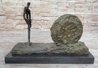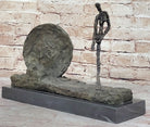 Handcrafted Gia 100% Real Bronze Sculpture Woman and Wheel Classic Artwork Statue