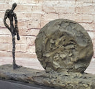 Embracing the Surrealist art movement, Commetti demonstrates his distinctive artistic vision through this intriguing sculpture. The piece invites viewers to delve into the enigmatic world of Surrealism, where reality and imagination collide, giving form to abstract concepts and emotions. Commetti's portrayal of a slender figure positioned in front of a towering and expansive wheel sparks curiosity and encourages individual interpretation.