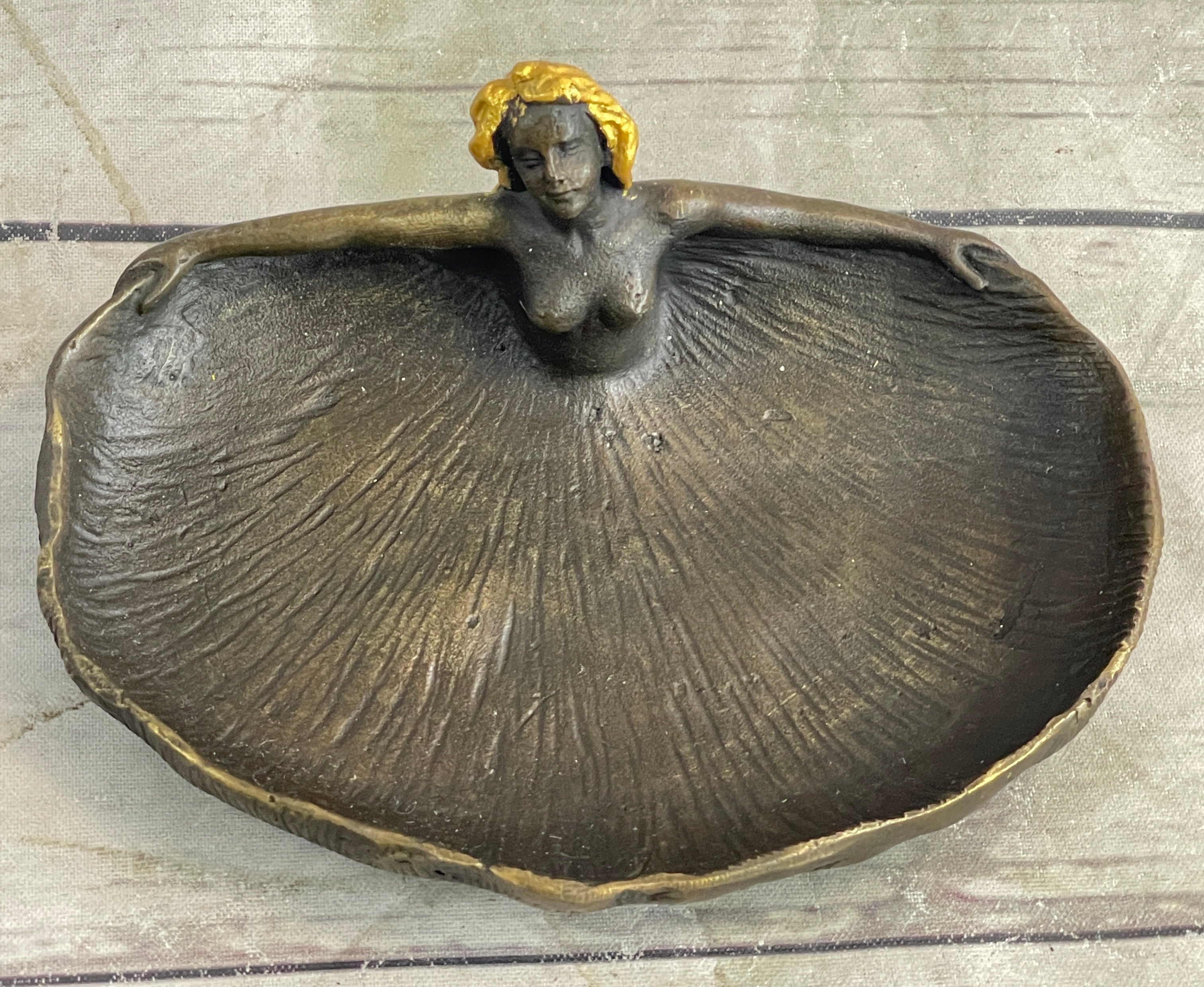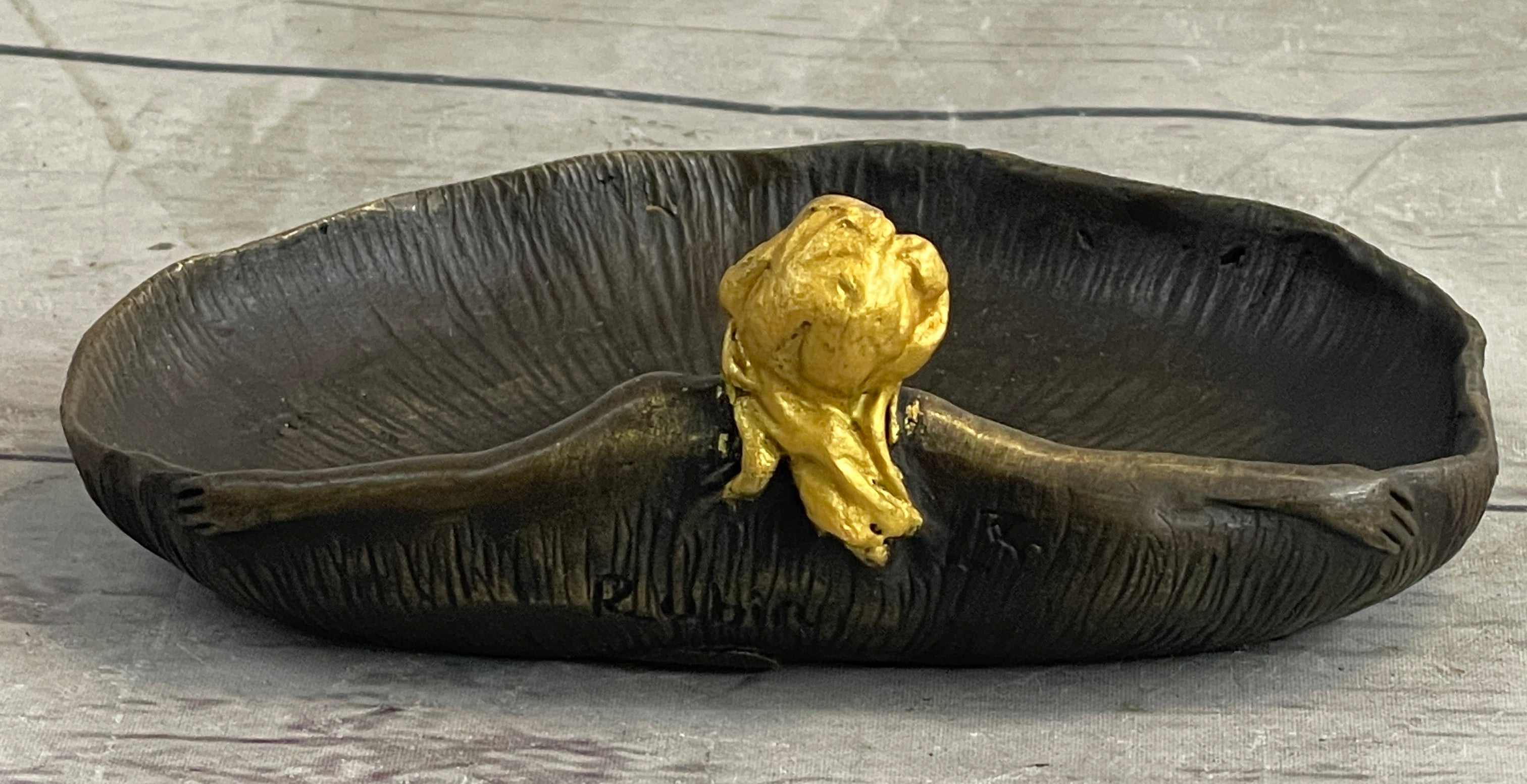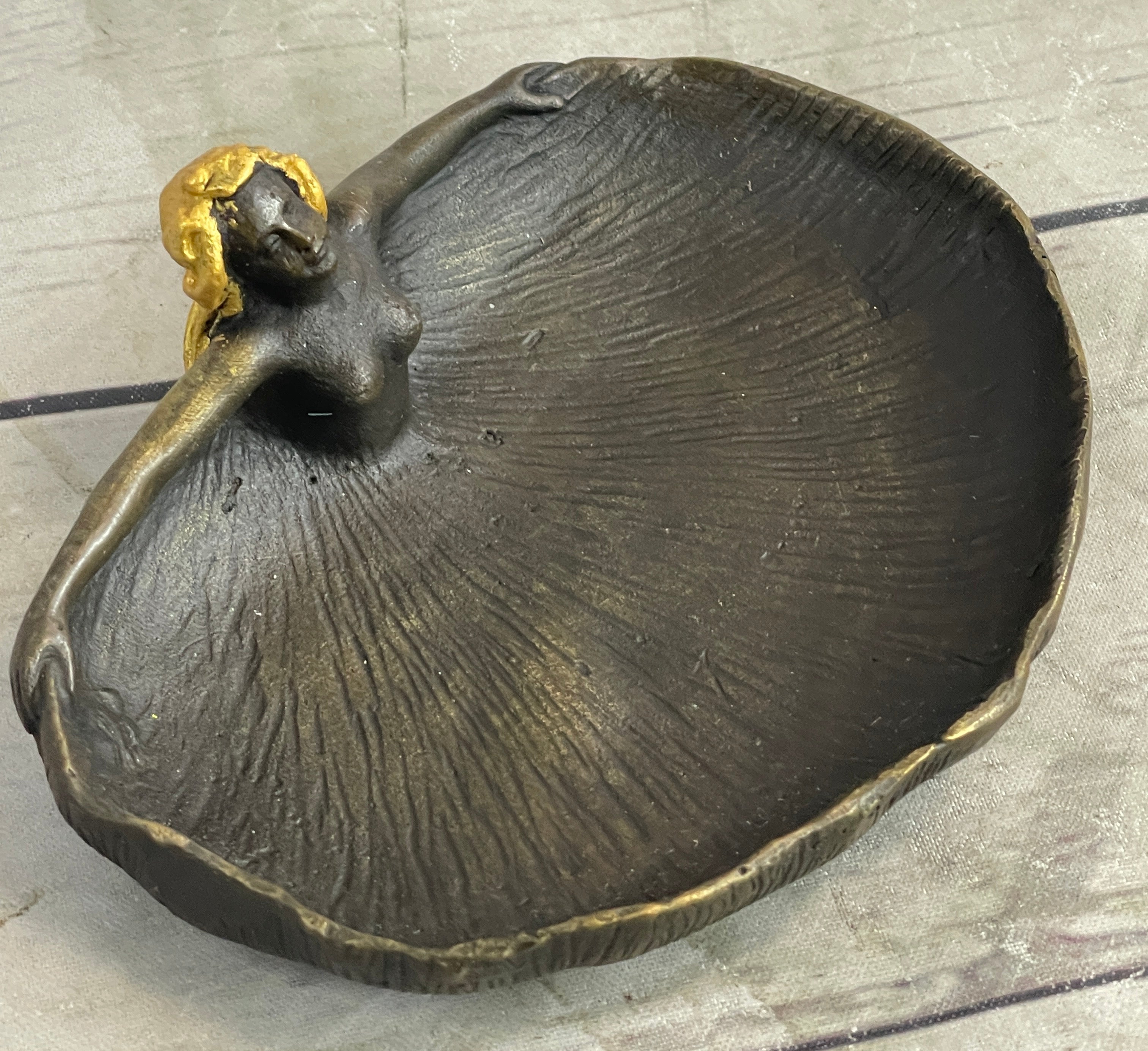 Handcrafted Gilt Soap Dish Jewelry's Tray Genuine Bronze Sculpture By Rubin