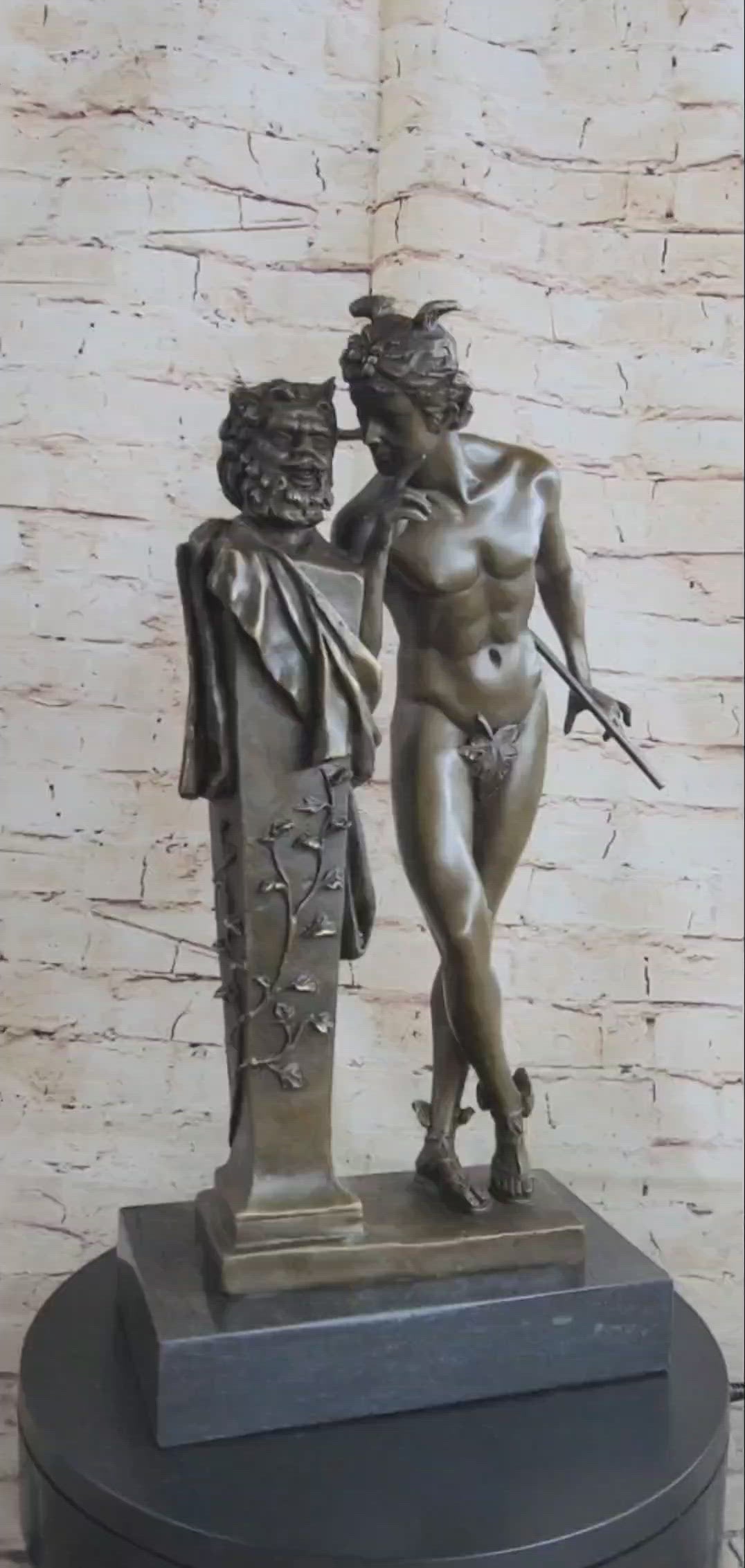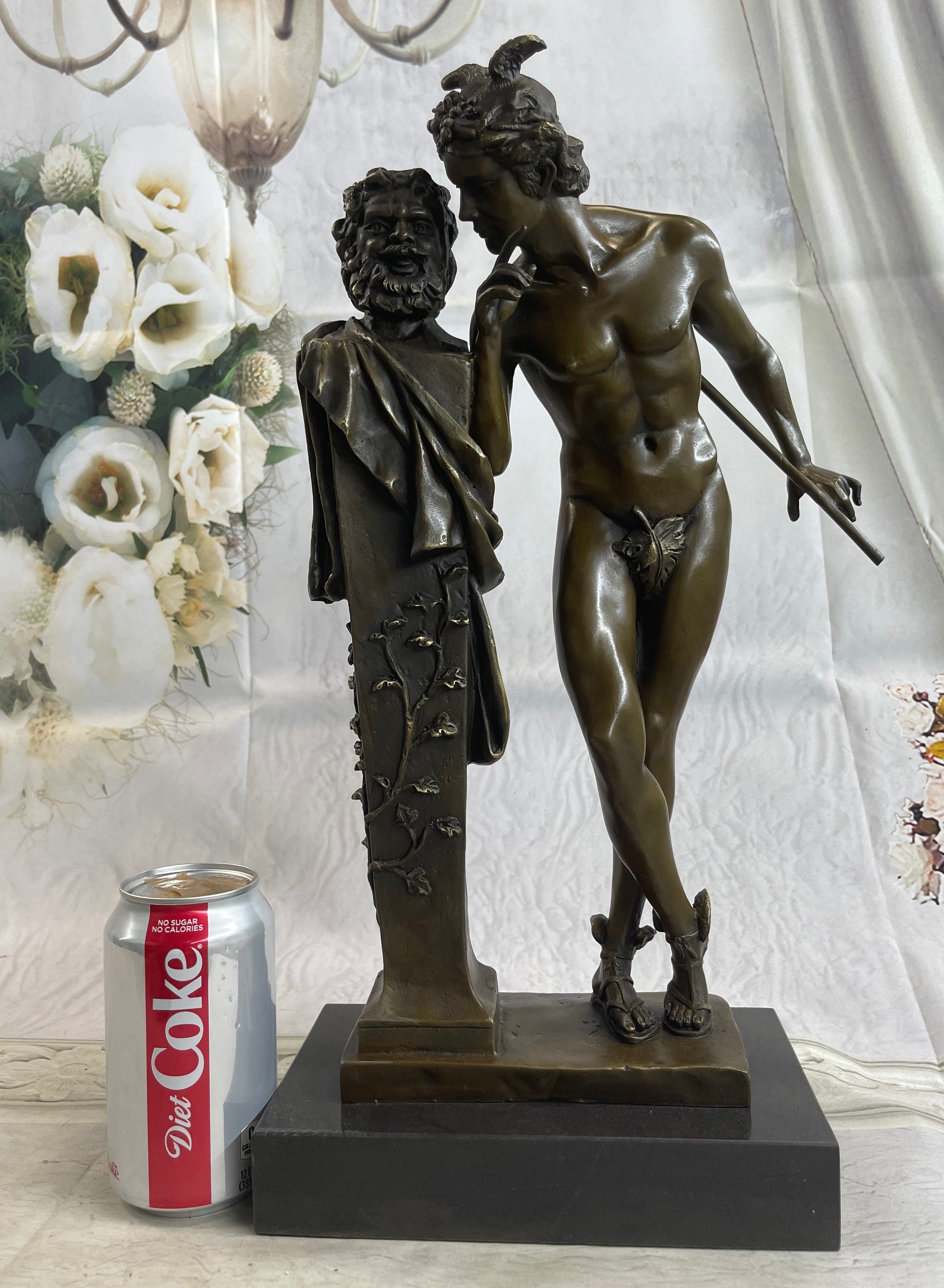 A Secret from on High after Hyppolite Moulin Mercury Hermes Bronze Statue Sculpture 17" x 10"