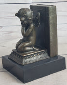 Bronze Cherubim Pair of Bookends Book End Sculpture Statue Decor 6" x 9"