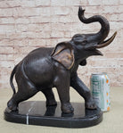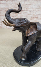 Handmade Bronze Elephant Sculpture Statue Collectible Marble Base Signed Moigniez 13" x 16"