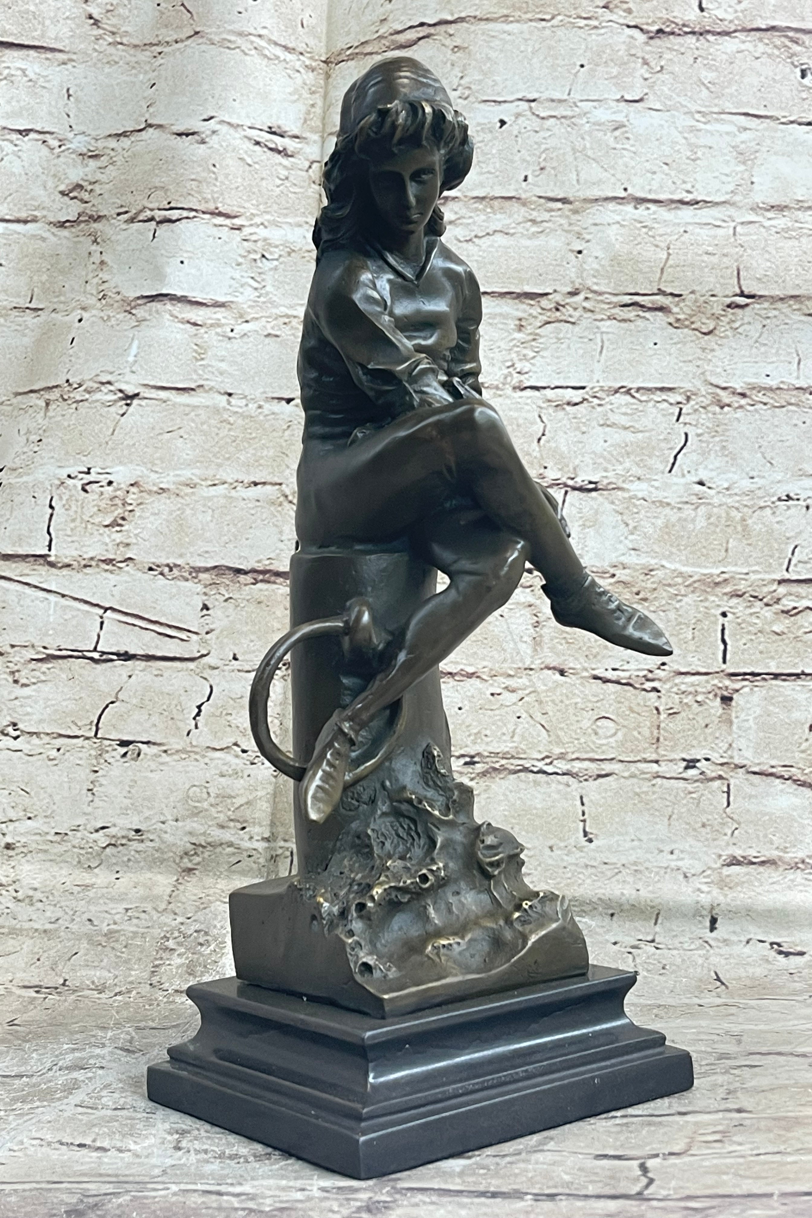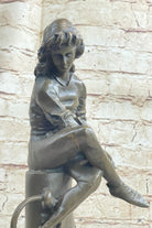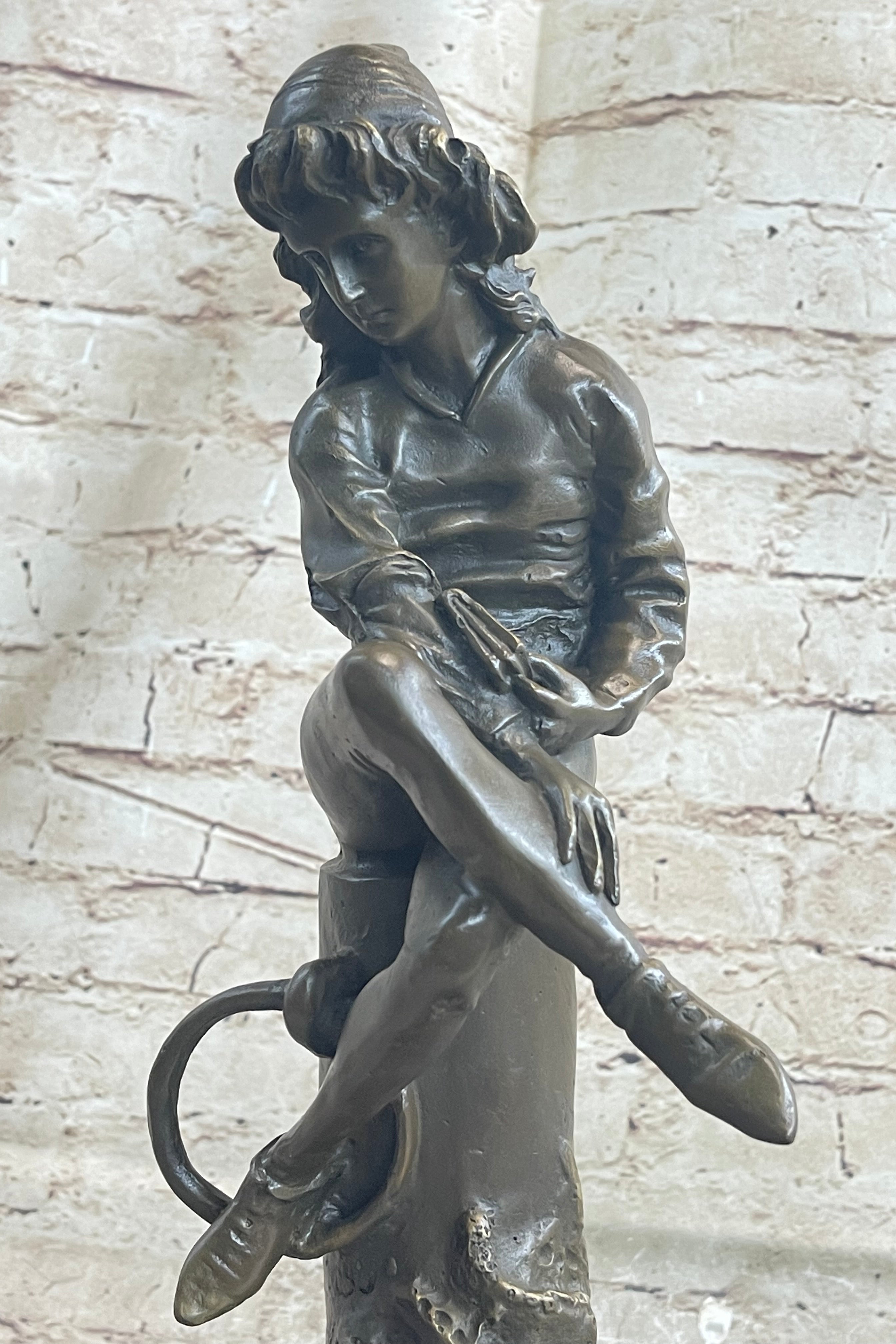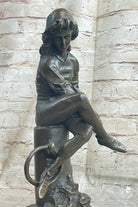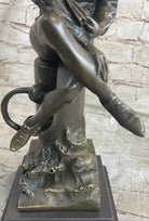 Aimé-Jules Dalou, born on December 31, 1838, in Paris, remains a celebrated French sculptor of the nineteenth century. Renowned for his keen perception, impeccable execution, and unpretentious realism, Dalou's work continues to be admired. This sculpture not only captures a moment frozen in time but also pays homage to the artistic legacy of a master sculptor.Bronze Dimensions with Marble Base: Height 14" X Width 5"