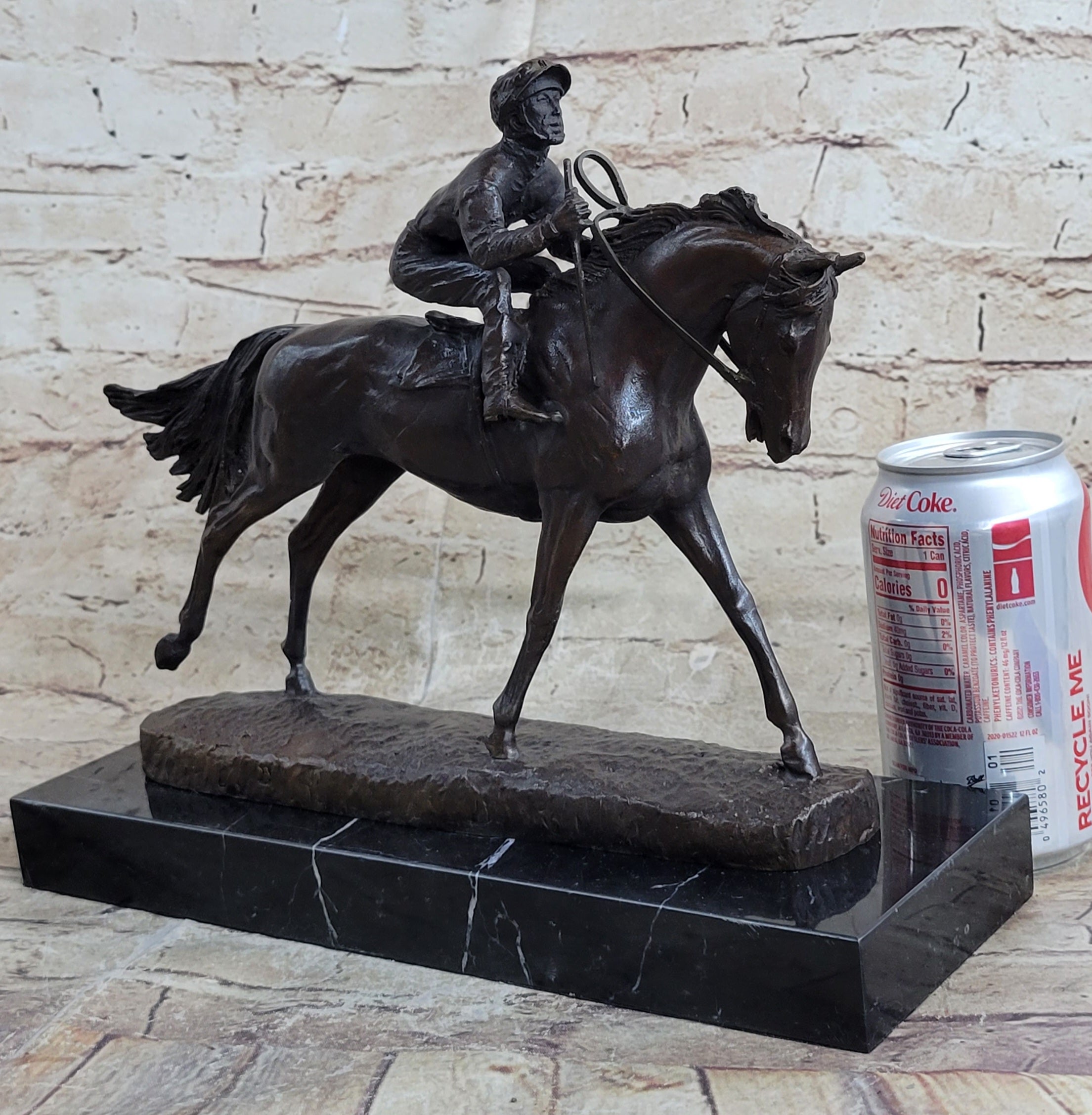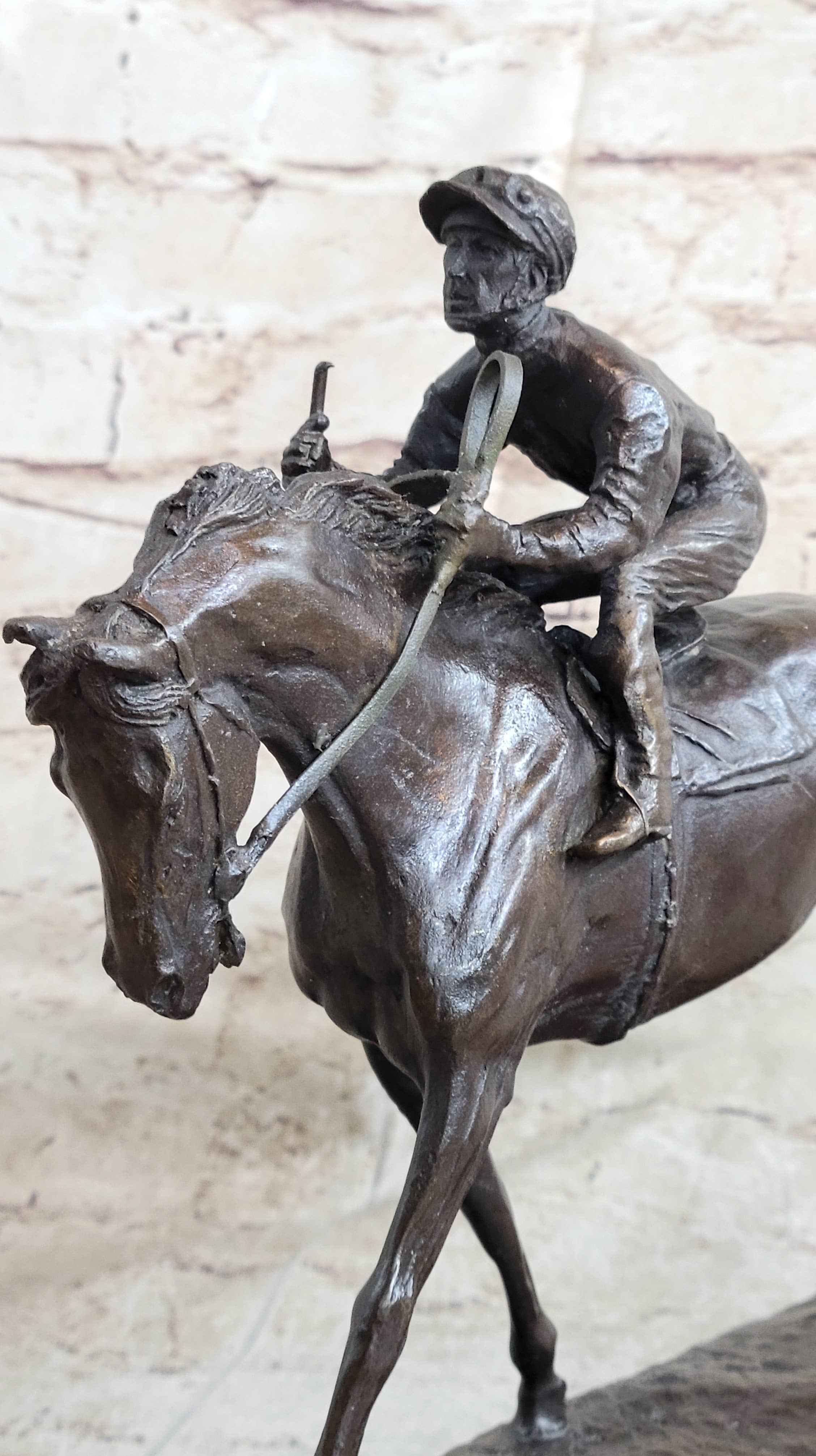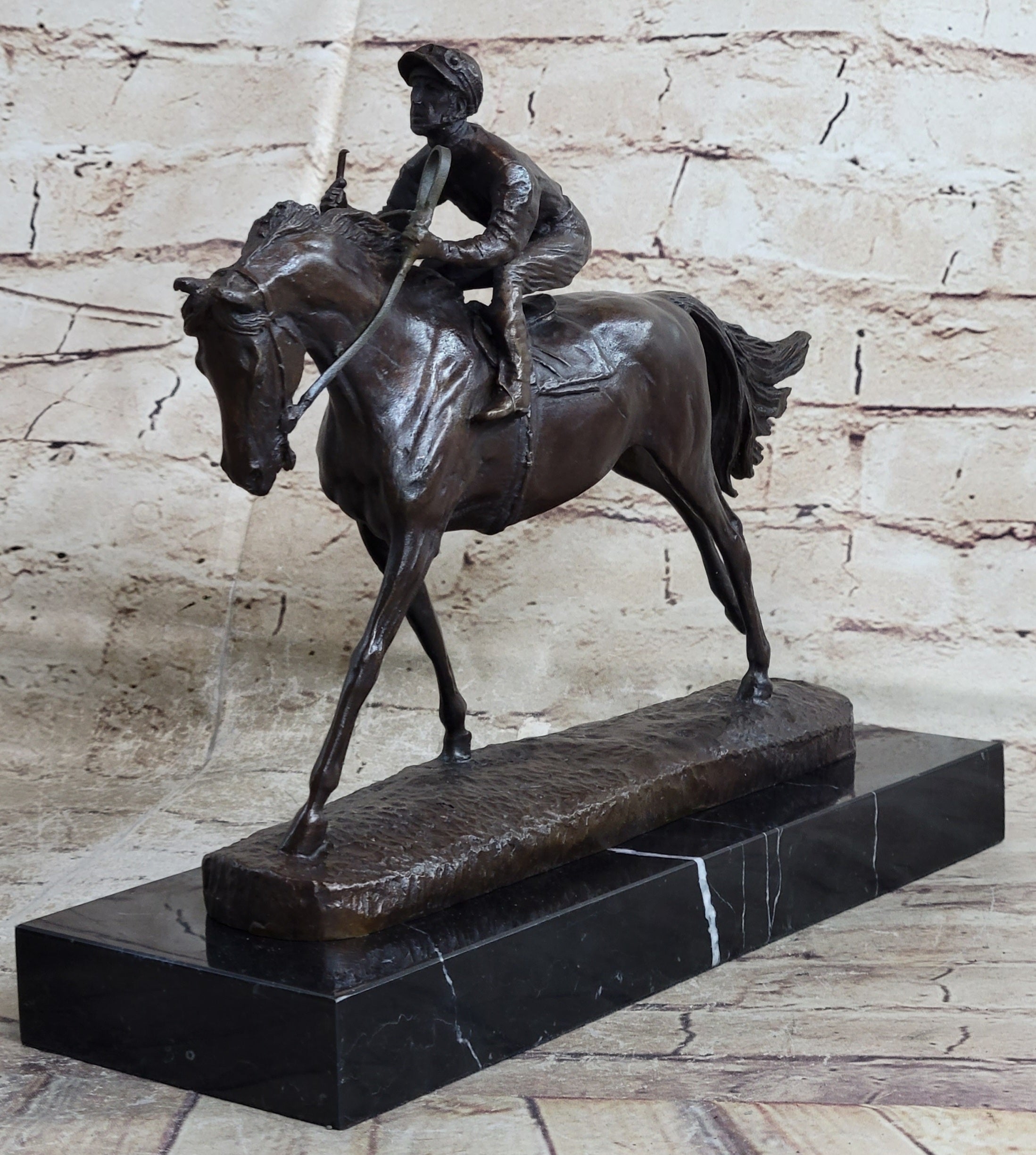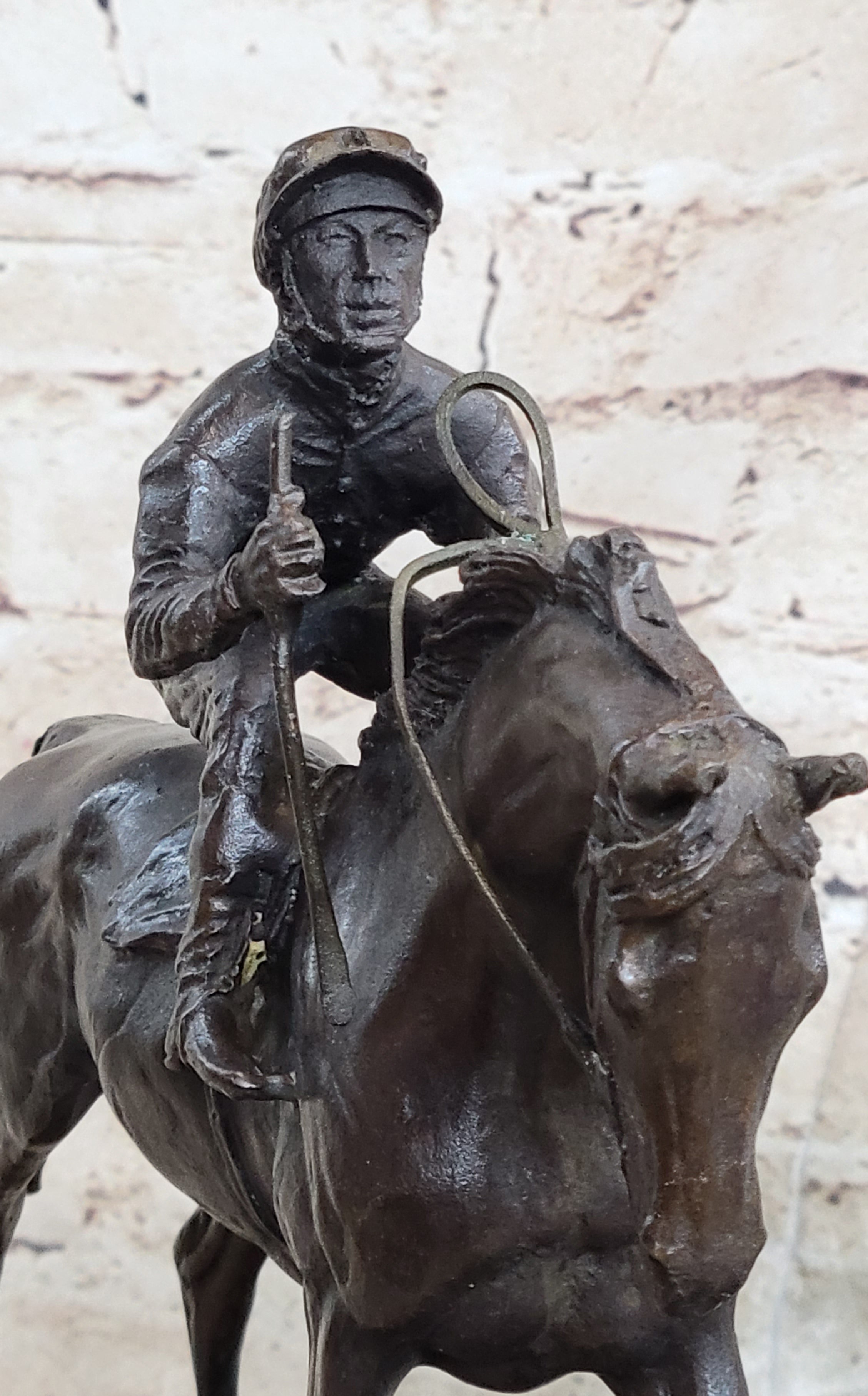 Handmade Bronze Sports Art Sculpture Jockey Horse Racing Kentucky Derby Statue