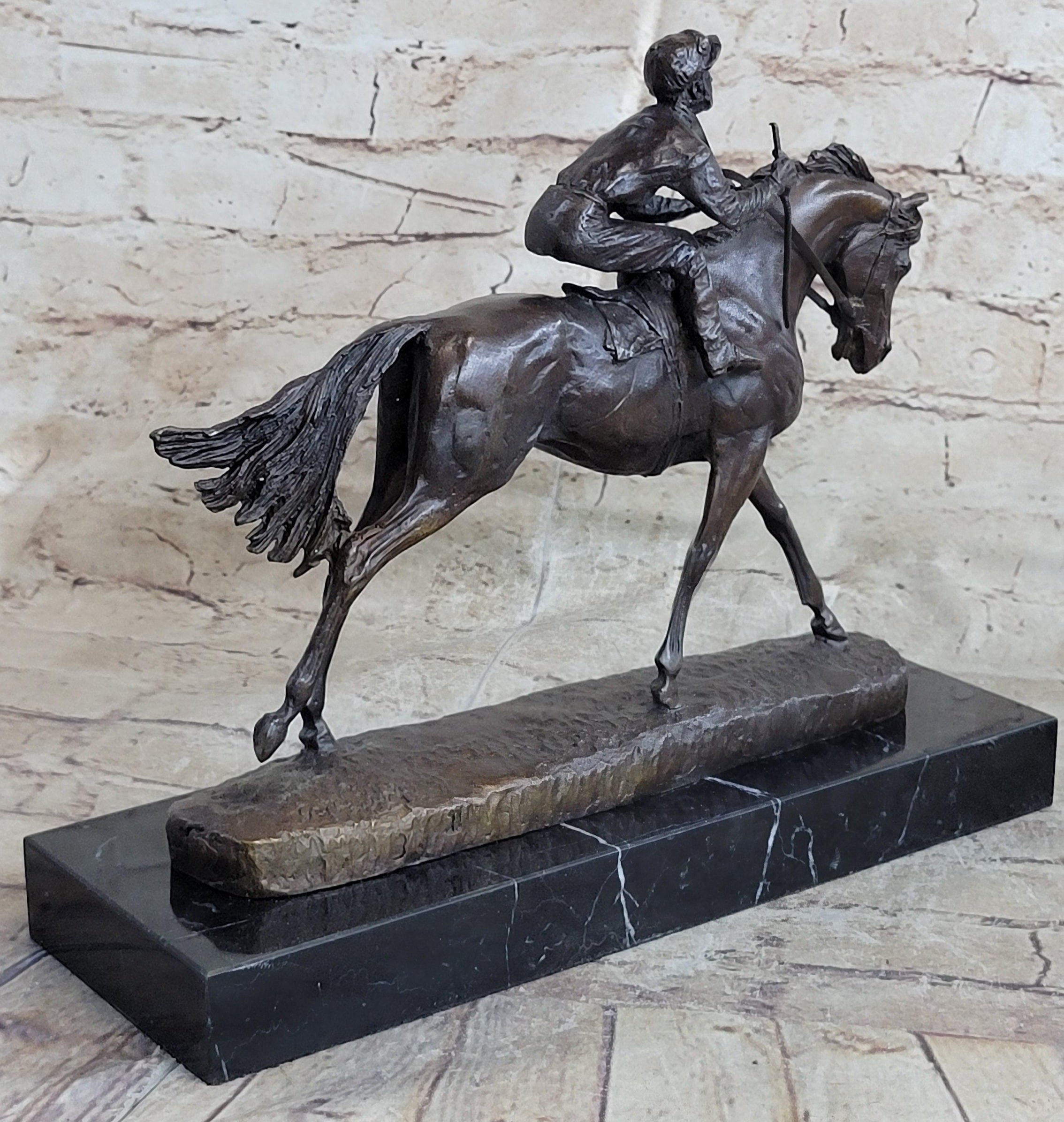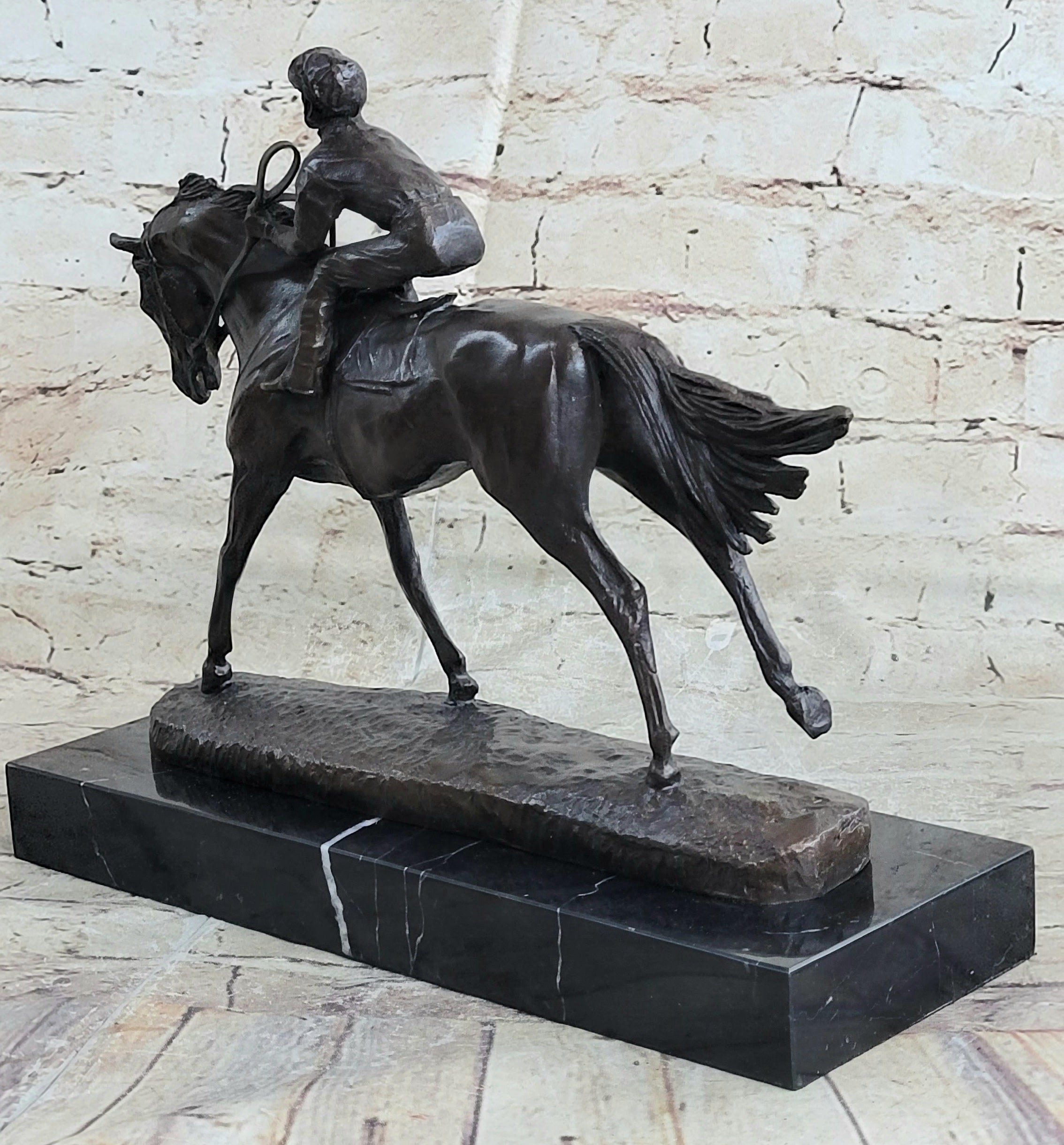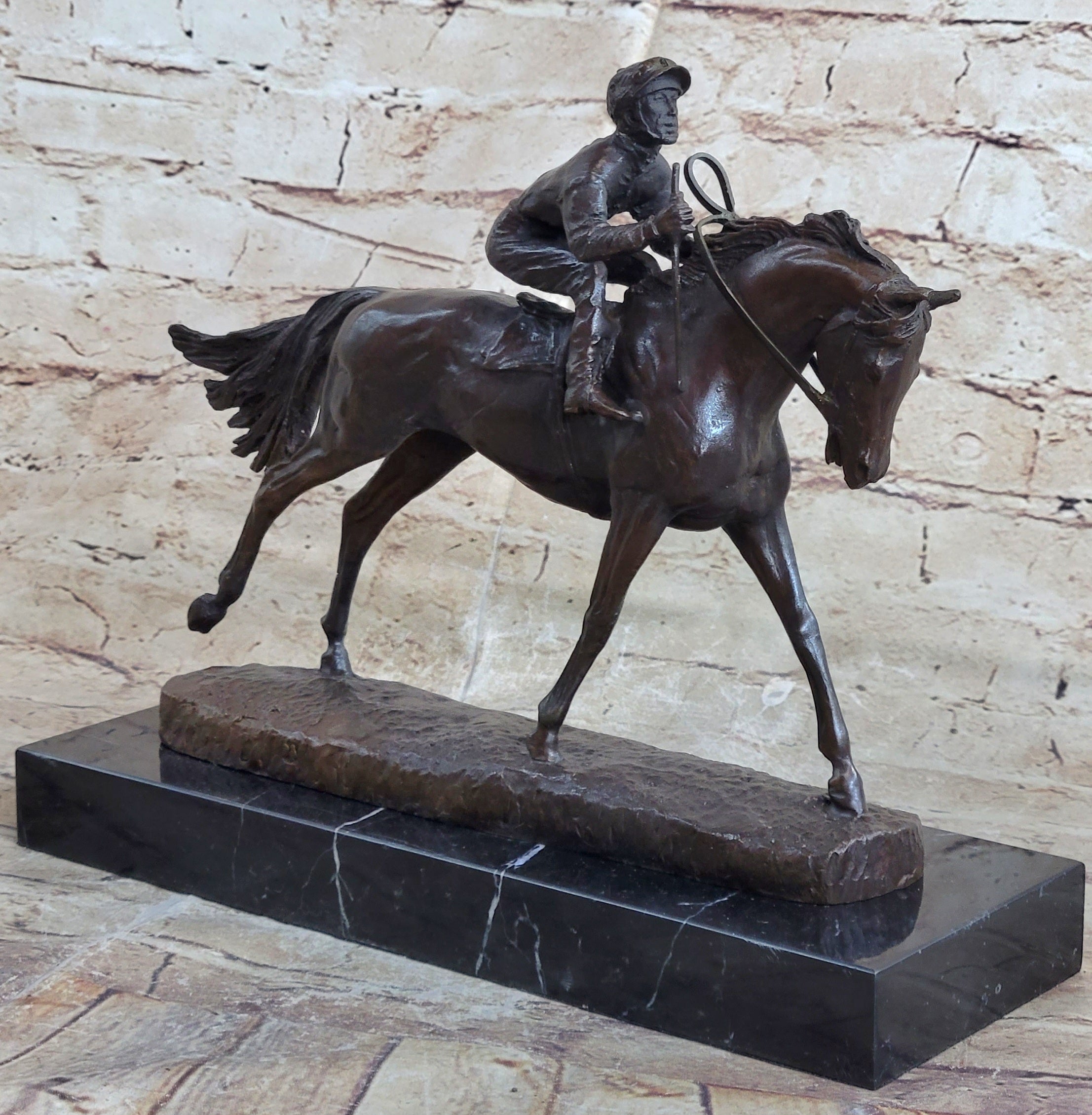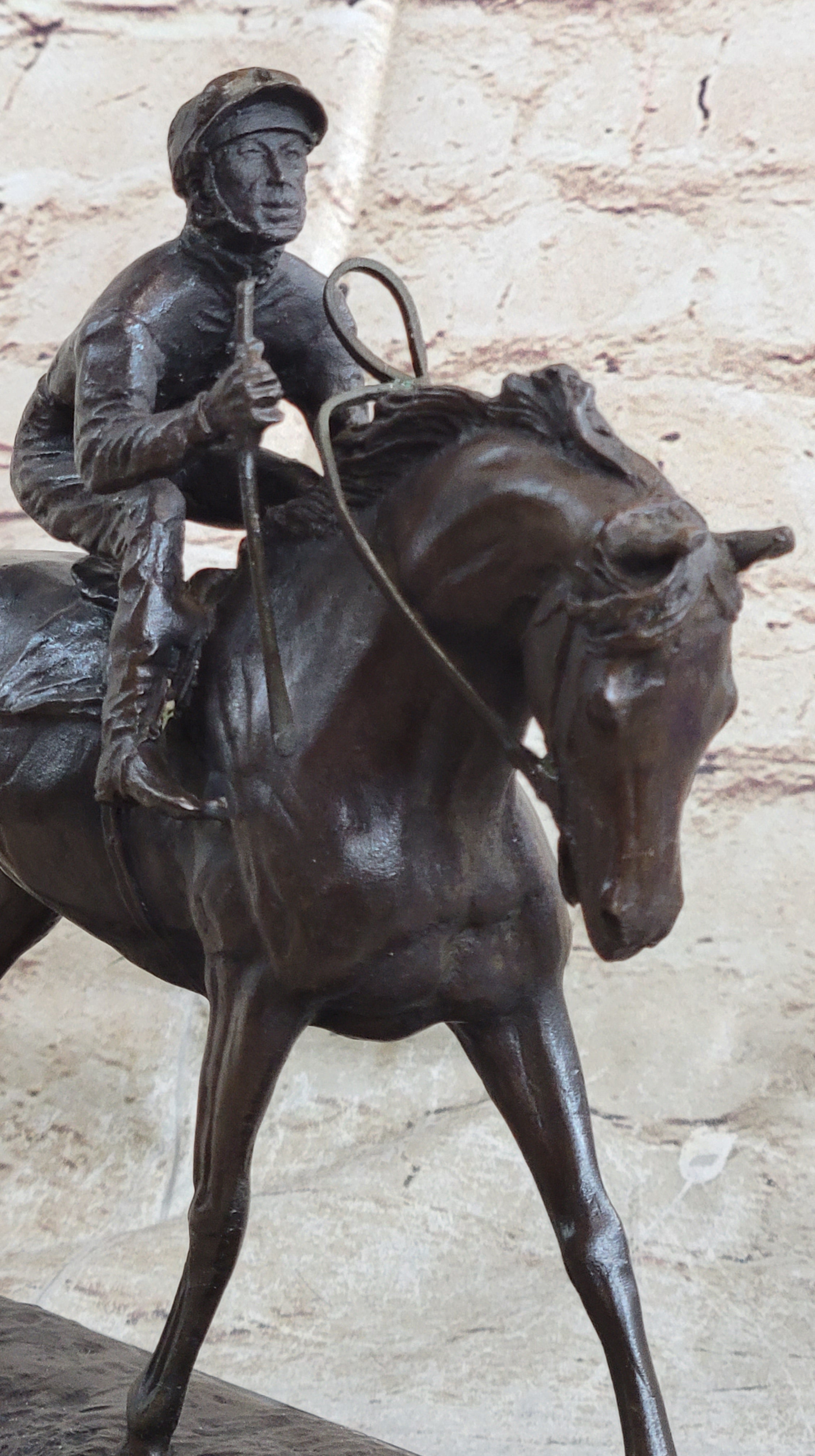 Handmade Bronze Sports Art Sculpture Jockey Horse Racing Kentucky Derby Statue