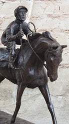 As the world's leading dealer of small to medium-sized bronze sculptures, we take pride in offering the finest European bronze sculptures and statues at competitive prices. With swift delivery from our New York warehouse within 1 business day, you can expect your new piece of art to arrive quickly and in perfect condition. Experience the exhilaration of the racetrack with our Horse Race Jockey Equestrian Kentucky Derby Bronze Metal Sculpture, a true masterpiece that brings the thrill of the race to your space.Bronze Dimensions with Marble Base: Height 10" X Width 12"