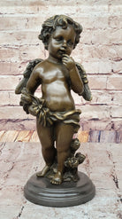 Handmade French Cherub Bronze with Wings Art Nouveau Lost Wax Figurine Figure