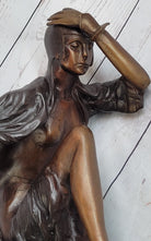 Crafted using the age-old method of lost-wax casting, the sculpture is stained with a rich brown patina finish, ensuring its longevity and adding a touch of timeless elegance. The patina enhances the texture and detail of her bodysuit, as well as the smooth contours of her body, bringing the piece to life with a sense of realism and movement. The artist's skilled craftsmanship is evident in every curve and line, making it a standout piece in any collection.