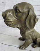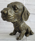 Bobble Head Style Floppy Eared Dog Cute Bronze Statue Sculpture Signed Collectible 9" x 9"