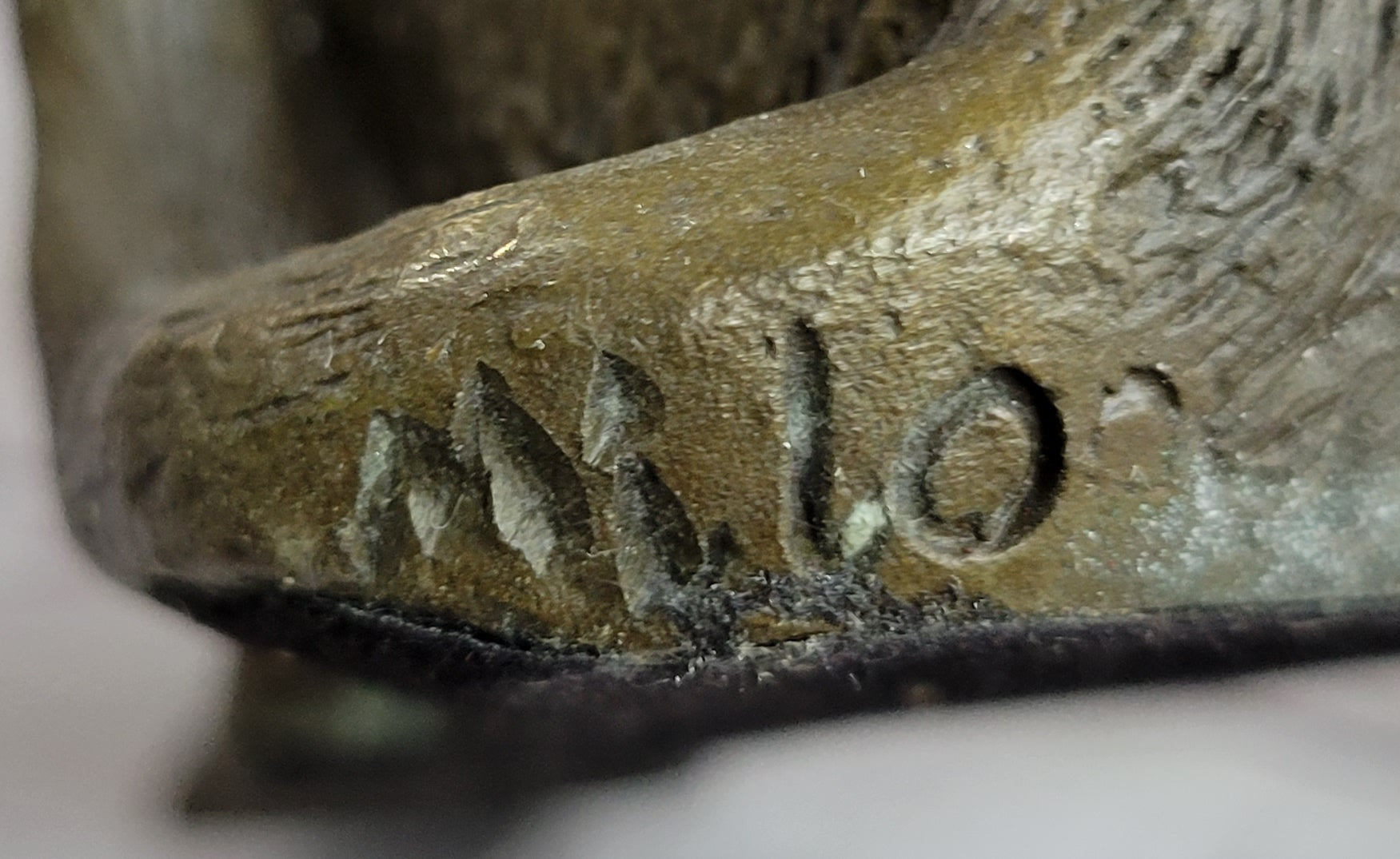 Signed by the artist Moore, this bronze sculpture not only captures the spirit of a beloved Labrador puppy but also serves as a testament to the artist's skill in bringing warmth and character to the medium of bronze. With its two-toned brown patina, this statue is a charming addition to any space, celebrating the joy and companionship that our furry friends bring into our lives.Bronze Dimensions: Height 9" X Width 9"