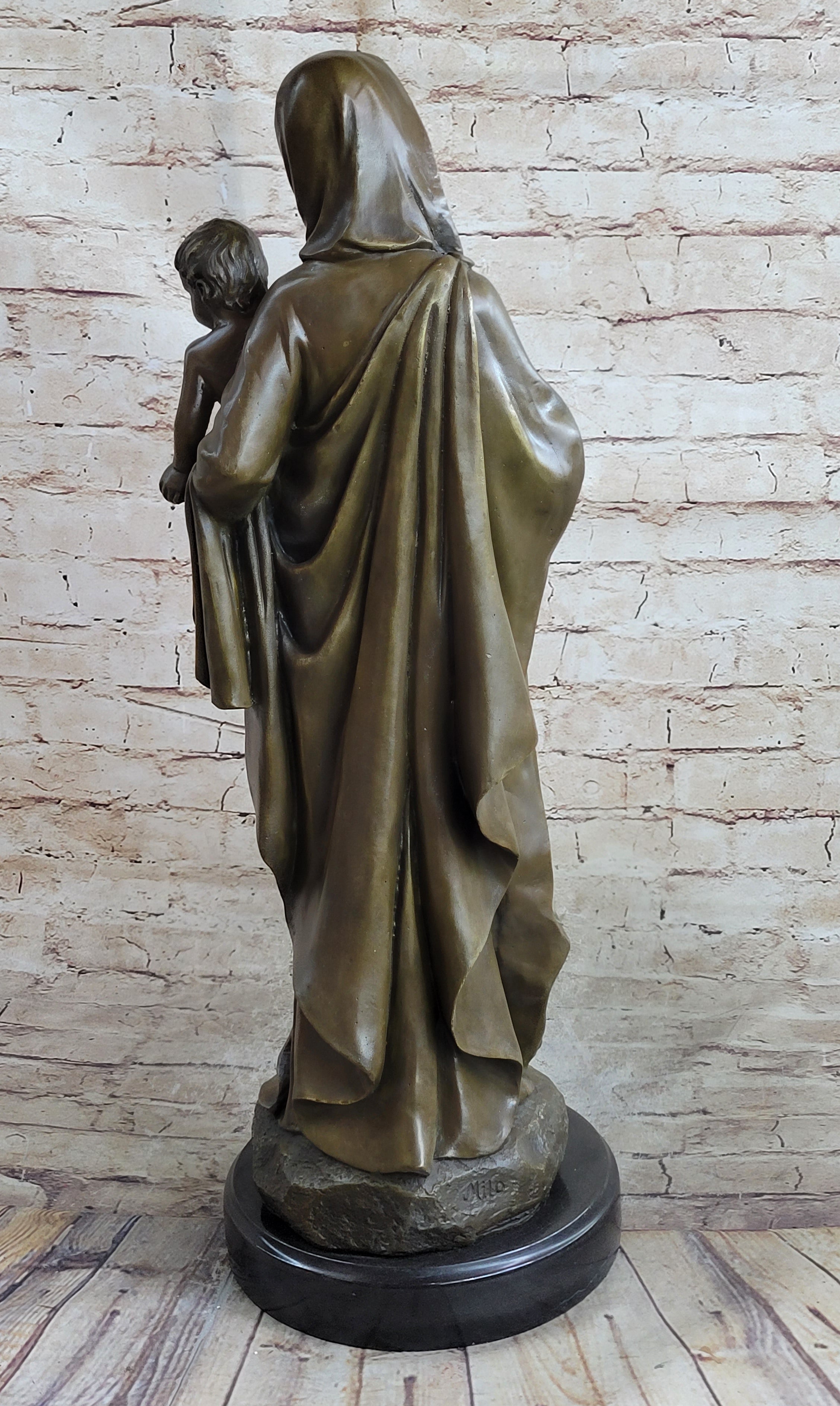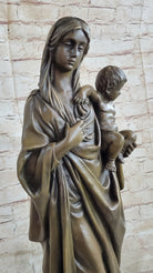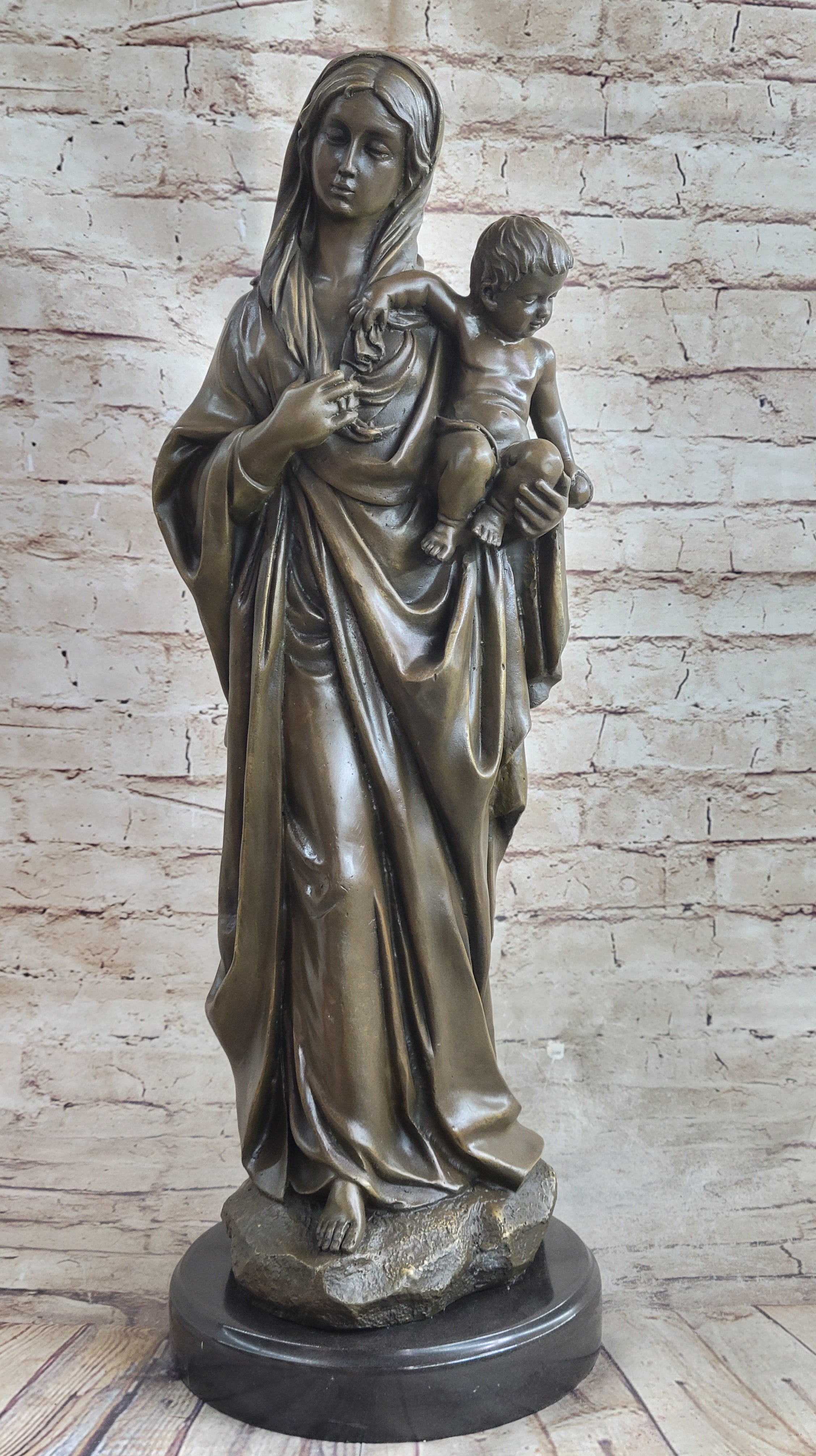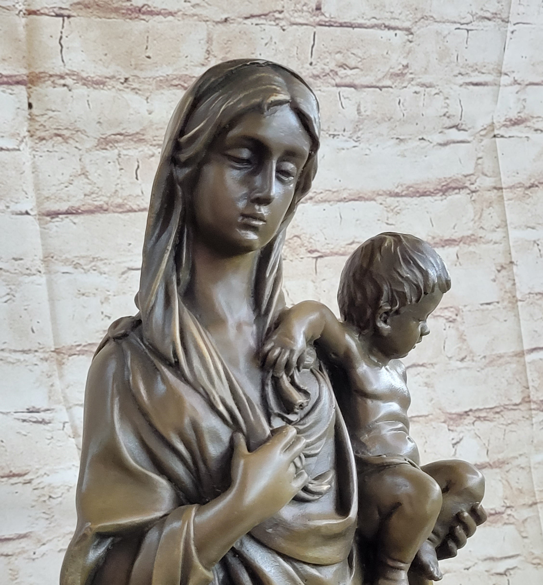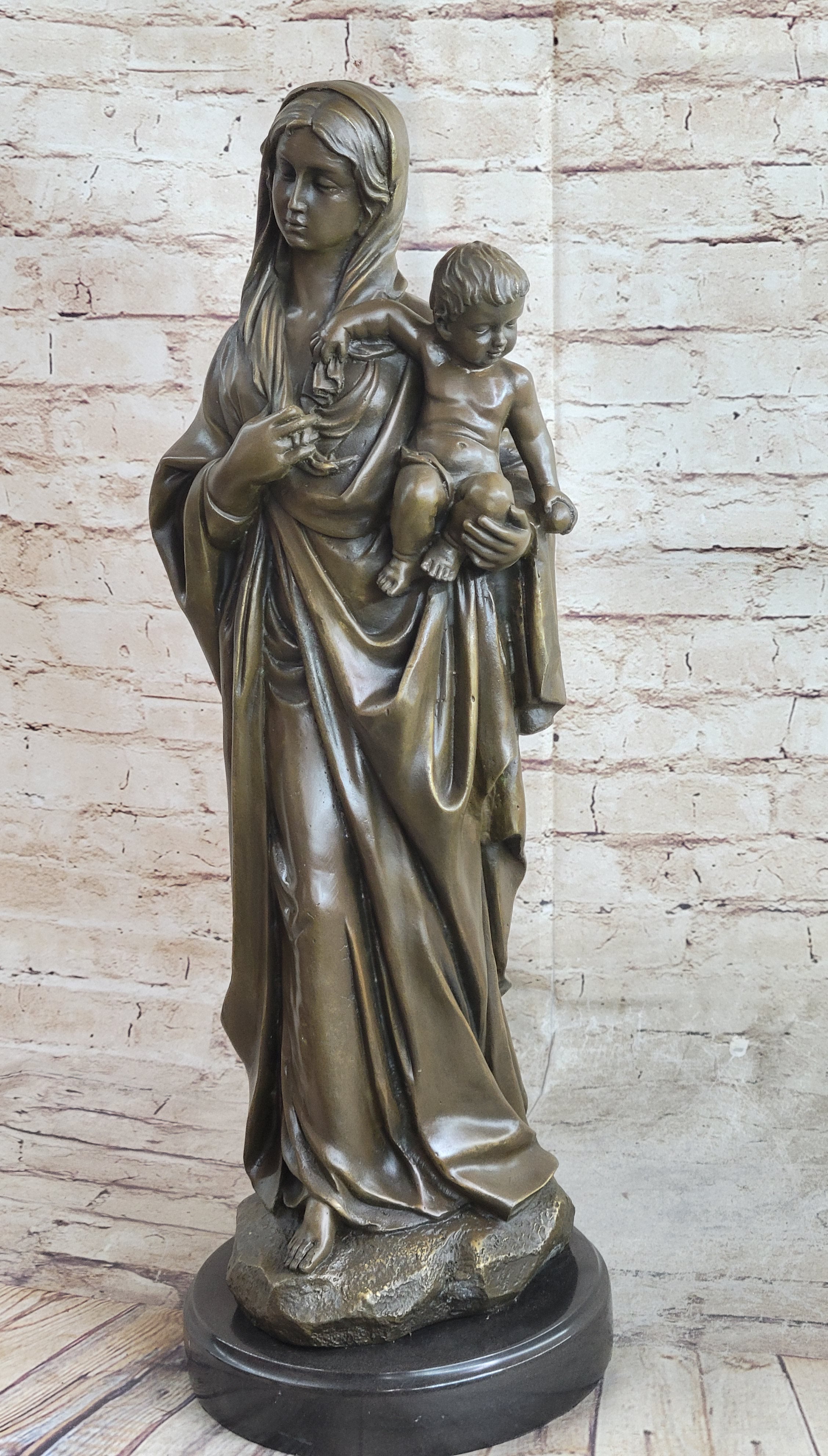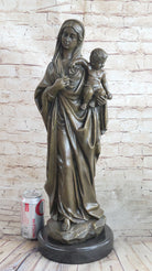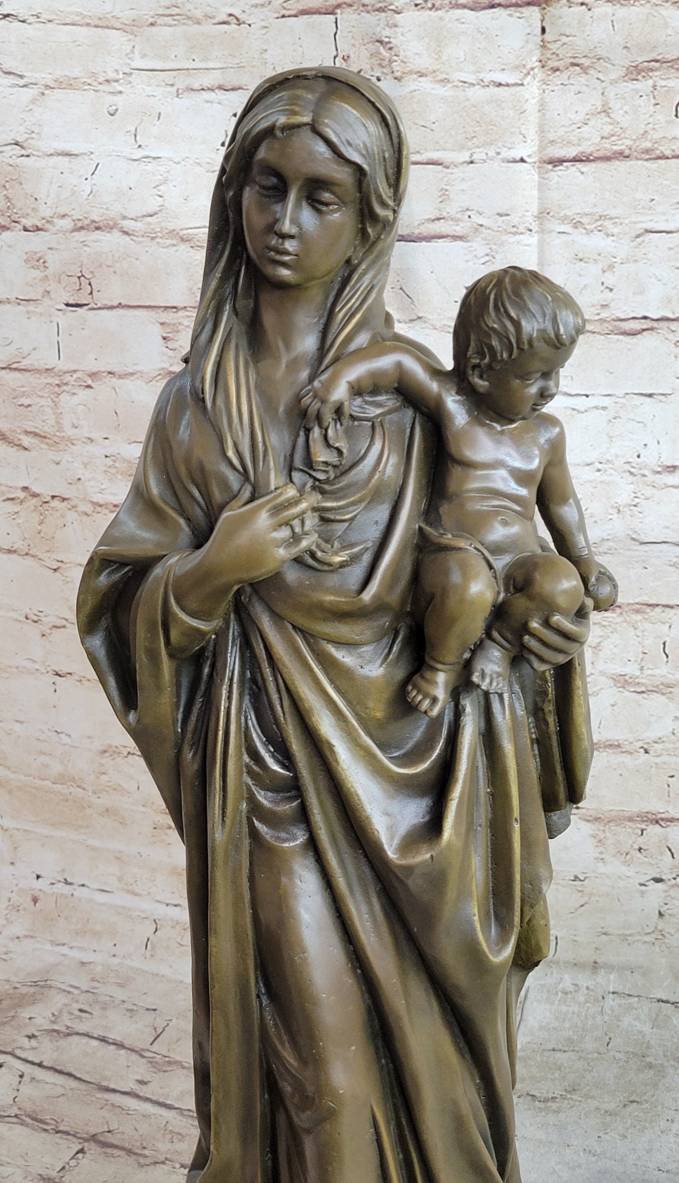 Madonna Virgin Mary w/ Baby Jesus Bronze Statue Sculpture Figure 23" x 8"
