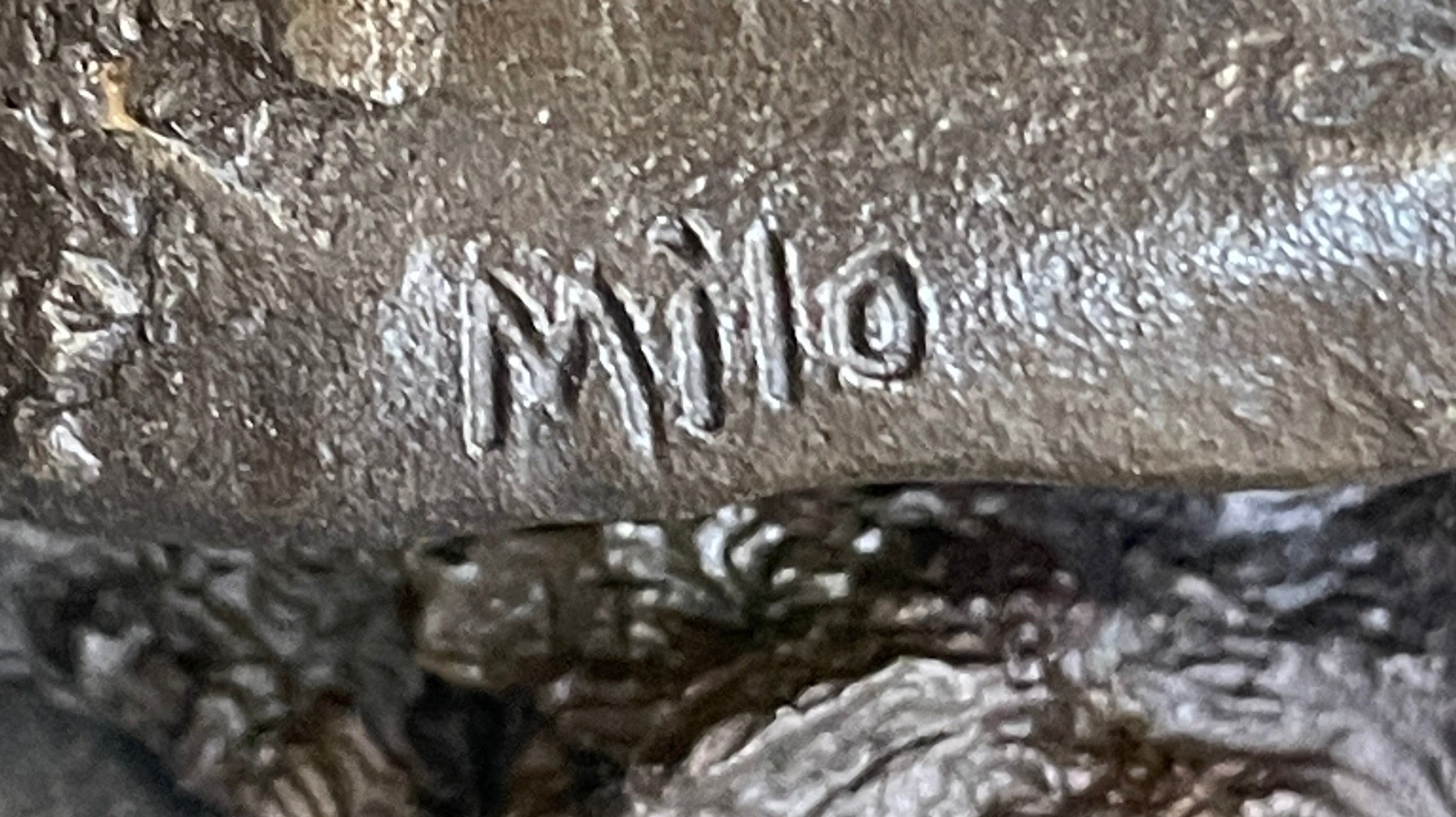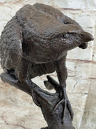 Crafted using the ancient lost-wax casting method, this 100% bronze sculpture is a testament to both artistic tradition and conservation. The brown patina finish adds depth and character to the artwork, while the black marble base provides a stable and elegant foundation. Signed by the artist Milo, "The Hawk's Vision" is not just a decorative piece but a symbol of strength, vision, and spiritual awakening, making it a meaningful addition to any art collection or space.Bronze Dimensions with Marble Base: Height 12" X Width 12"