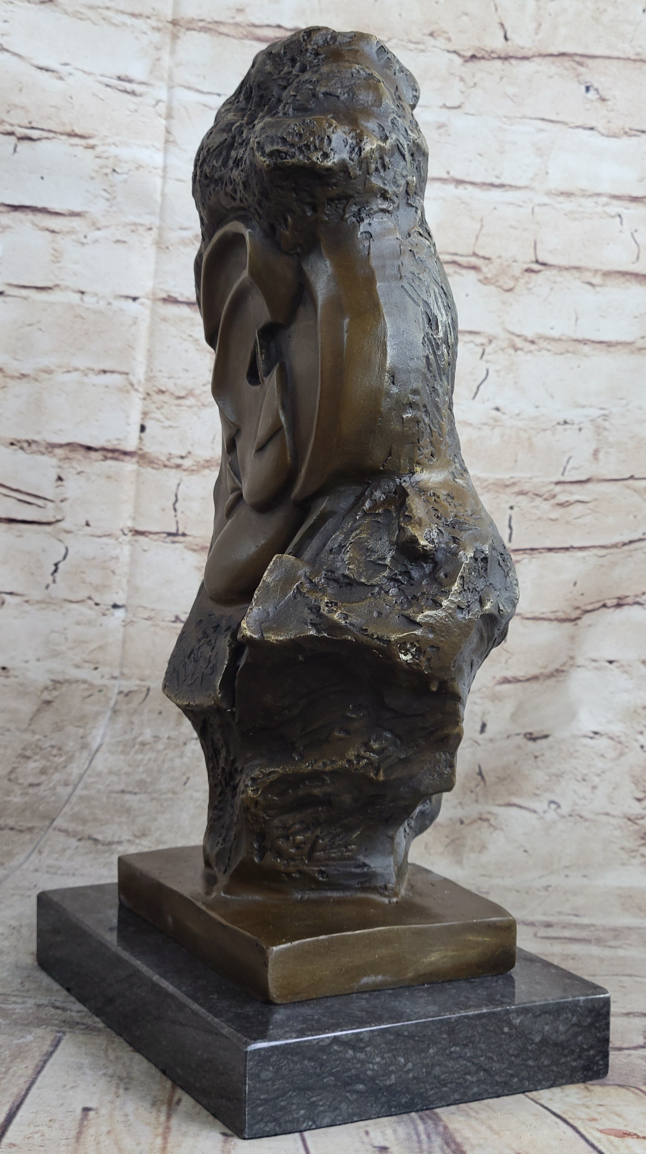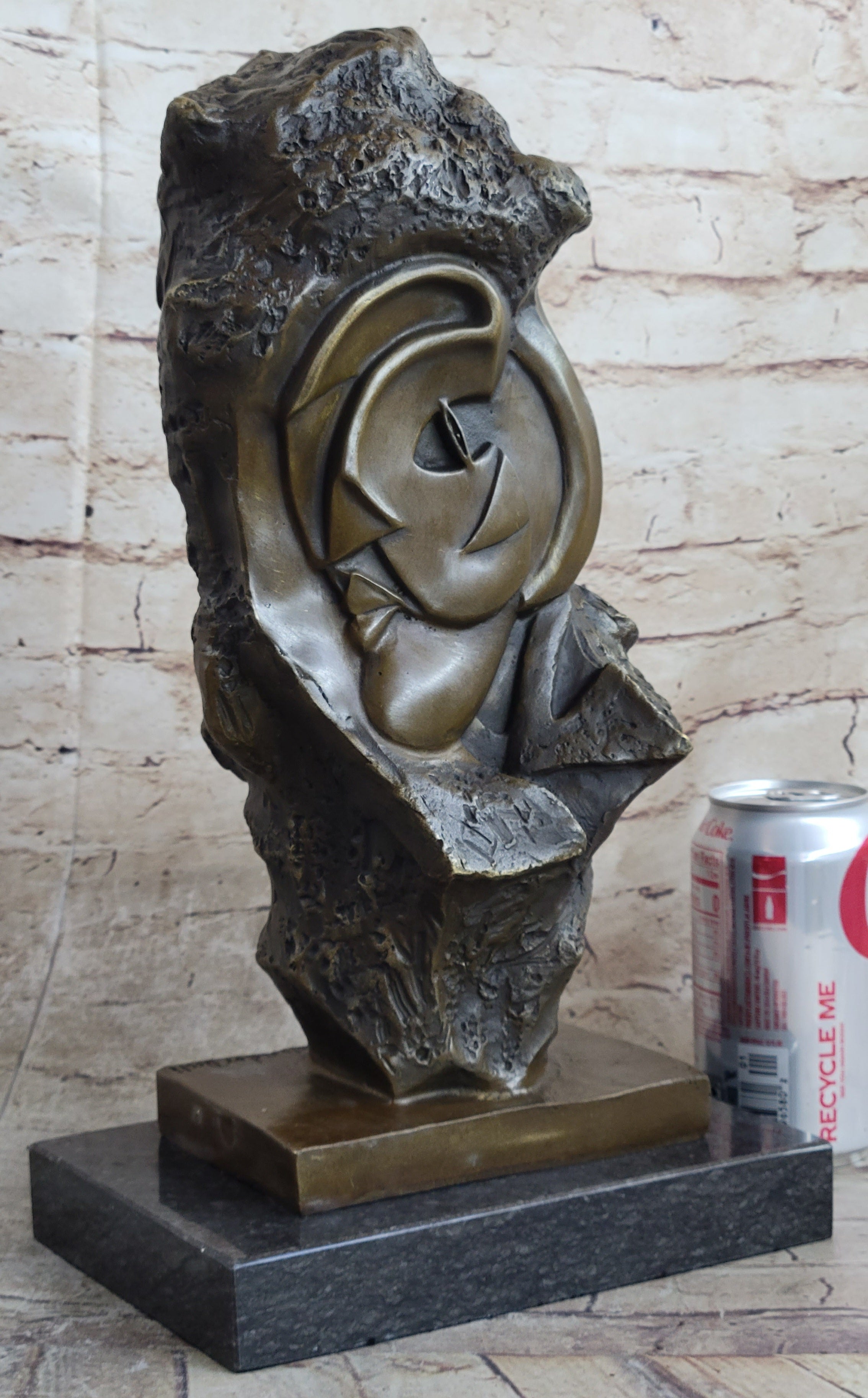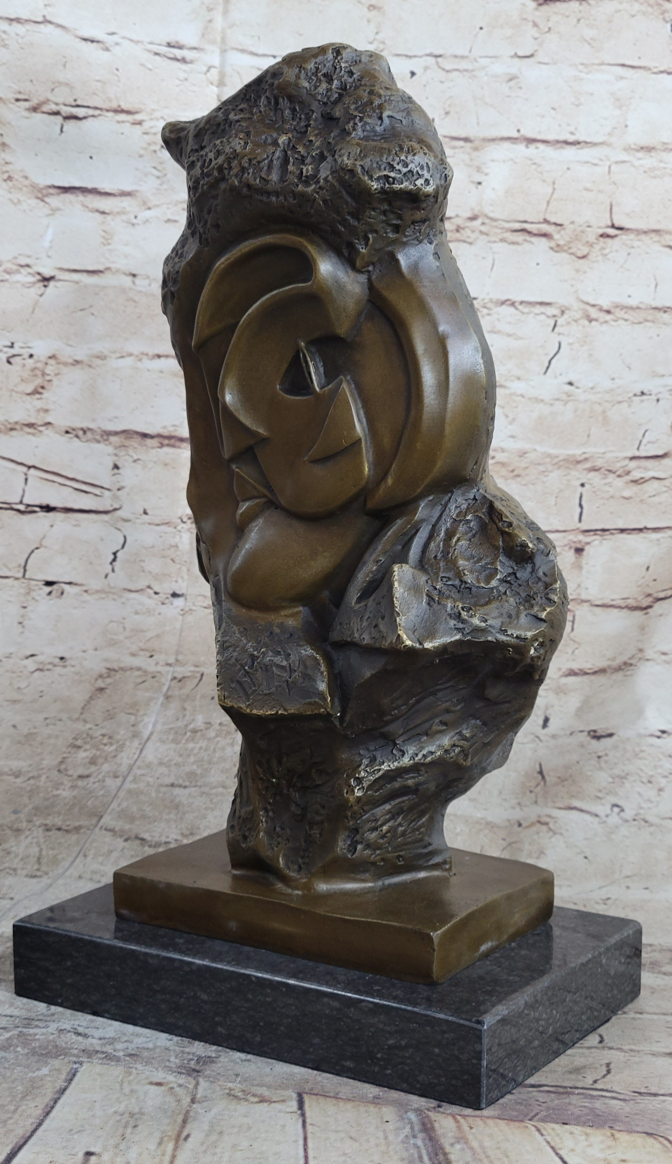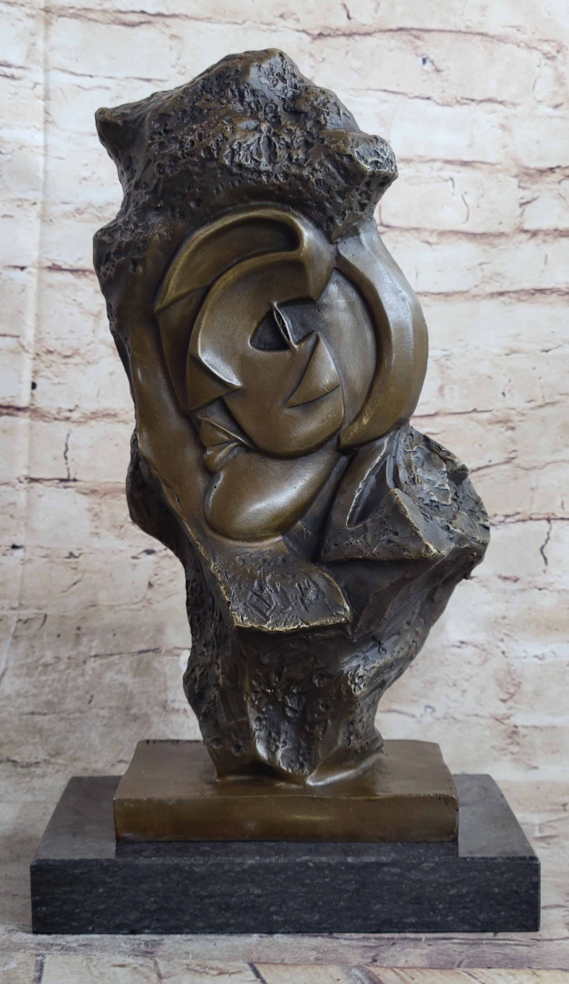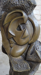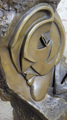Handmade Abstract Bronze Face Sculpture Marble Base Modern Cubism Home Statue