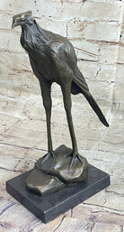 Presenting a Signed Bronze Sculpture: This remarkable piece by the renowned artist Rembrandt Bugatti showcases the majestic Secretary Bird in all its glory. With its distinctive crane-like legs and impressive wingspan, the sculpture captures the bird's realistic features with unparalleled precision. Crafted using the intricate "Lost Wax Method," every detail from the bird's feathers to its graceful posture reflects the artist's mastery and dedication to excellence.