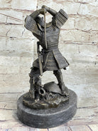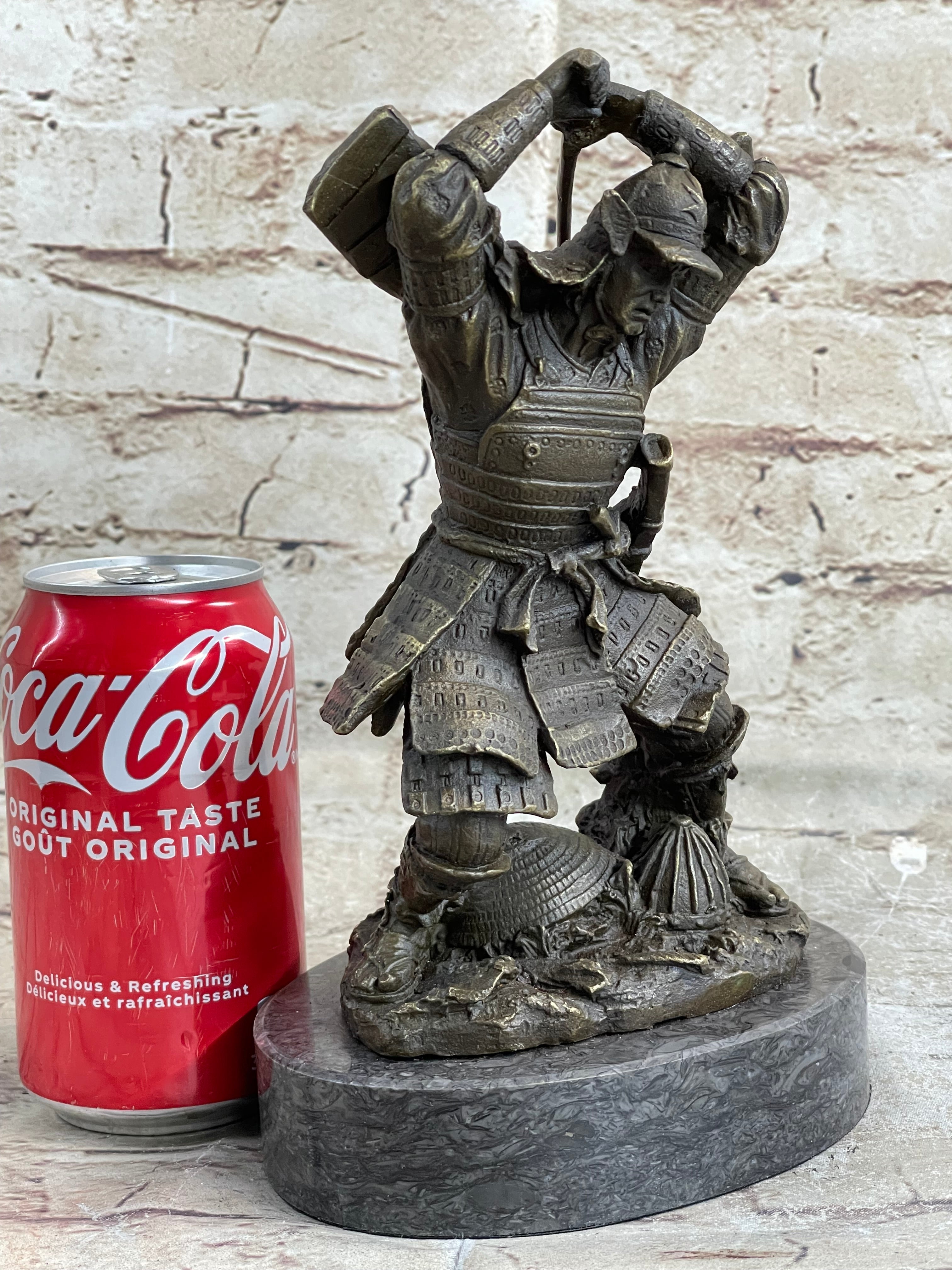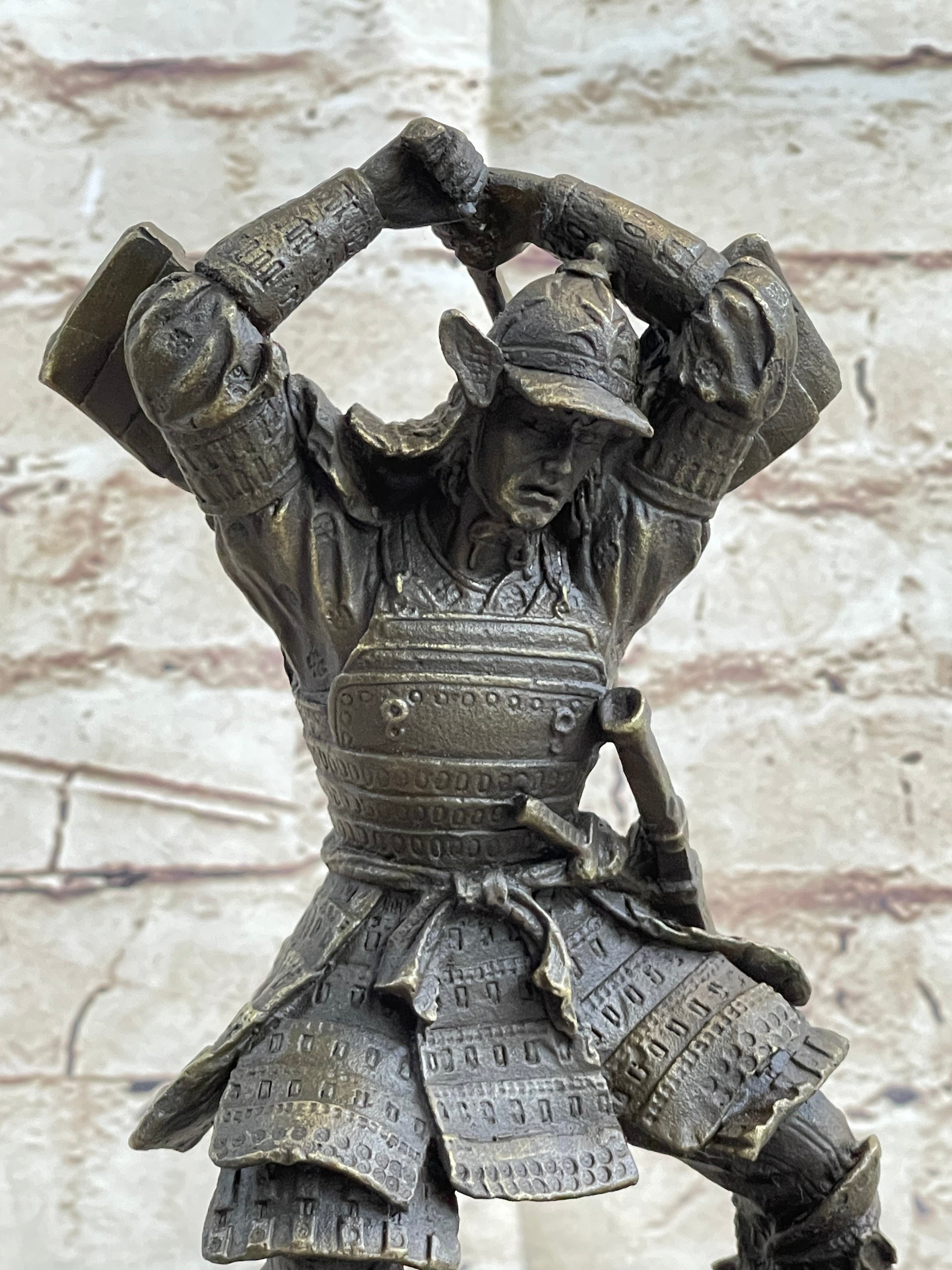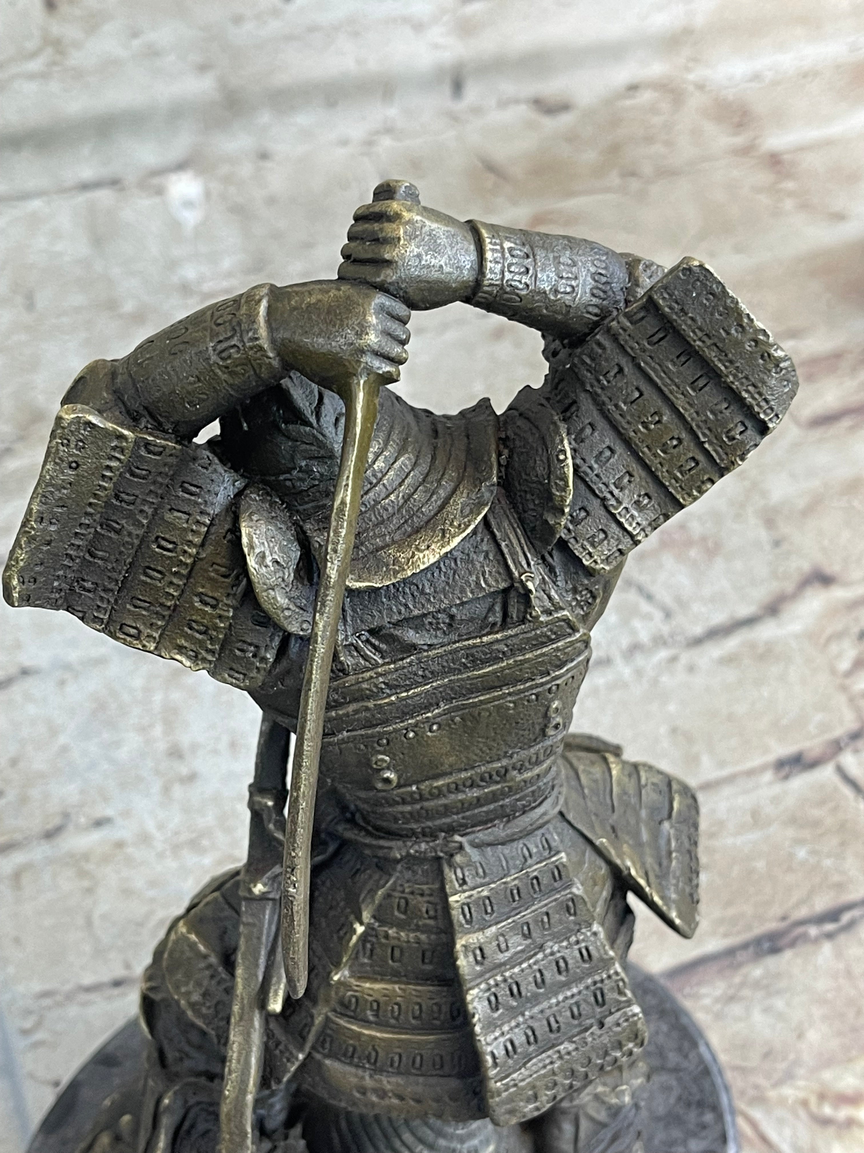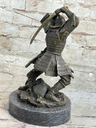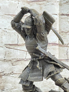 Japanese Samurai Warrior Swinging Katana Sword Bronze Statue Sculpture Figure Kamiko 10" x 6"