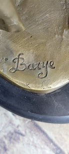 Using the ancient lost-wax casting method, the artist skillfully crafted this exquisite sculpture, ensuring that every detail reflects the breed's delicate features and refined posture. The brown patina finish adds depth and warmth to the sculpture, preserving its timeless beauty for generations to come. Mounted on a sleek black marble base, the sculpture bears the distinguished signature of the artist Barye. This remarkable sculpture serves as a testament to the artist's dedication to capturing the essence and character of this beloved breed, making it a valuable addition to any art collection or a cherished gift for dog enthusiasts.Bronze Dimensions with Marble Base: Height 11" X Width 12"