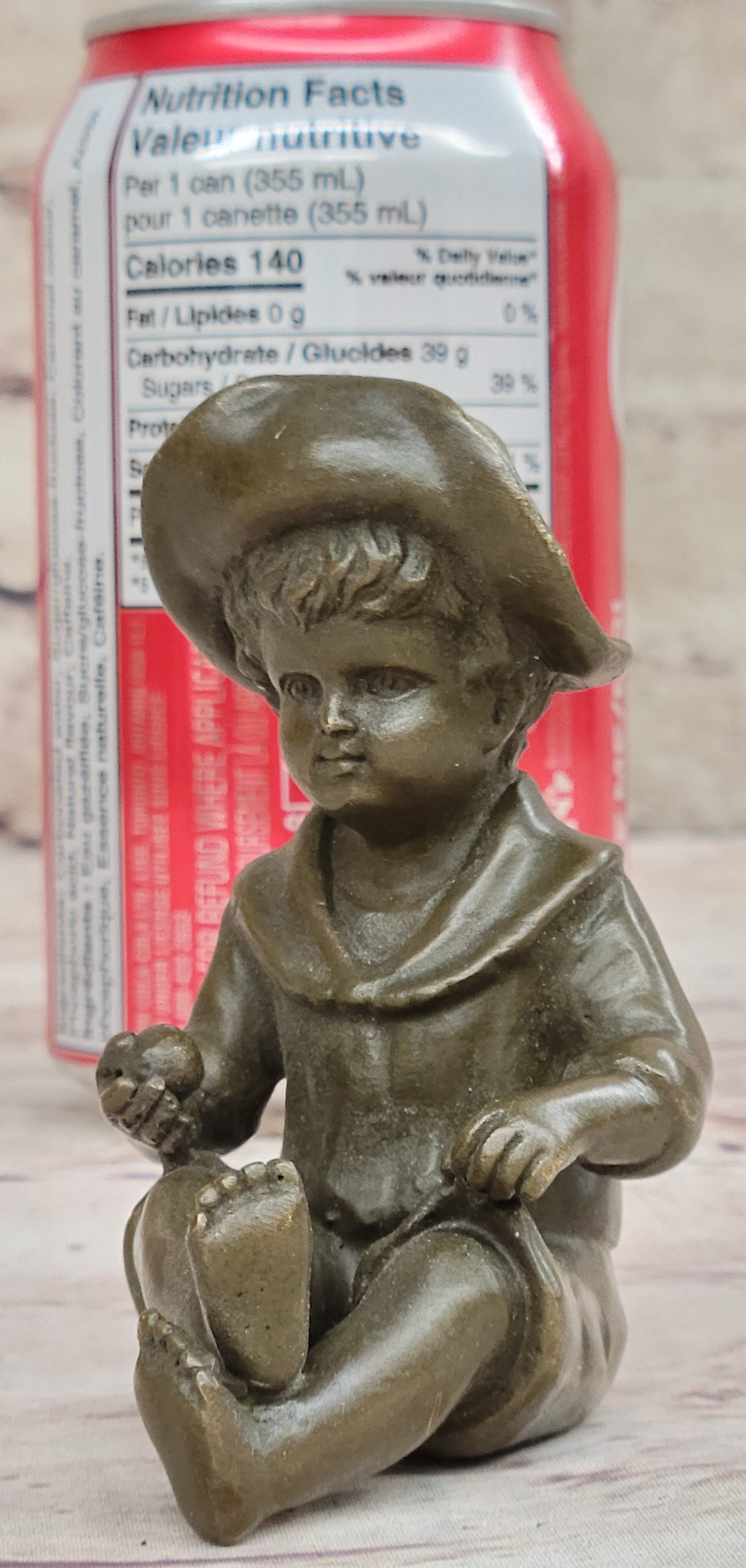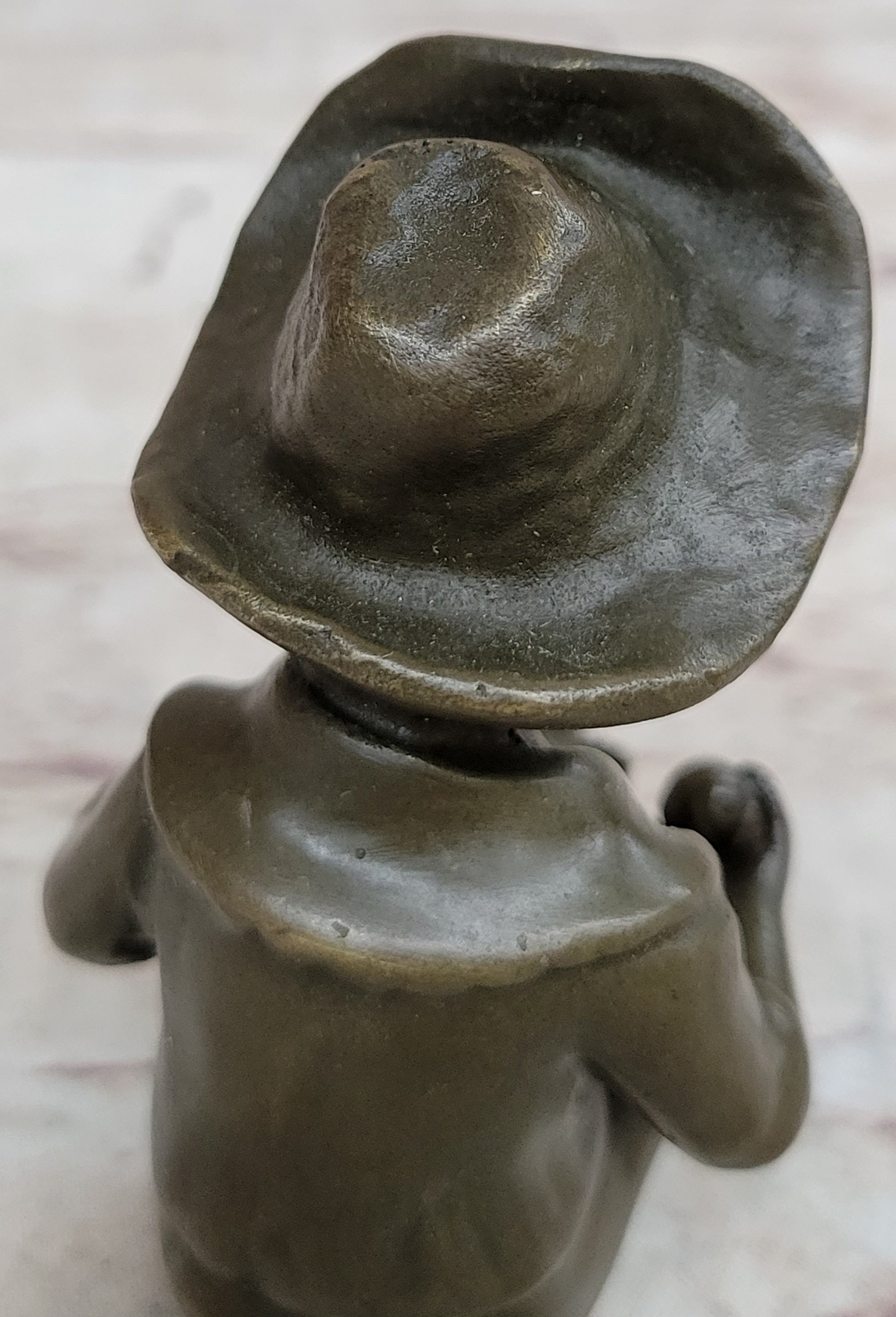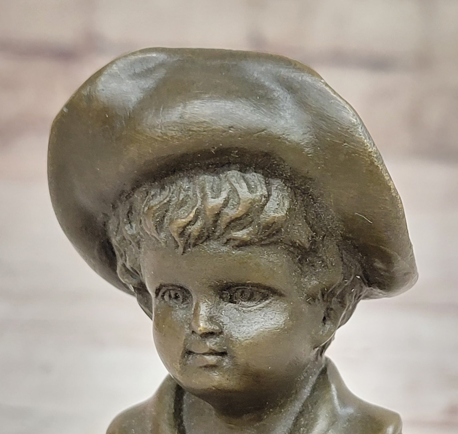 Hat Boy Bronze Statue and Sculpture Kid Figurine Handmade Artwork Statue