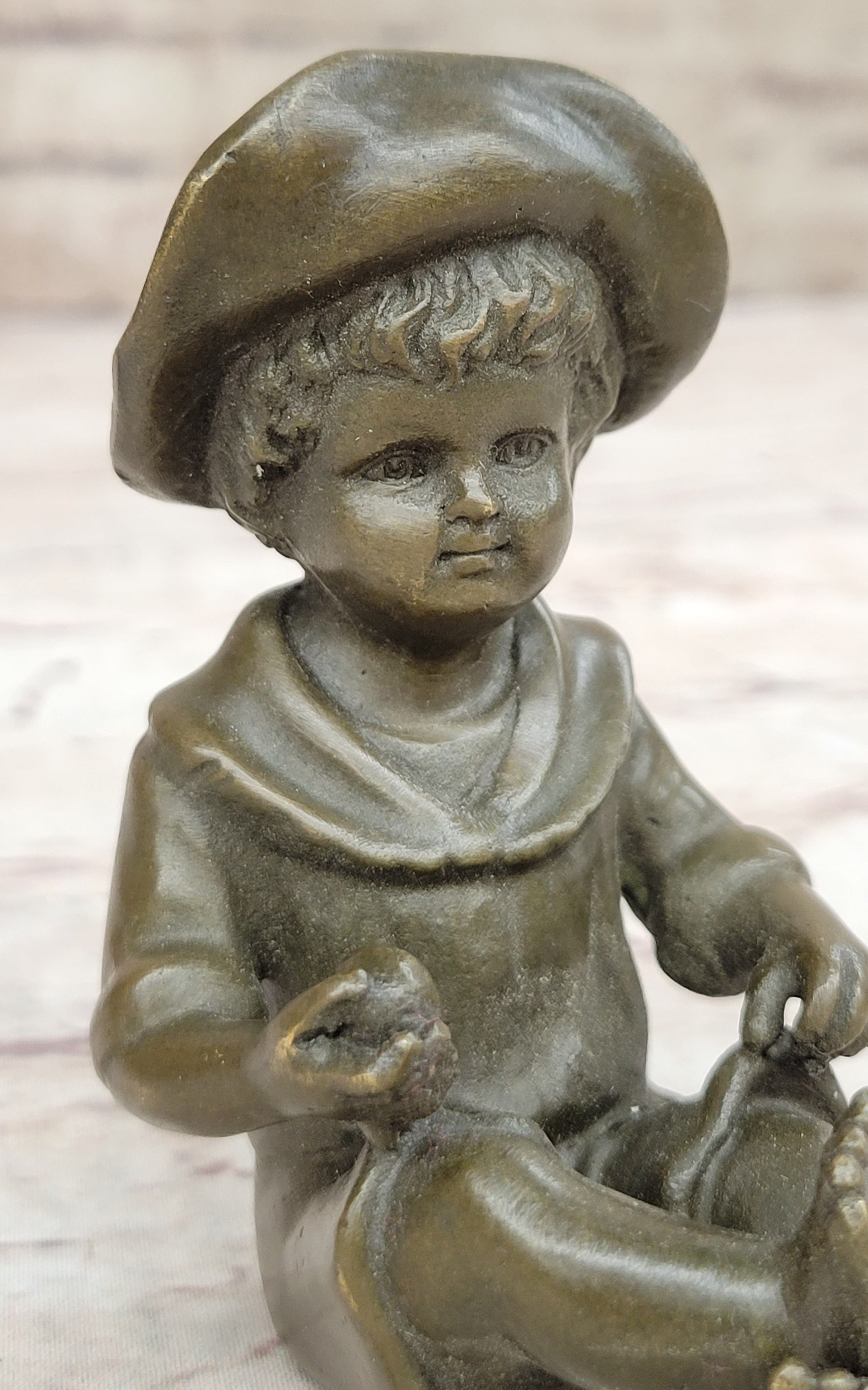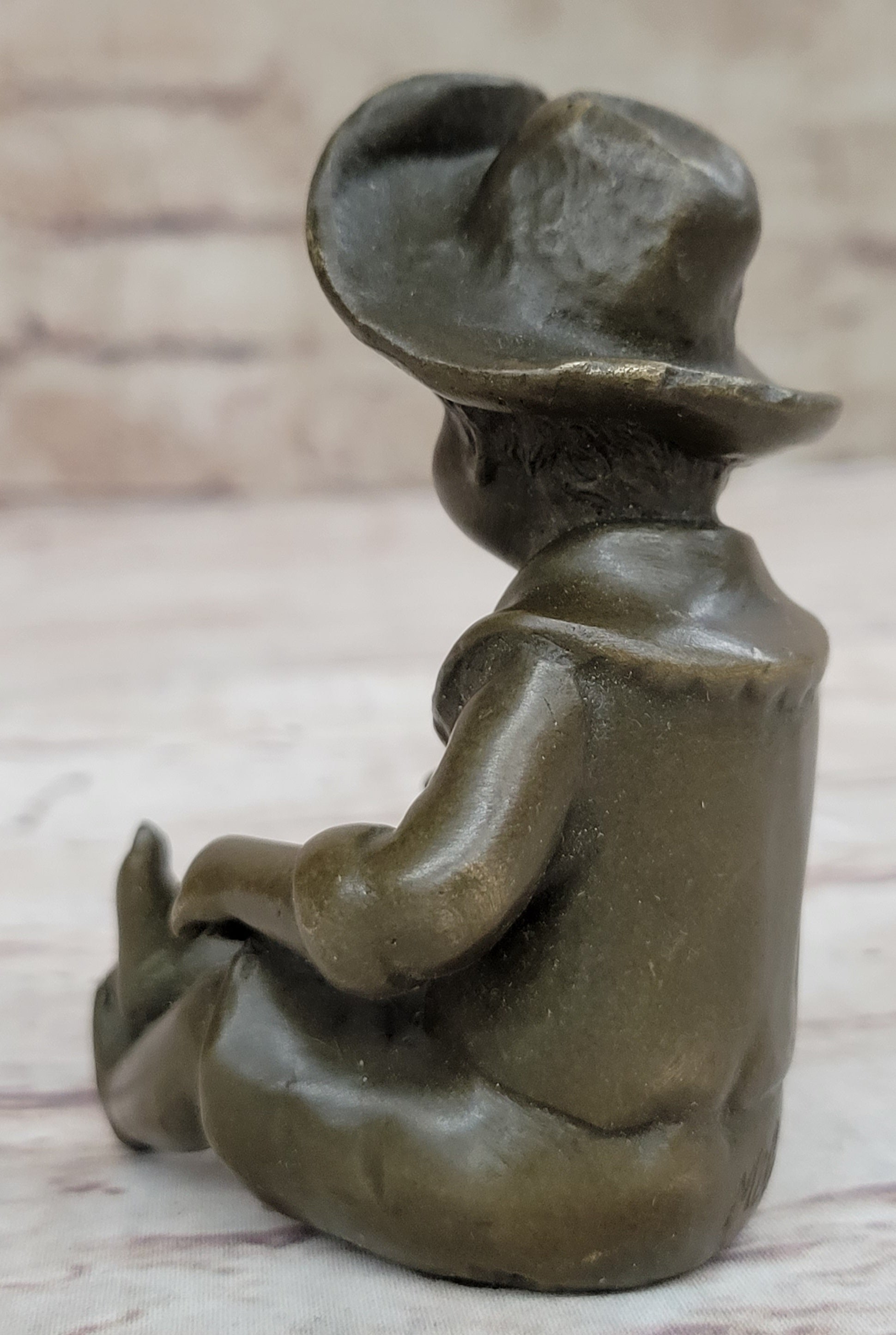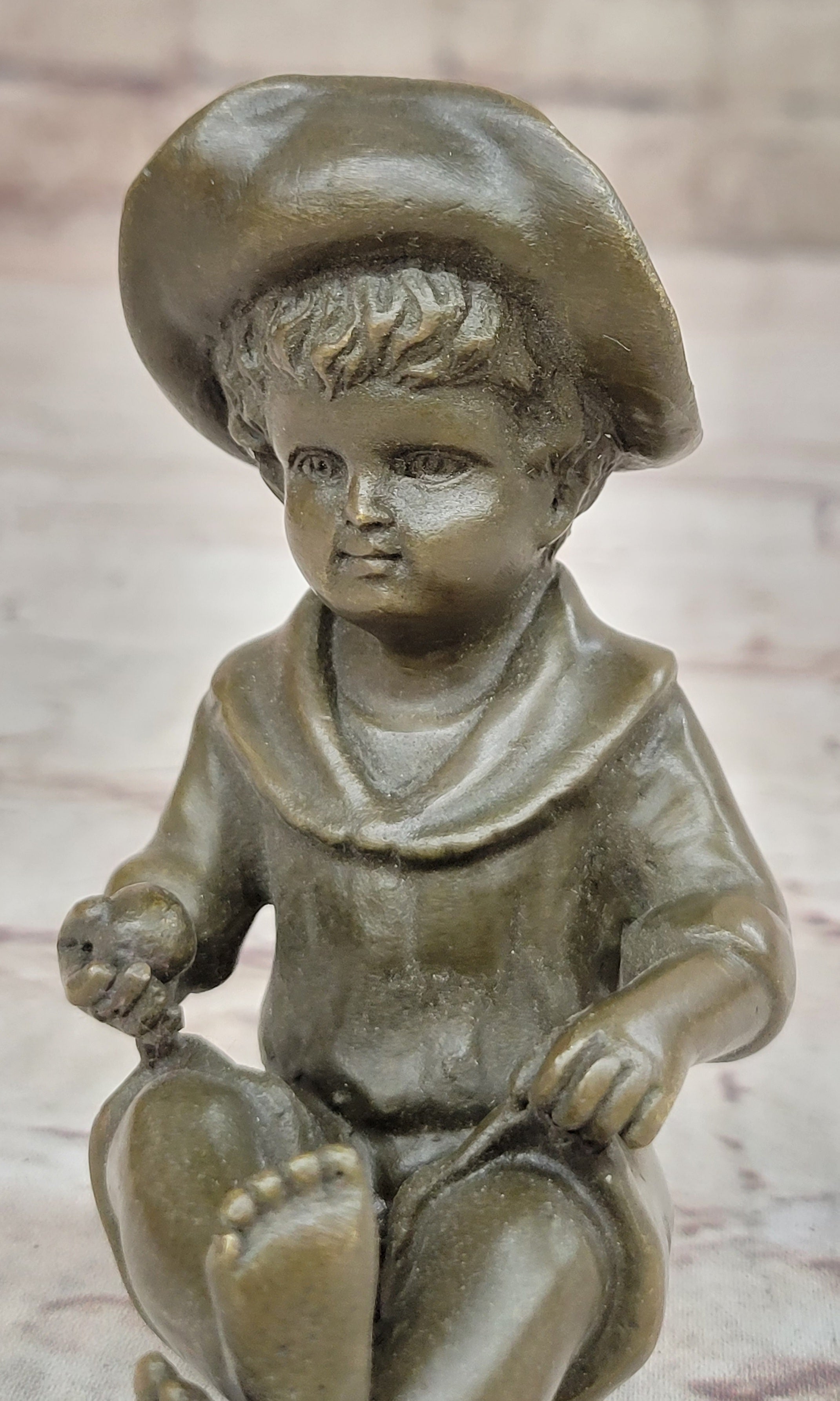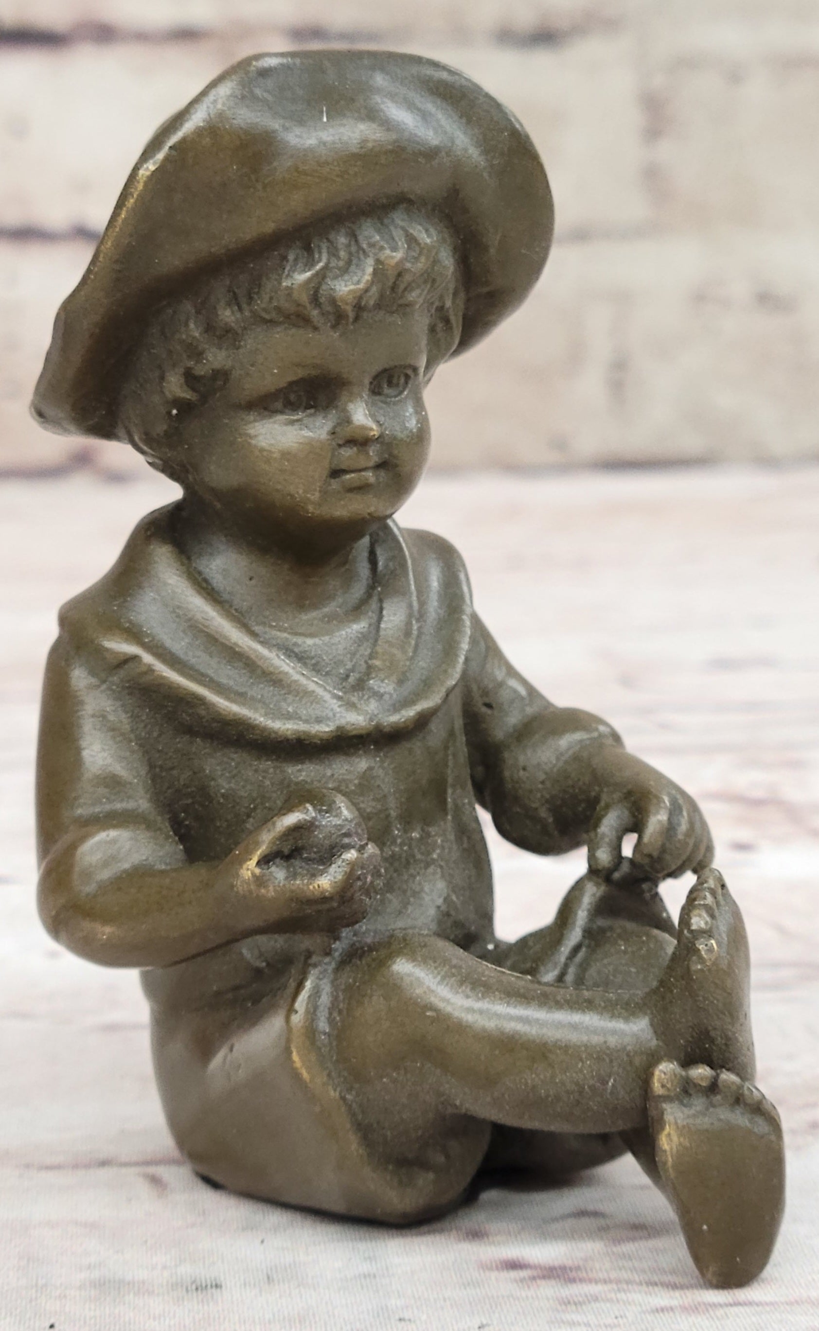 Hat Boy Bronze Statue and Sculpture Kid Figurine Handmade Artwork Statue