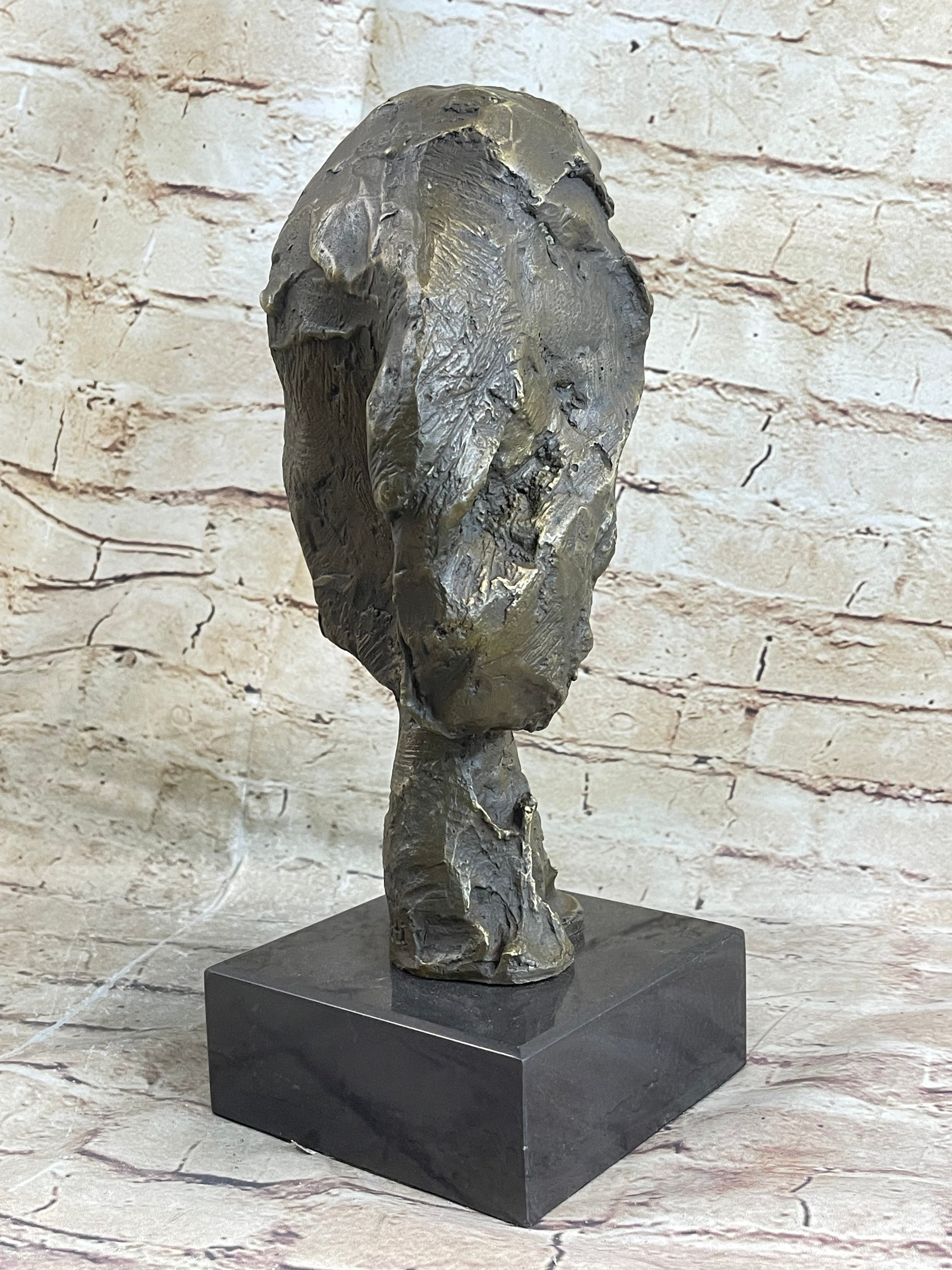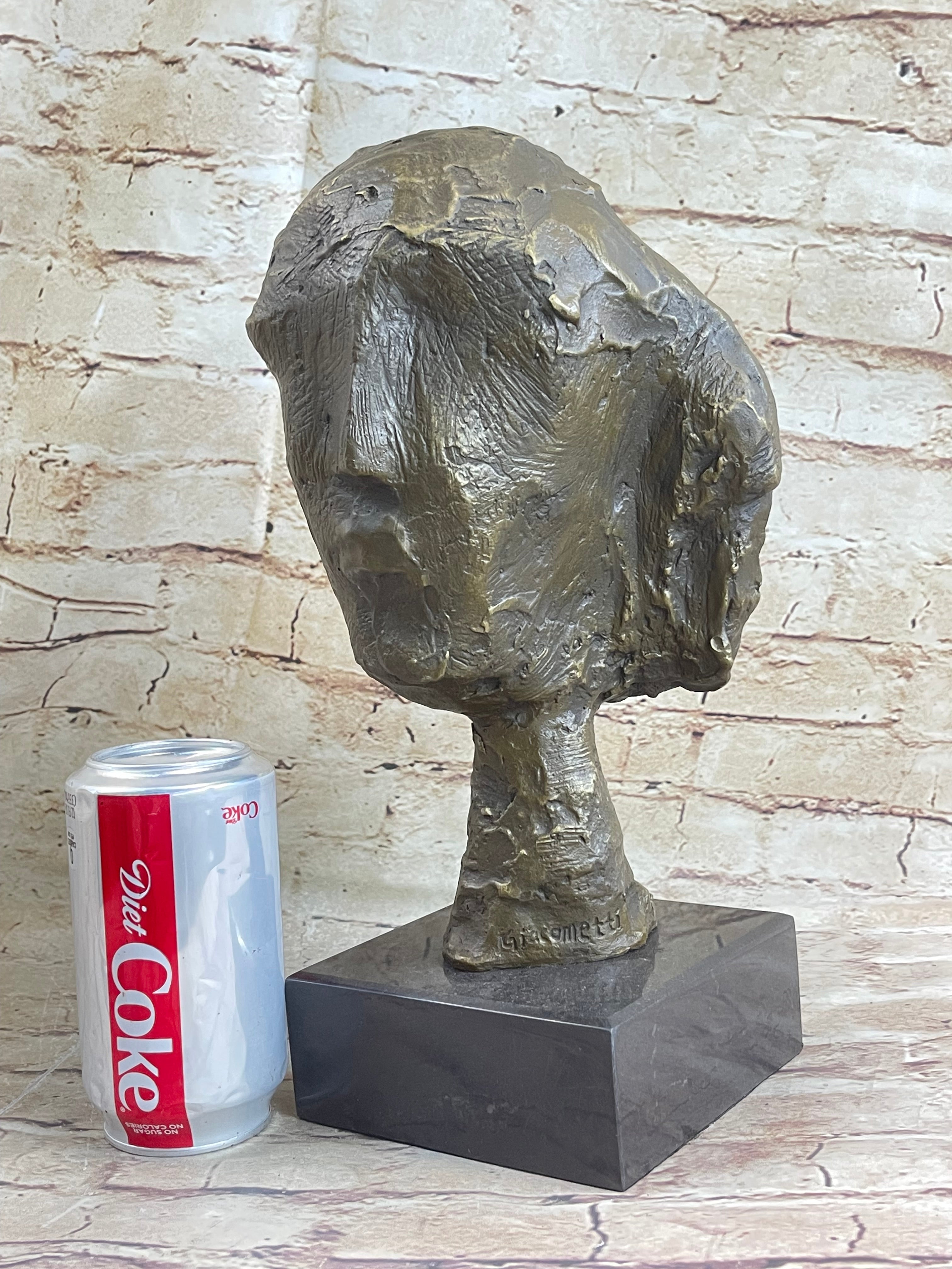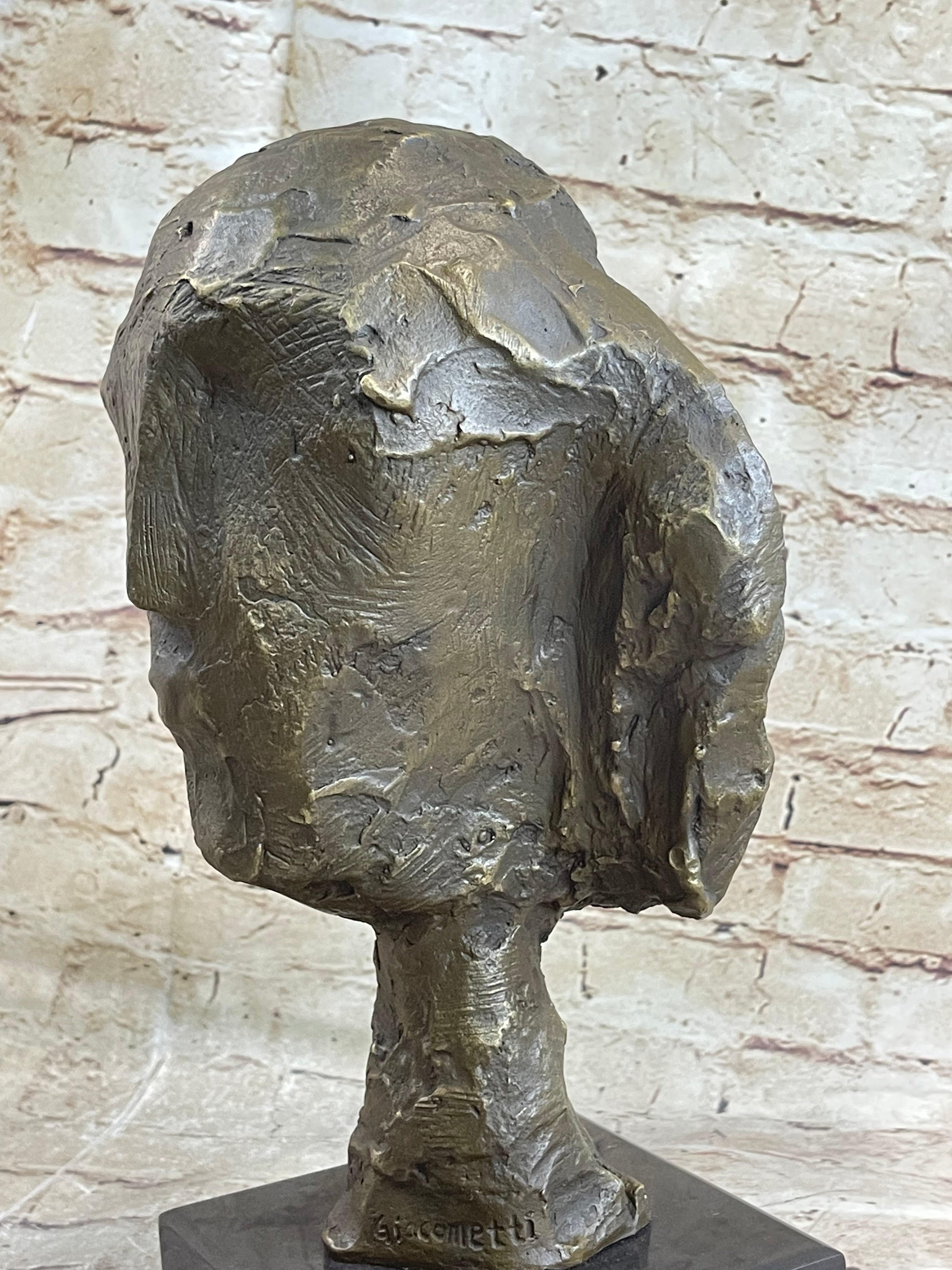 Head of a Woman by Alberto Giacometti Bronze Sculpture Statue on Marble Base
