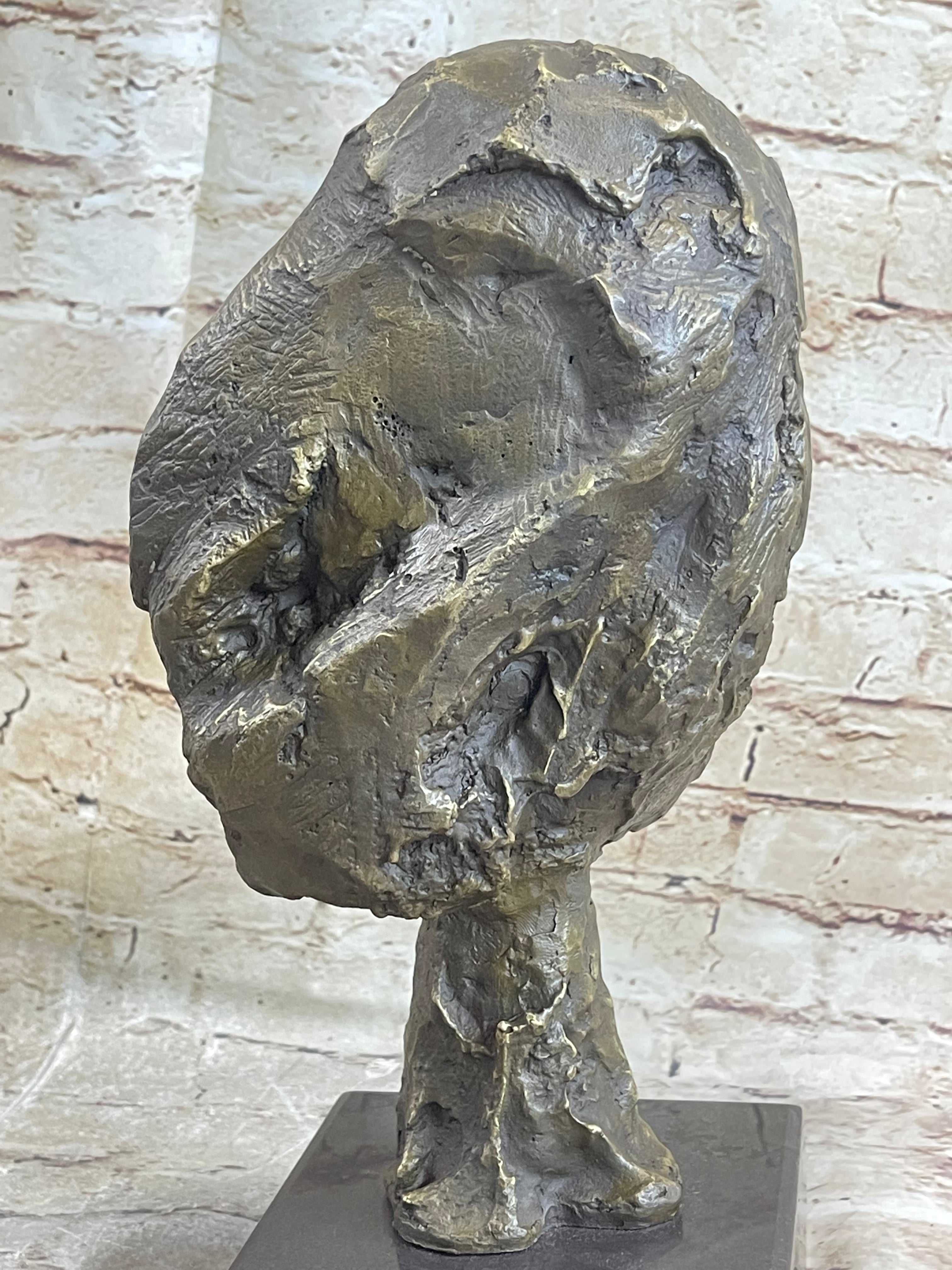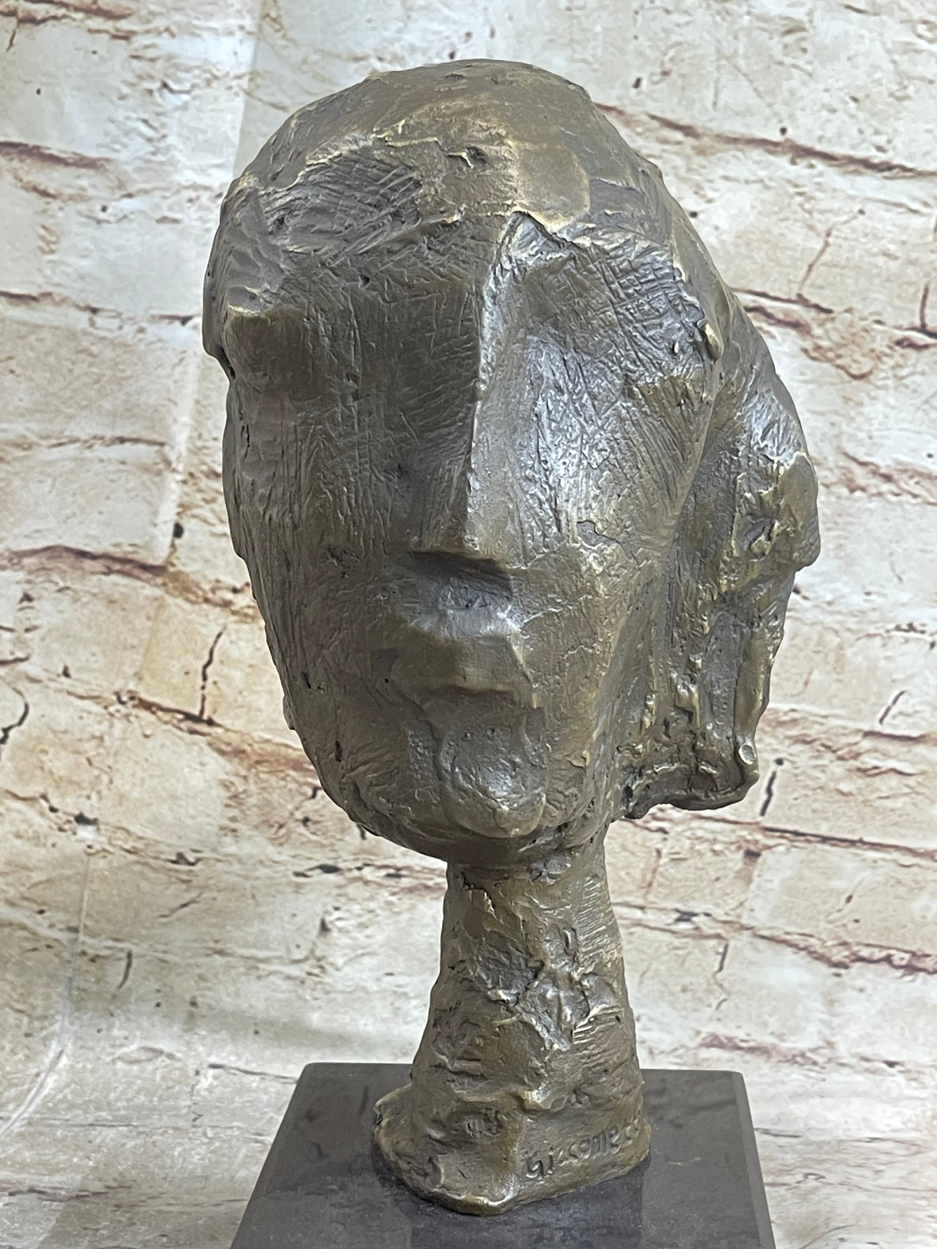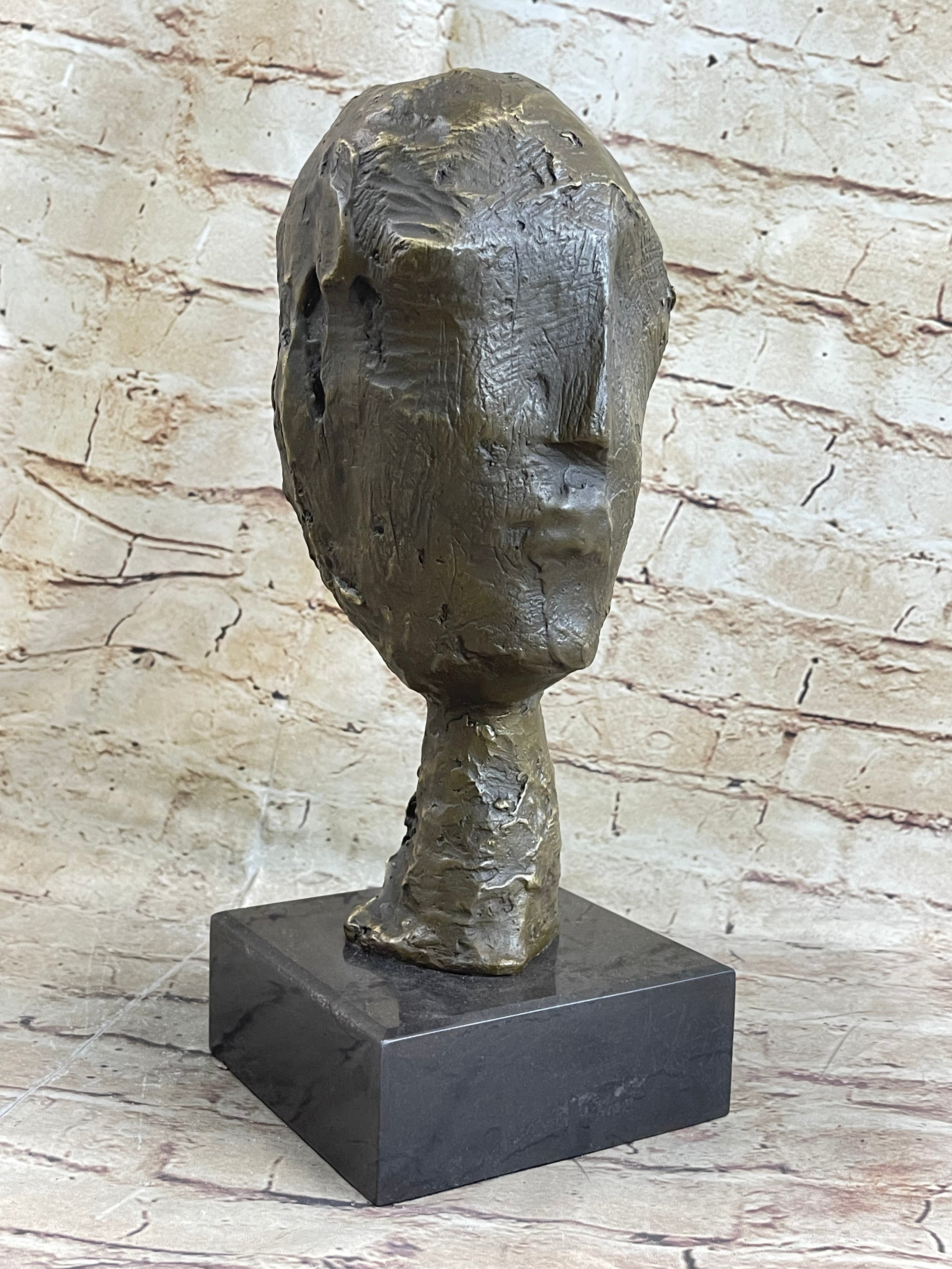 Head of a Woman by Alberto Giacometti Bronze Sculpture Statue on Marble Base