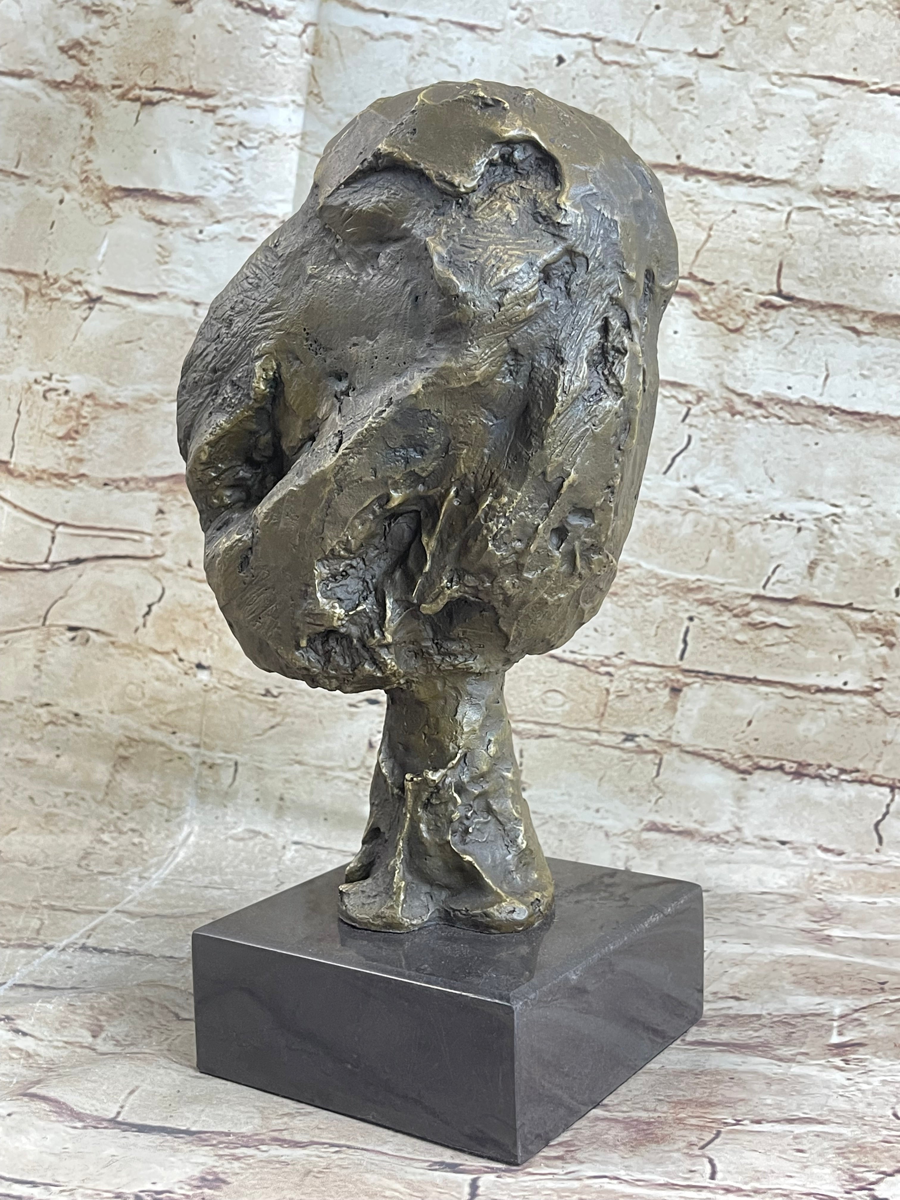 Discover the enigmatic allure of the "Abstract Bronze Head," a captivating sculpture that embodies the essence of abstract artistry. Crafted with a unique and asymmetrical design, this bronze head showcases an unconventional interpretation of facial features. The mouth, nose, and eyes are presented in a reversed and distorted manner, exuding a distinct human character and vitality that both fascinates and intrigues. The compact rear part of the sculpture adds to its dynamic presence, capturing a sense of movement frozen in time.