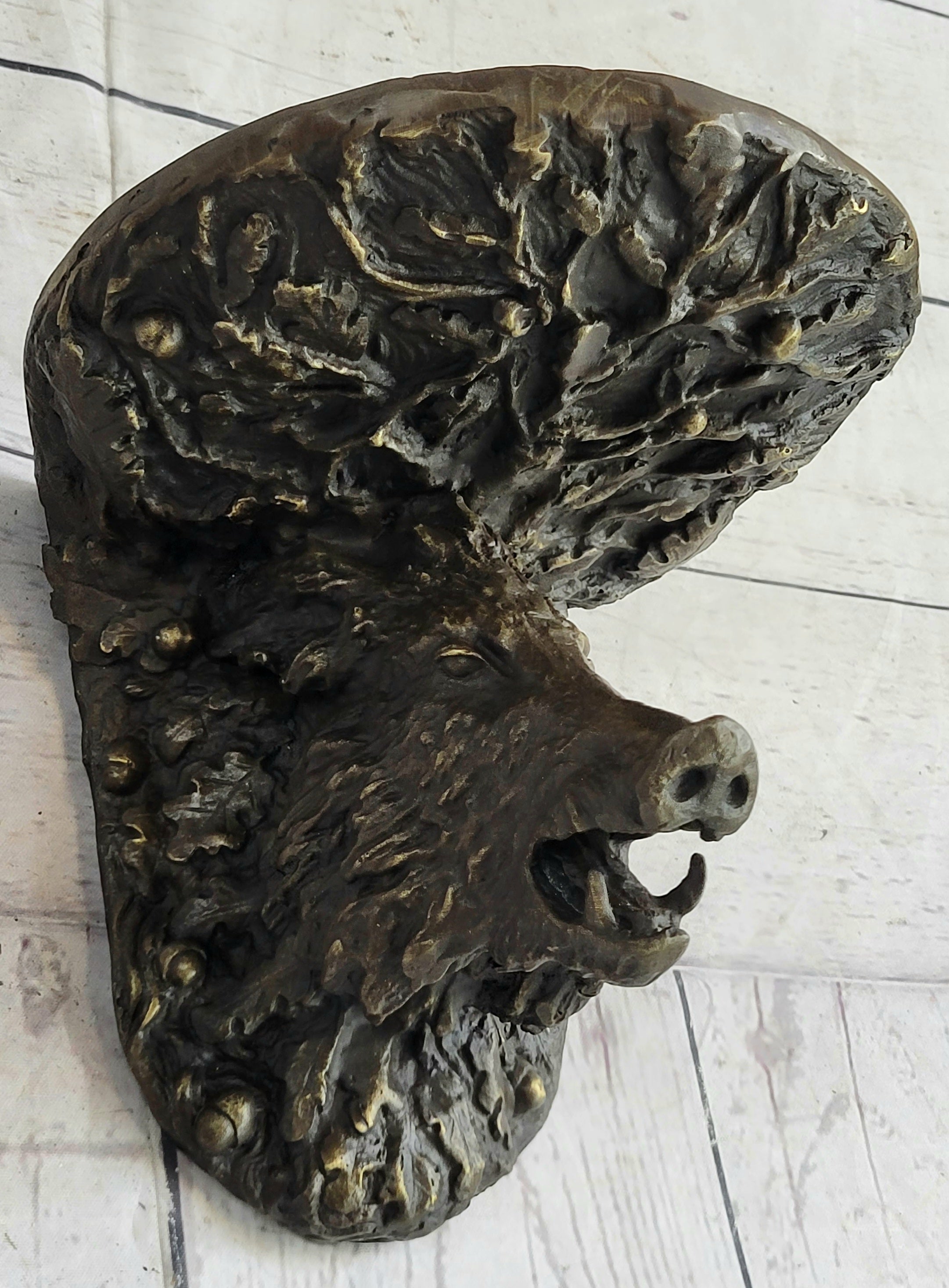 Heavy Solid Cast Bronze Wall Brackets Sconces Shelf Boars Acorns Sculpture Gift