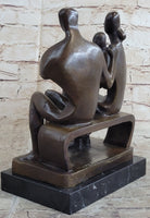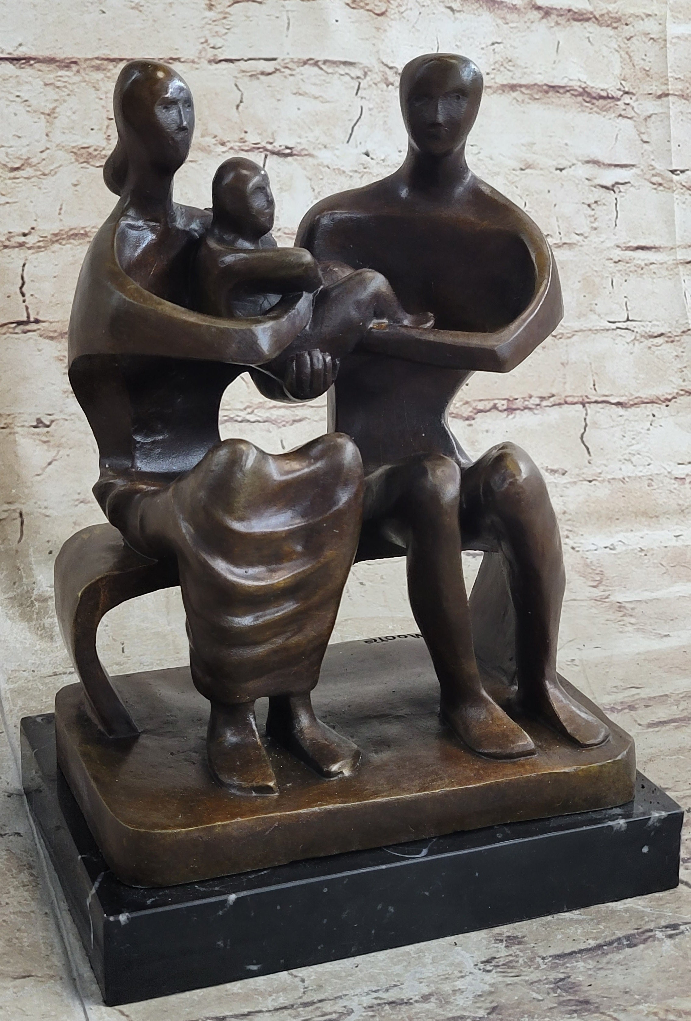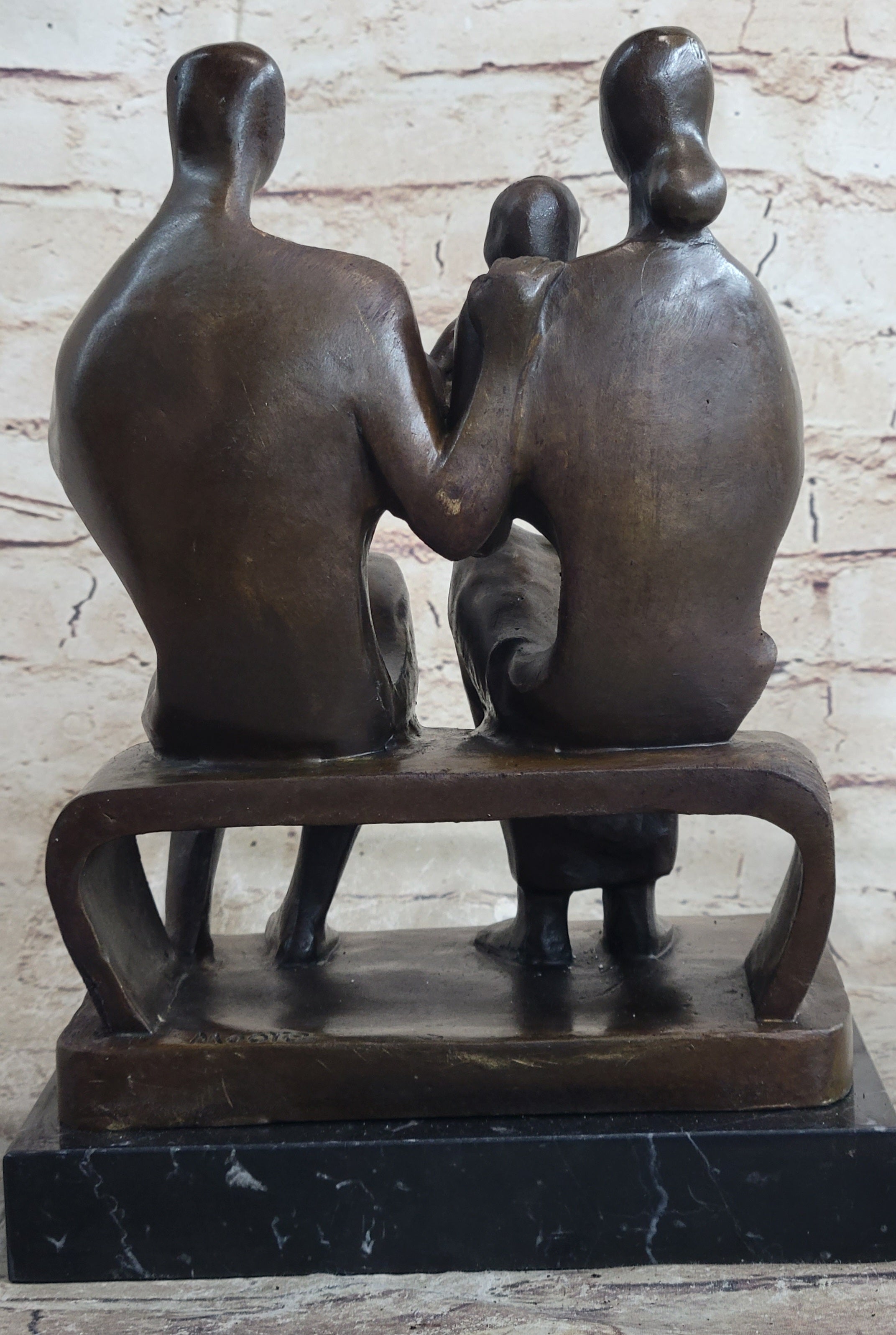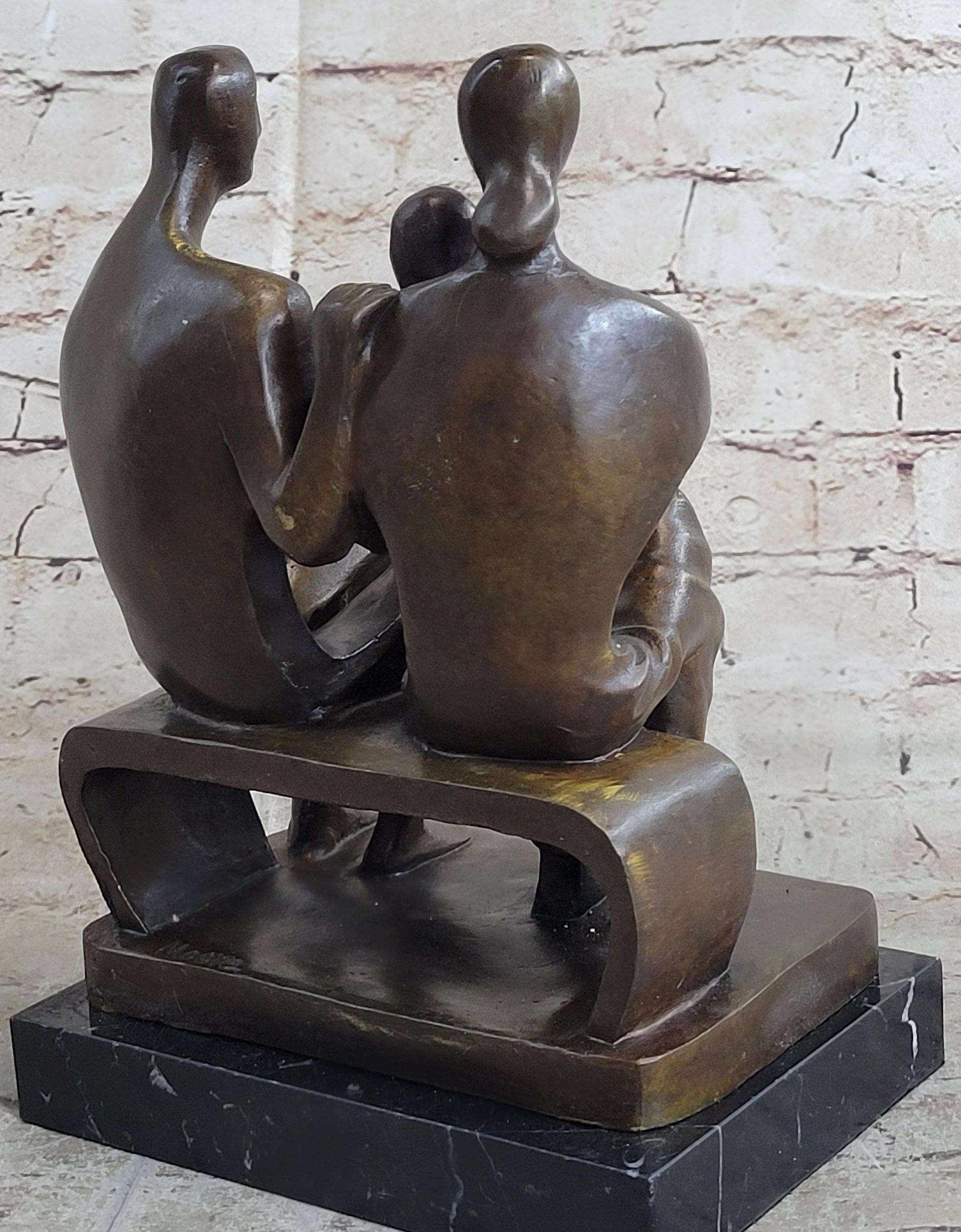 Henry Moore Family in Park Bench Bronze Sculpture Marble Base Abstract Statue NR