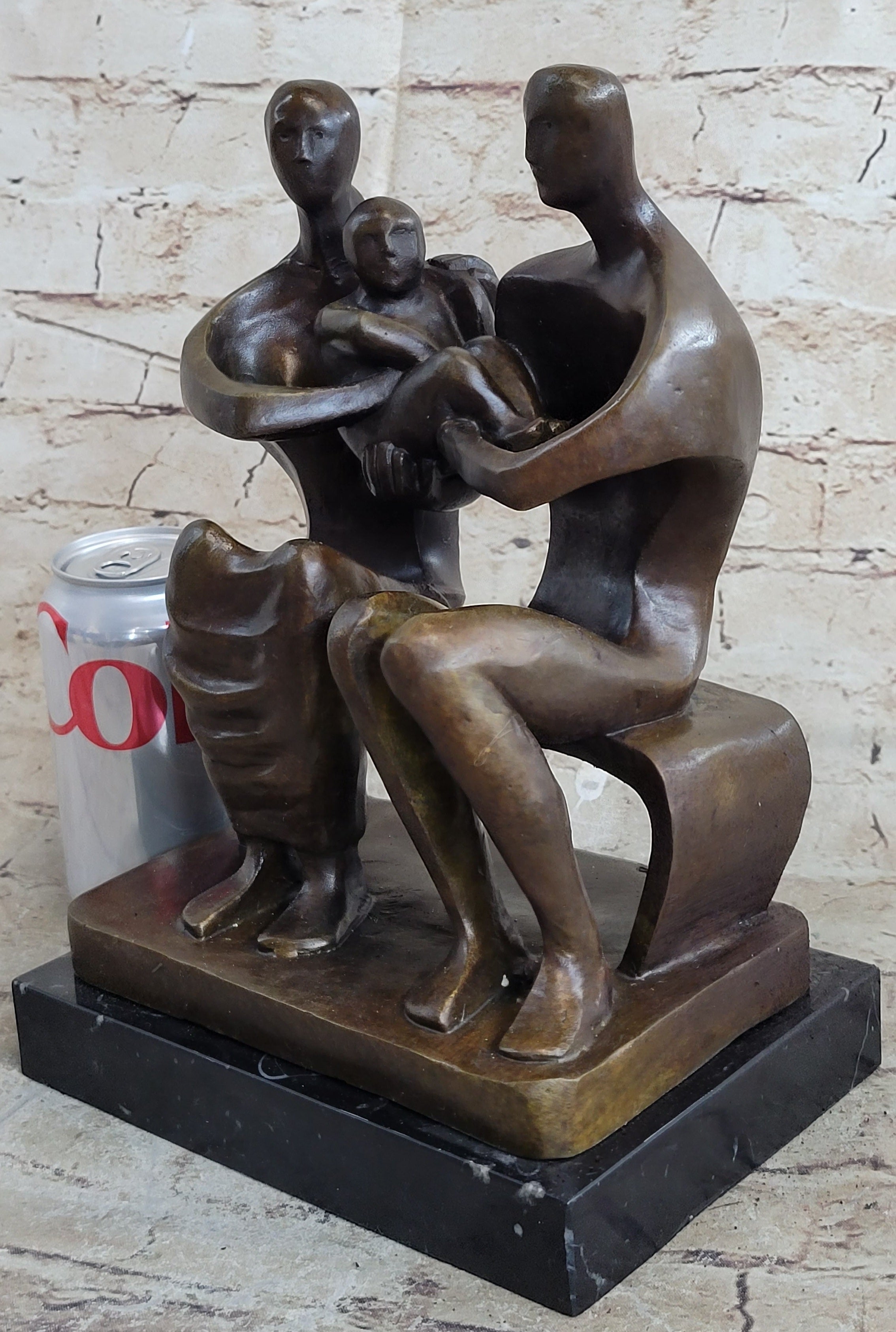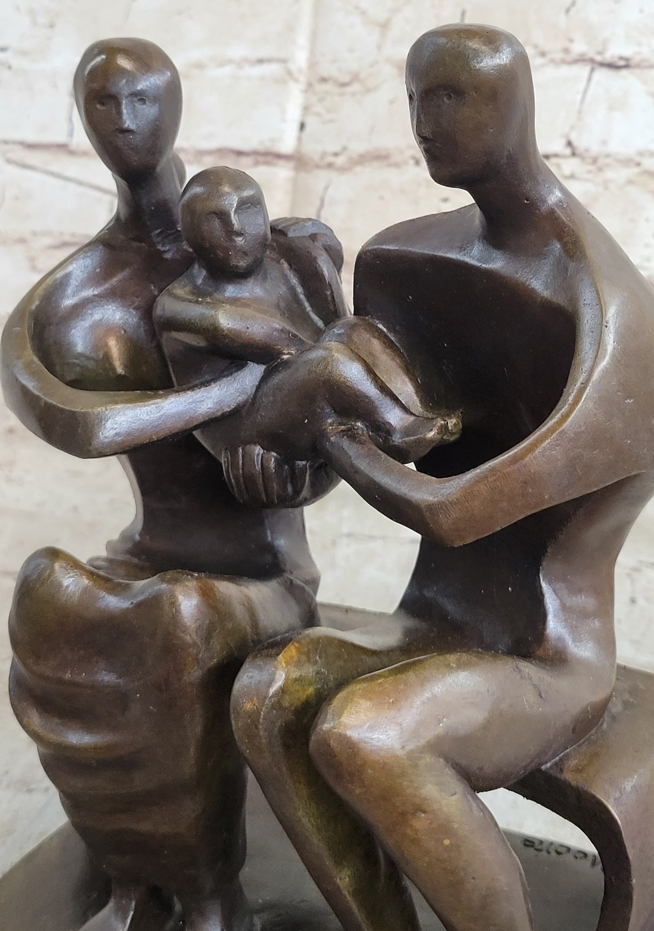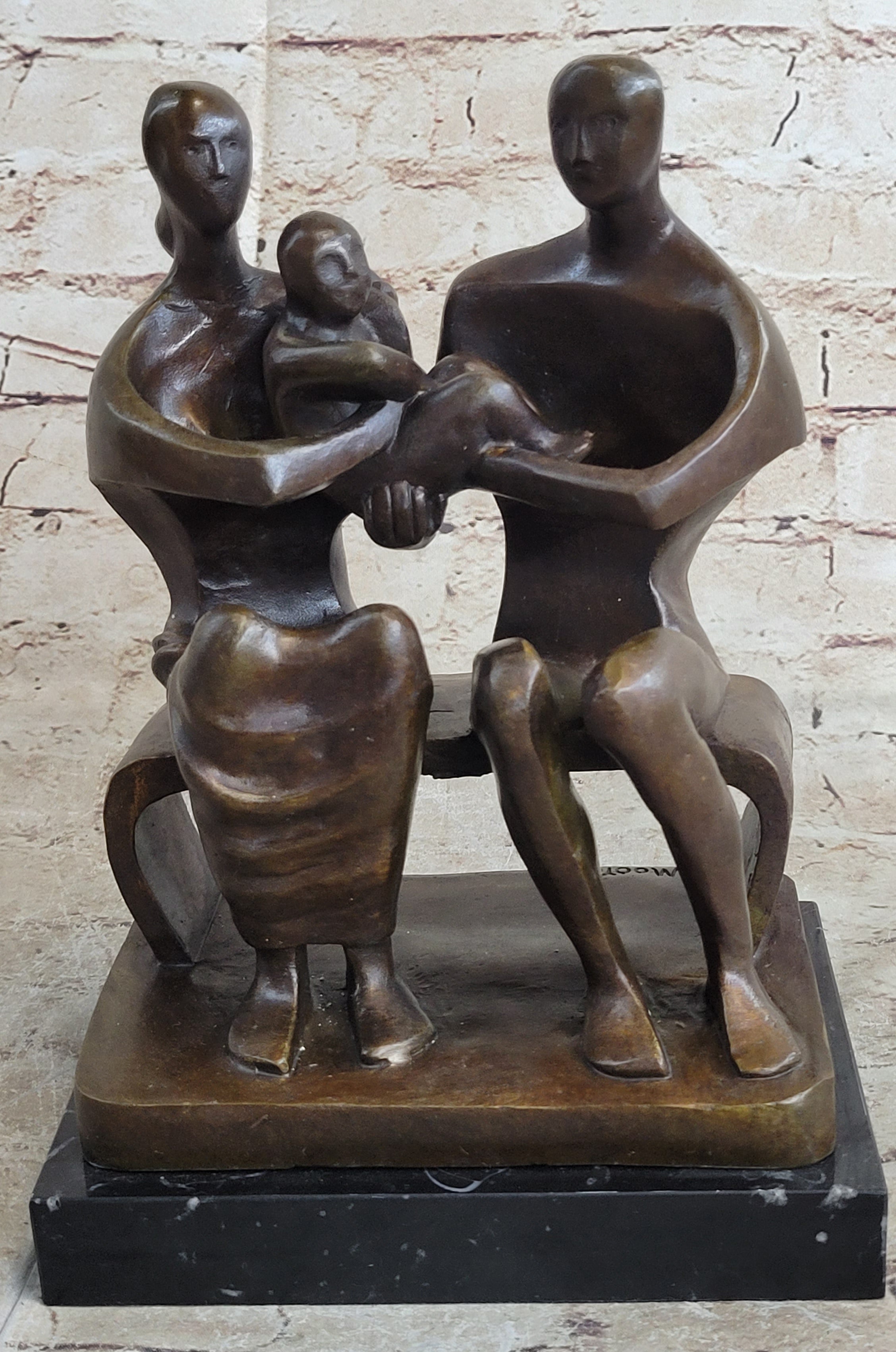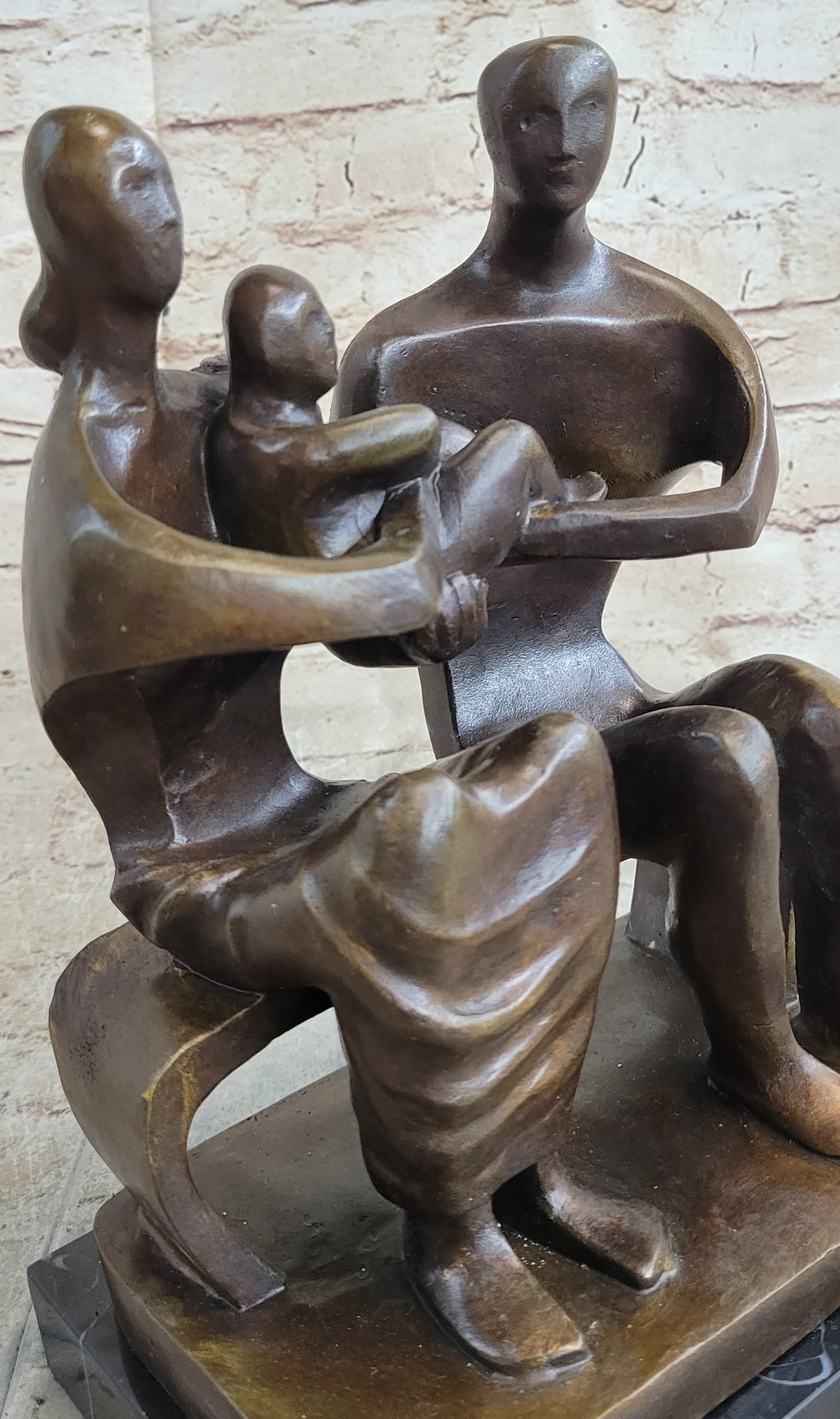 Henry Moore Family in Park Bench Bronze Sculpture Marble Base Abstract Statue NR