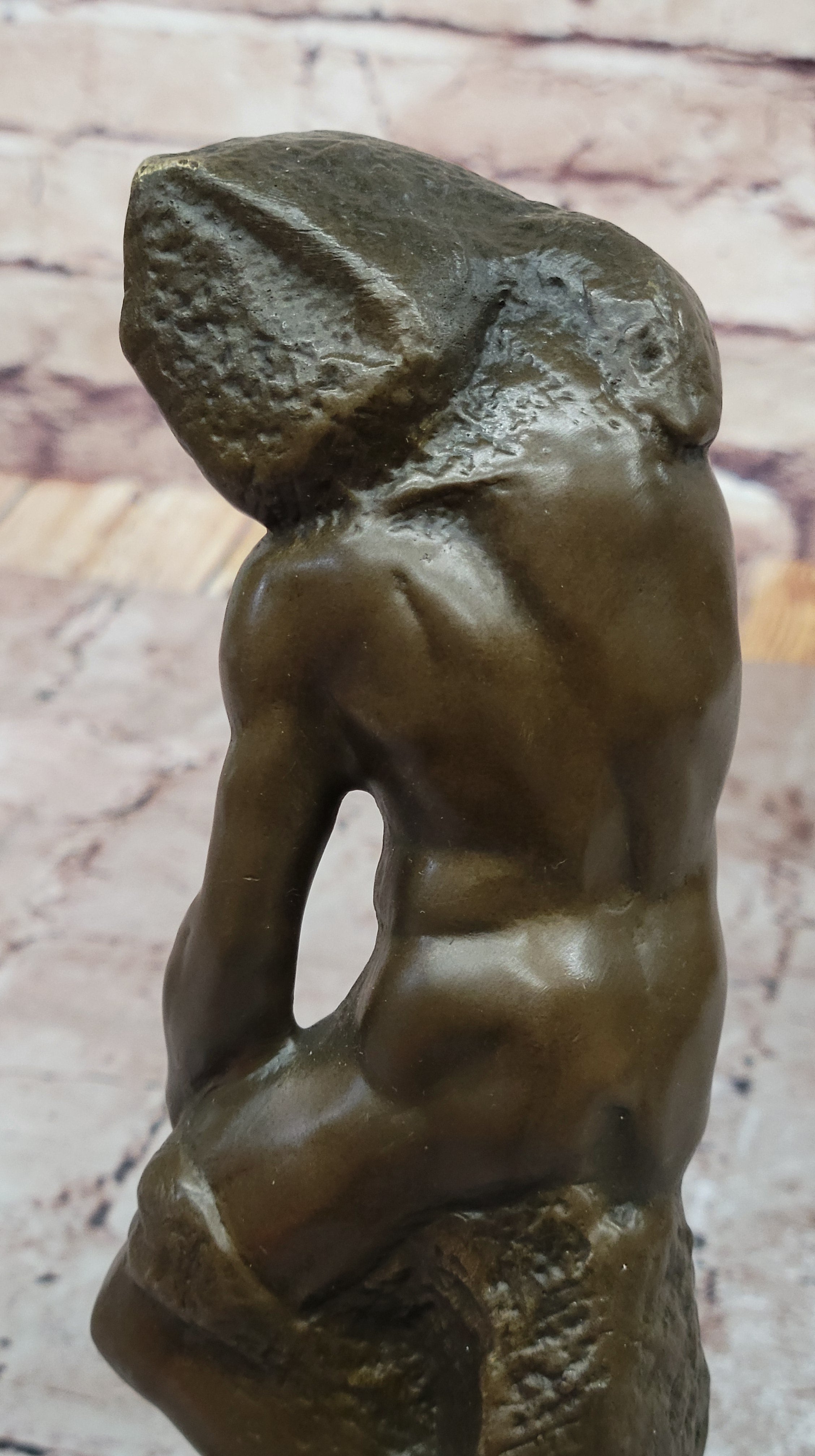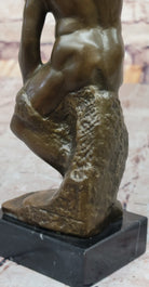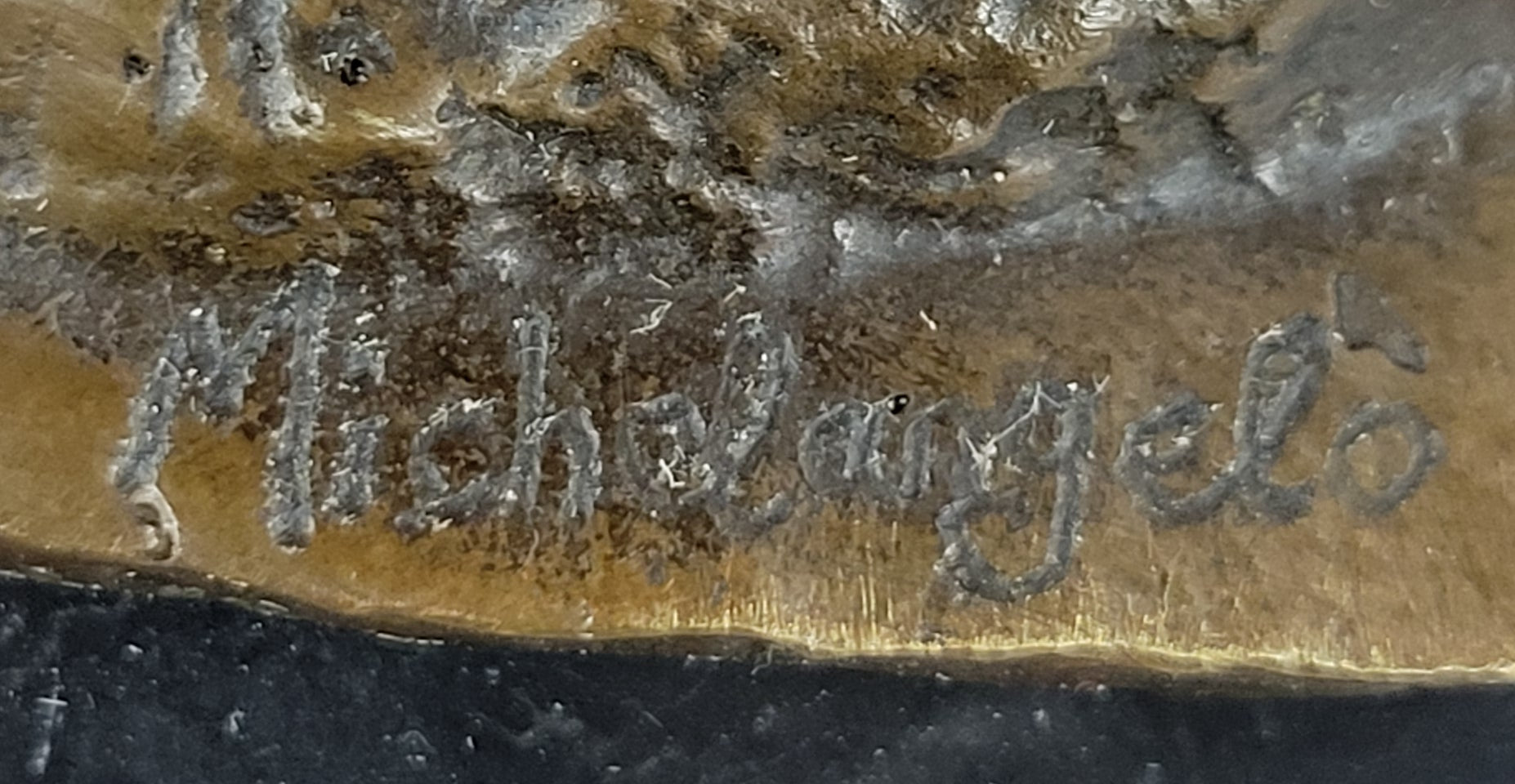 Mounted on a sleek black marble base, this sculpture offers a striking contrast to the warm bronze tones, providing both stability and elegance. Whether displayed in a home, office, or gallery, this exquisite piece serves as a tribute to one of the greatest sculptors of all time and makes an inspiring addition to any fine art collection.Bronze Dimensions with Marble Base: Height 8.5" X Width 3"