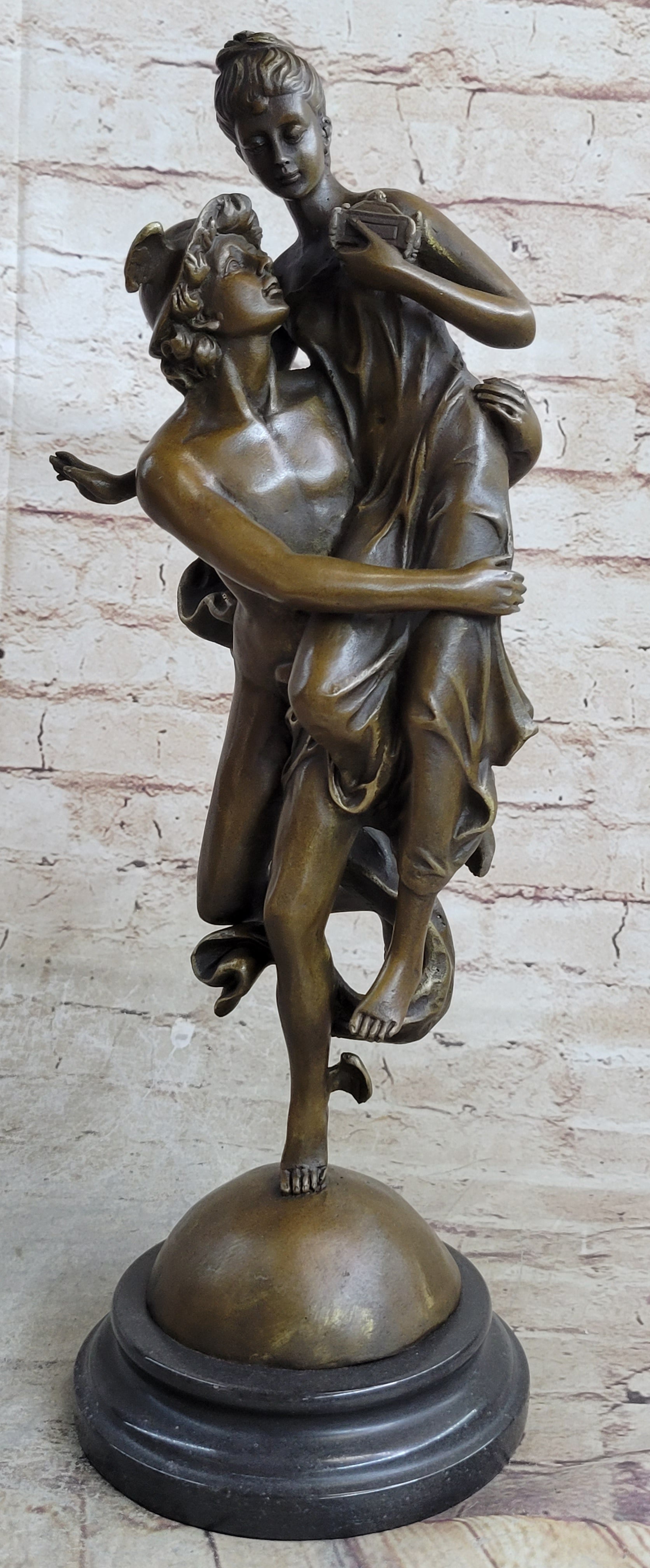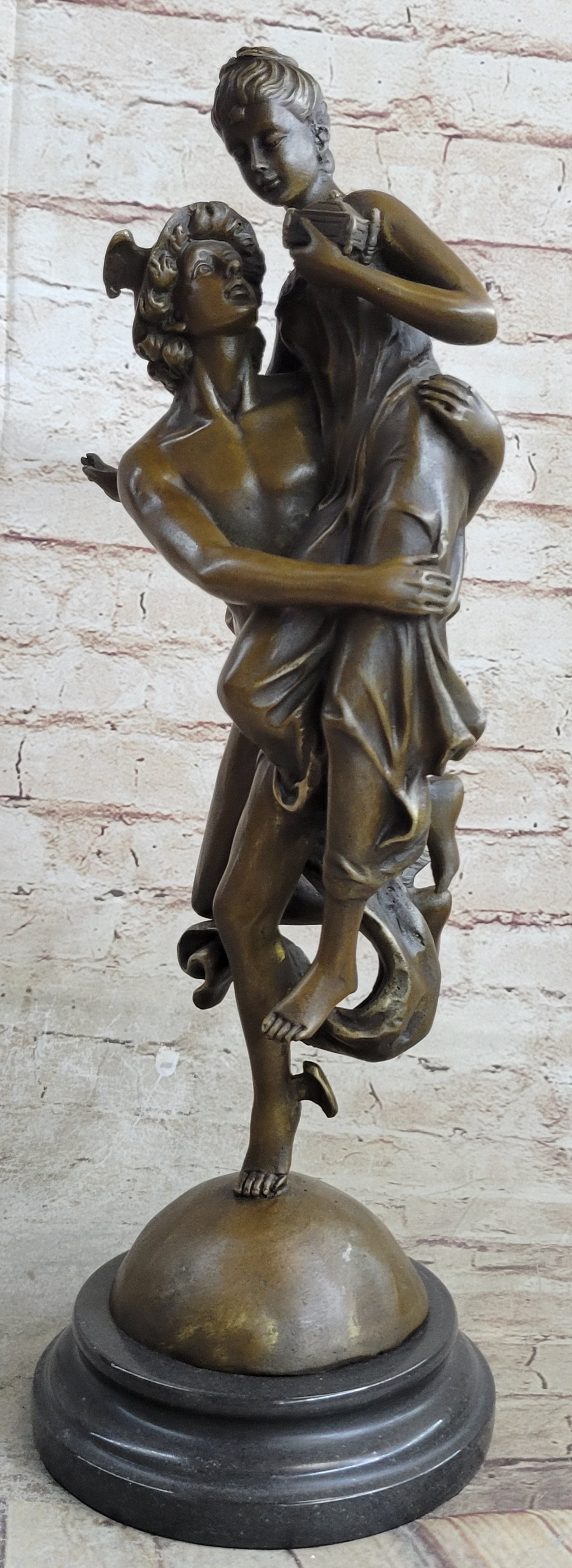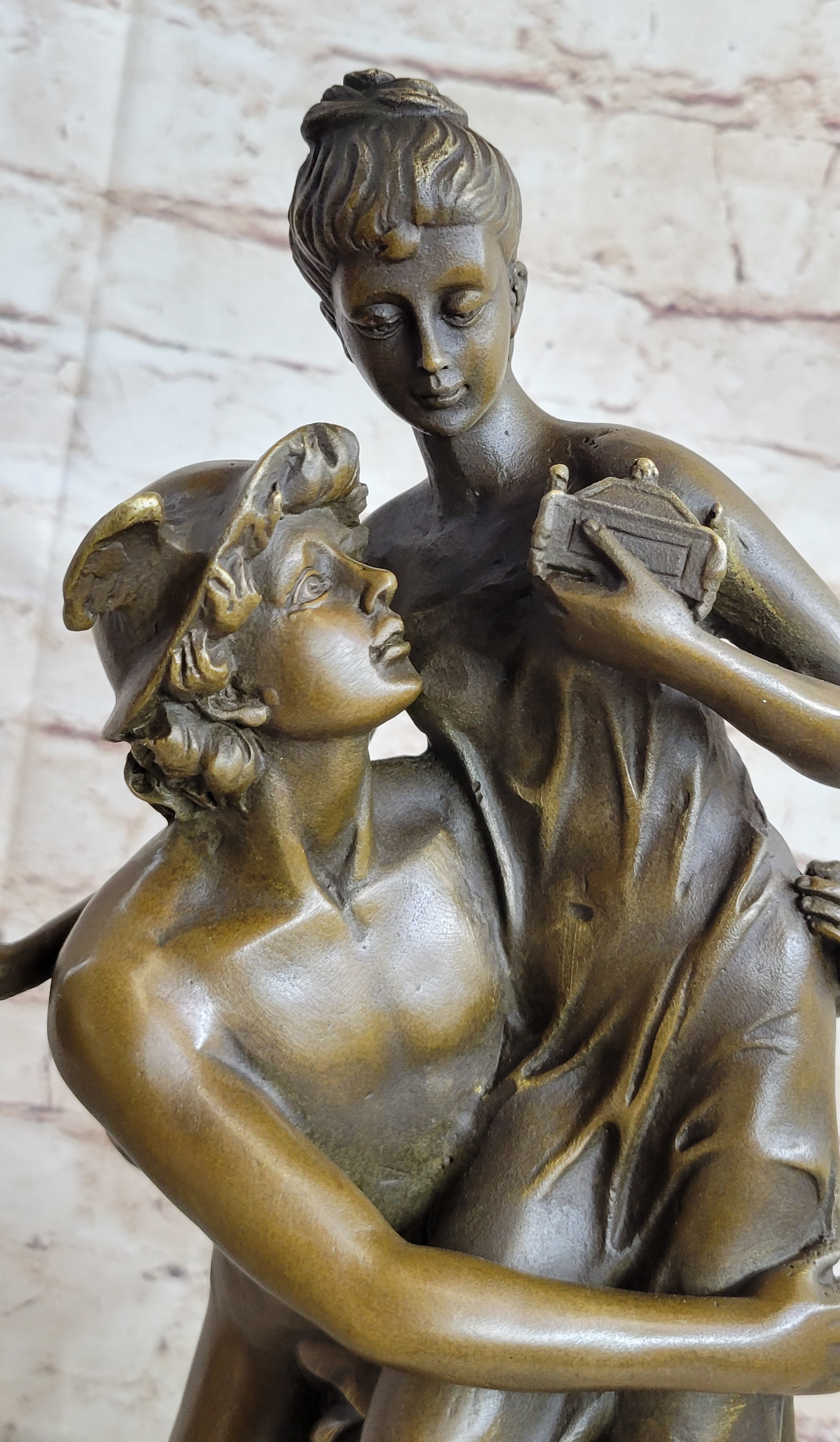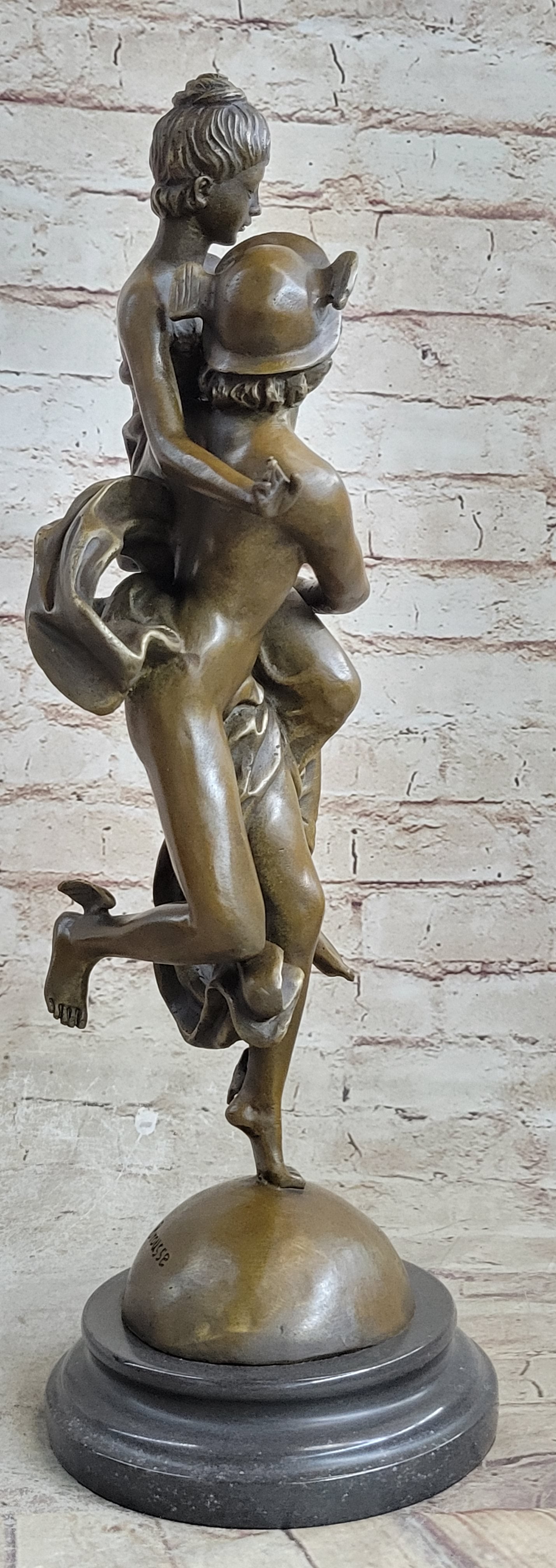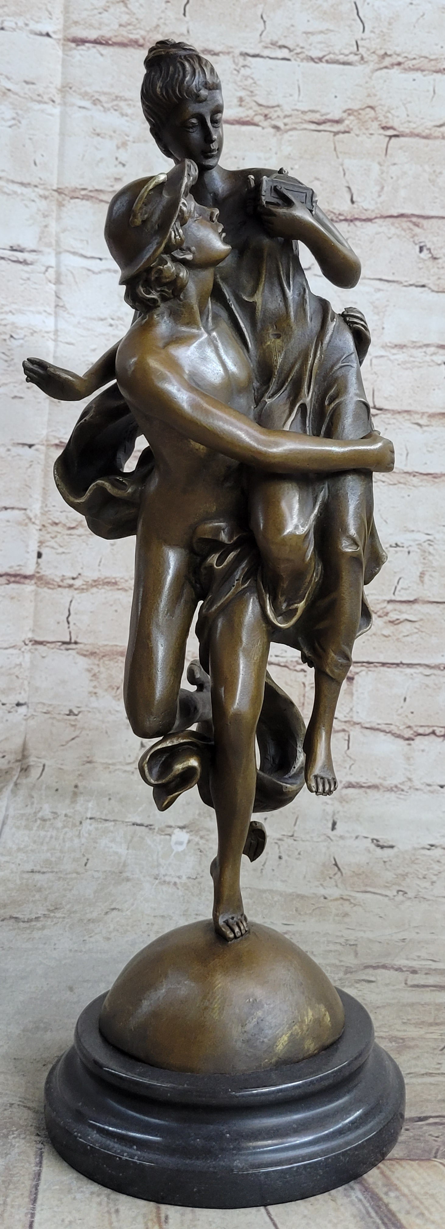Hermes Flying Mercury and Pandora Bronze Sculpture Statue Figurine by Brousse