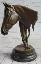 Horse Head Bust Equestrian Bronze Sculpture Statue Figure Decor on Marble Base Signed 13" x 9"