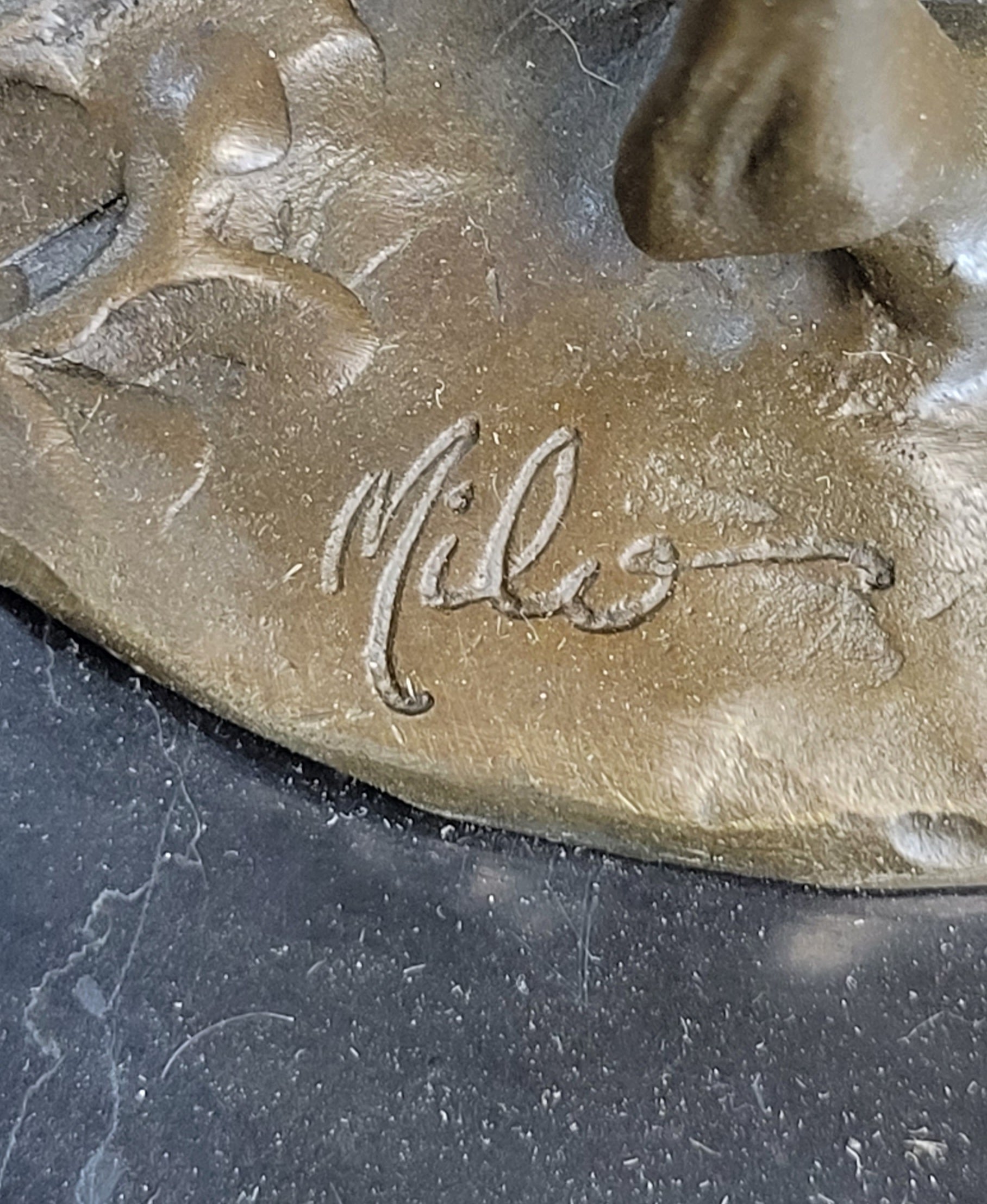 At Europeanbronze.com, the timeless allure of the horse is celebrated through a vast collection of horse statues, bronze sculptures, and horse head busts. These exquisite pieces come in various sizes and styles, each capturing the elegance and dynamism of the horse in different artistic expressions. One notable example is a bronzed metal figure of two horses on a ledge, signed by the artist Milo. This piece, like many others available at Europeanbronze.com, offers art enthusiasts a chance to bring the powerful and graceful presence of horses into their homes or collections. Explore the horse statue gallery to find a piece that resonates with the rich history and enduring beauty of this magnificent animal.Bronze Dimensions with Marble Base: Height 11" X Width 16"