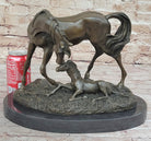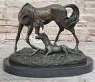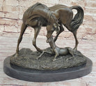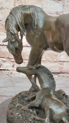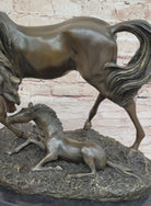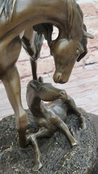 Horses Mare W/Foal Horse Bronze Sculpture Wild Farm Animal Marble Base