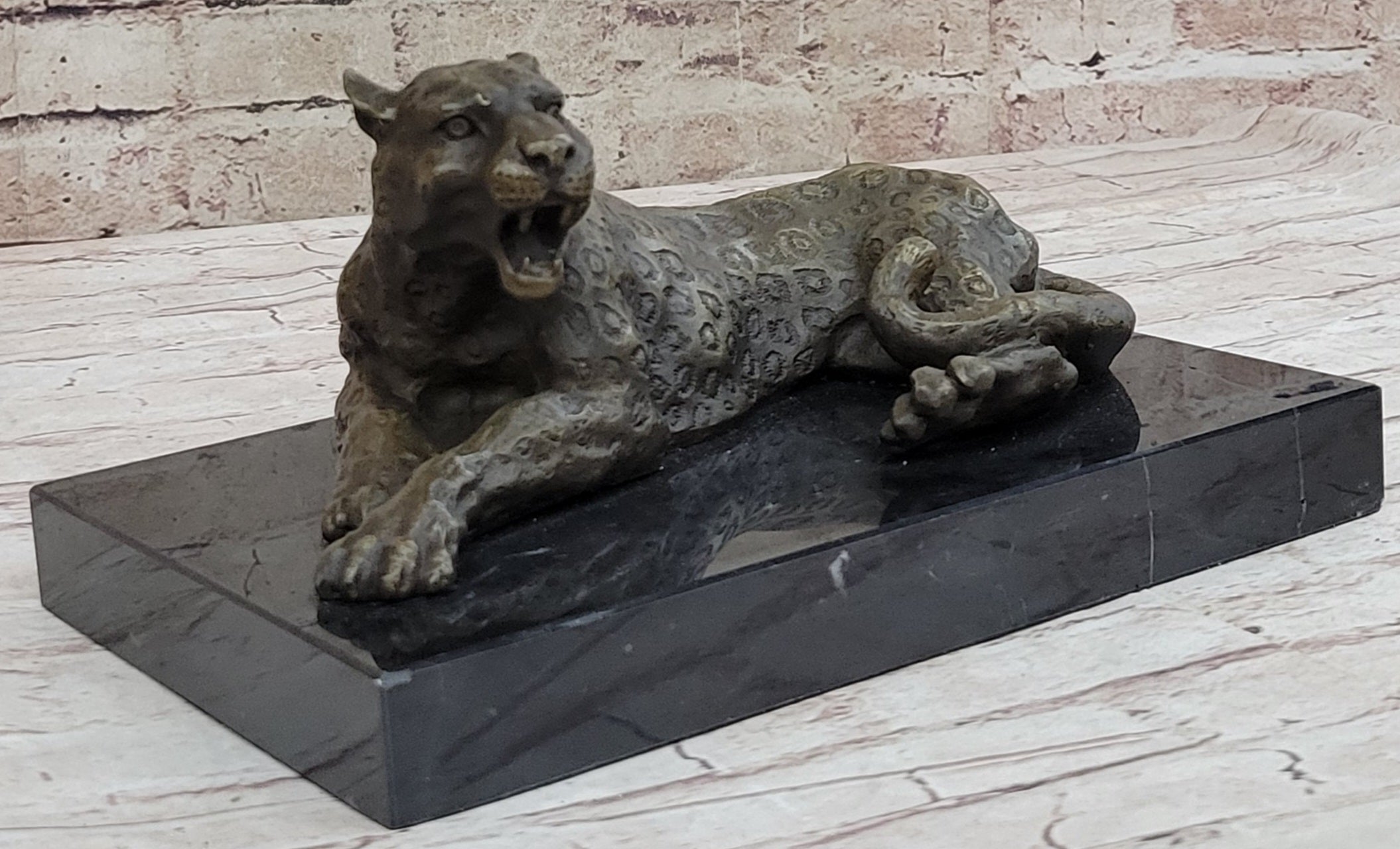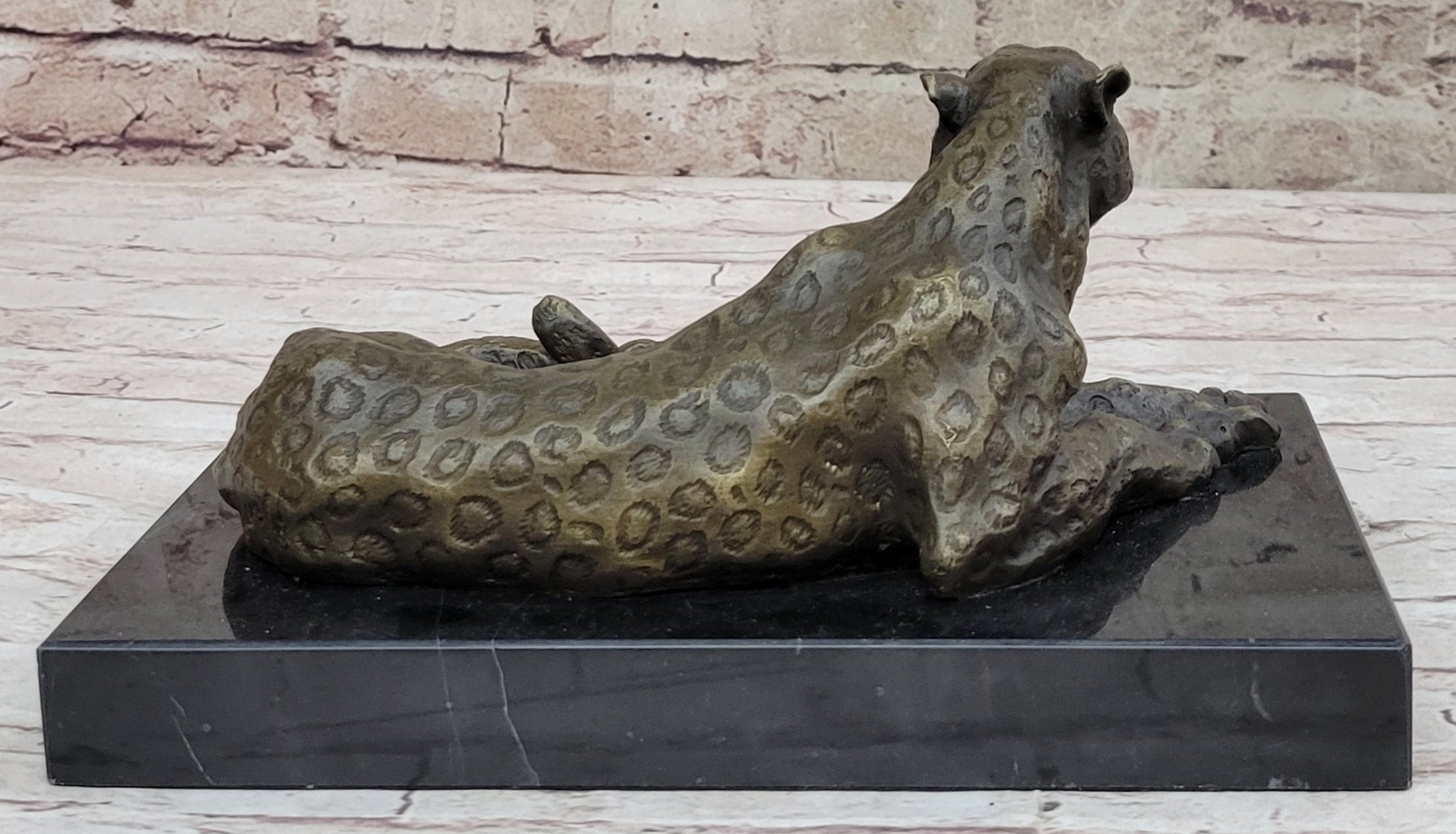 Hot Cast Bronze Cheetah Jaguar Leopard Sculpture Original Art on Marble Base